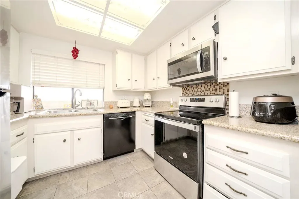 Fantastic! Welcome to this beautiful home at the La Mirada Landmark 55+ Community! This a top floor unit that is also a corner with only one shared wall. Large balcony with enclosed utility room for laundry with washer and dryer coming with the property. Sweeping views of greenbelt, trees, mountains and more in most of the rooms in the home. High ceilings with laminate floorings, skylights, and large sliding glass doors let in a ton of natural light. Kitchen has all electric appliances, white cabinets with granite countertops. Large master suite with huge walk-in closet. Open floor plan with large dining room that opens onto living room. Detached one-car garage with remote control. Complex has 24 hour security guard gate, swimming pool, spa, recreation room with large kitchen, tennis courts, ping pong and picnic area and more! Located within walking distance to La Mirada golf course, and the La Mirada center for performing arts. Much more. A must-see!
