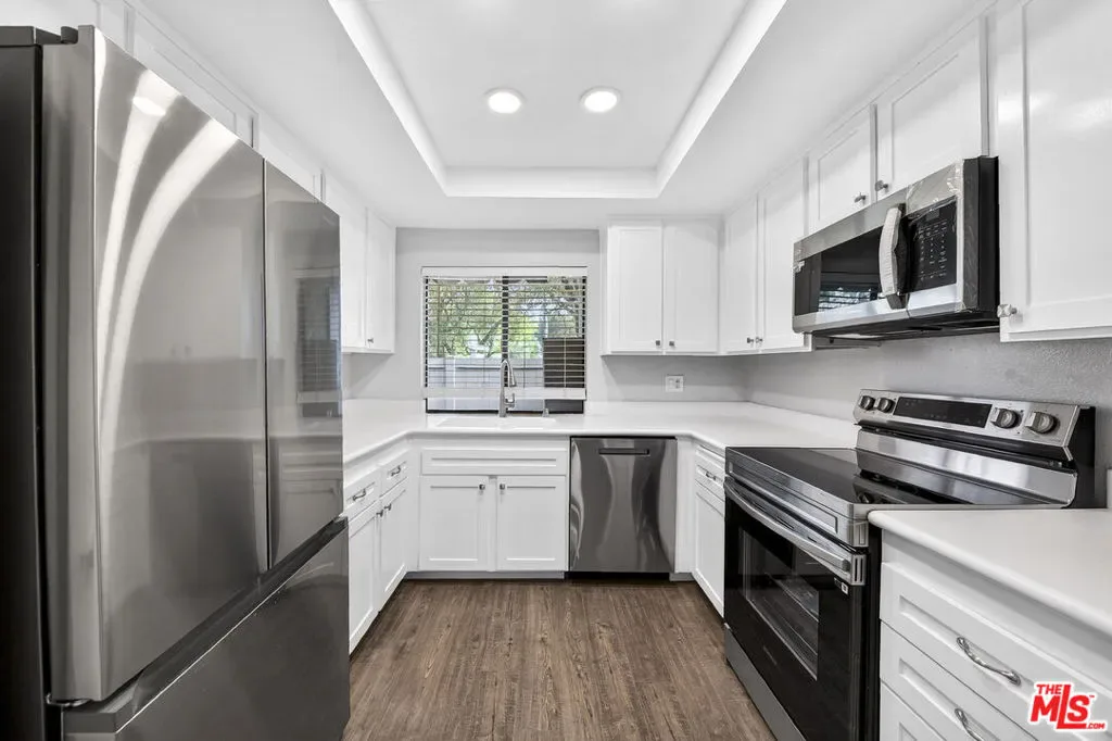 Move-in ready and thoughtfully upgraded, this highly sought-after ground-level residence offers the perfect blend of comfort, style, and convenience within one of La Mirada’s most desirable 55+ communities; The Landmark! Featuring 2 bedrooms and 2 full bathrooms across approximately 1,081 square feet, this popular floorplan is designed for effortless single-level living. Step inside to a open and inviting interior highlighted by a newly remodeled kitchen showcasing modern finishes and a seamless flow into the spacious living and dining areas ideal for both everyday living and entertaining. The home is enhanced with laminate flooring throughout, creating a clean, cohesive, and low-maintenance environment. Enjoy true indoor-outdoor living with a generously sized private patio with laundry units, perfect for morning coffee or relaxing evenings, along with convenient nearby access to ample guest parking. A detached one-car garage adds both practicality and value. Situated within the peaceful, guard-gated community, residents enjoy resort-style amenities including a pool and spa, clubhouse, tennis courts, library, and a vibrant crafts center all surrounded by beautifully maintained grounds. Ideally located near shopping, dining, La Mirada Golf Course, and major freeways, this home offers the perfect balance of privacy, accessibility, and an active lifestyle. ***Some photos have been virtually staged***