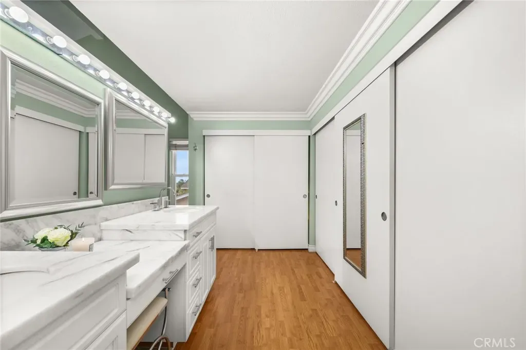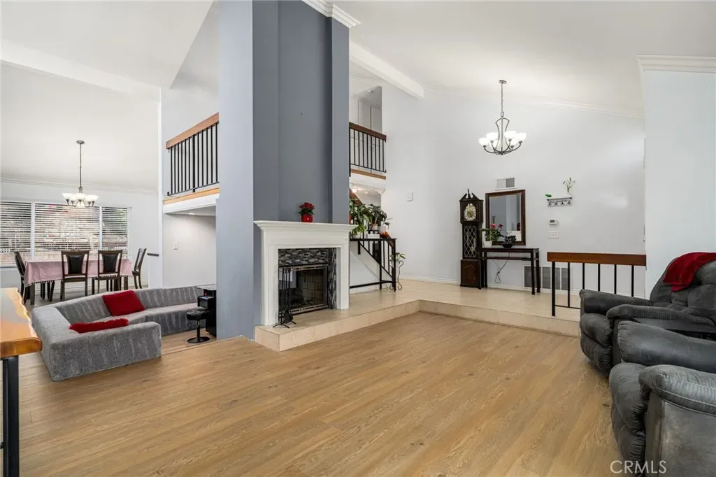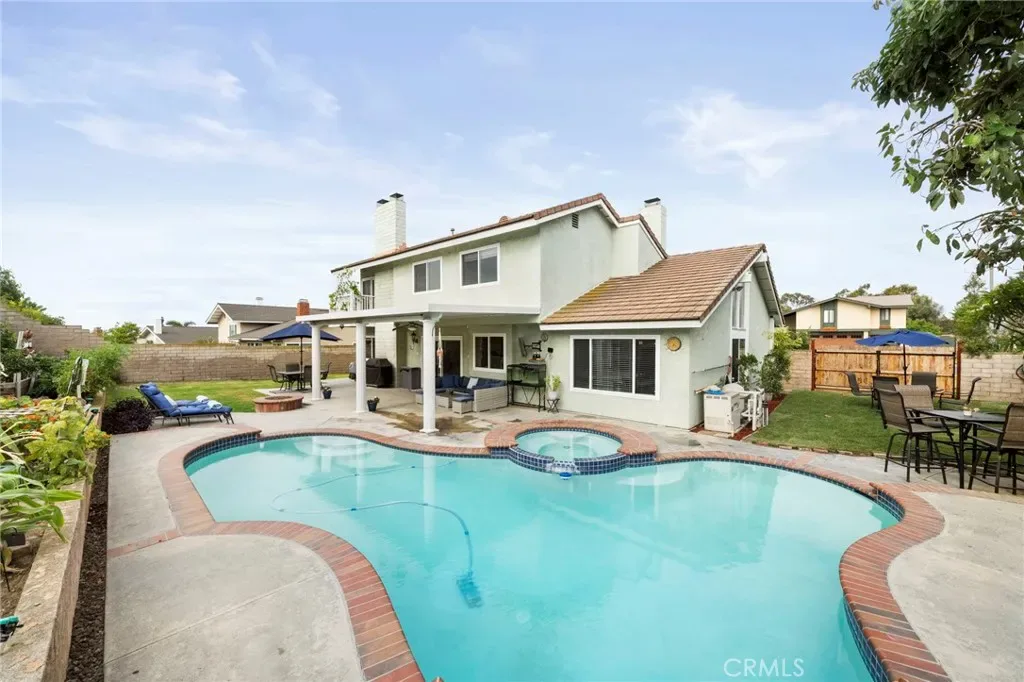 Welcome to this beautifully designed pool home in the highly sought-after La Mirada community, where comfort, functionality, and timeless charm come together. This spacious 4 bedroom, 3 bathroom residence is thoughtfully designed to accommodate both growing and multi-generational families. The flexible floor plan includes a convenient downstairs bedroom and full bath ideal for guests or extended family. Enjoy multiple living spaces, including a formal living room and a warm inviting family room perfect for everything from quiet evenings to lively gatherings. A striking double sided fireplace creates a cozy ambiance enjoyed from both the living room and the sunken conversation pit, an ideal setting for game nights or entertaining. At the heart of the home the chef’s kitchen shines with a 6-burner stove, double ovens, and generous counter space making it perfect for everyday meals and hosting with ease. Three fireplaces throughout the home add character and warmth, while the expansive primary suite offers a peaceful retreat complete with city views and a private balcony, perfect for morning coffee or evening relaxation. Step outside to your own private backyard oasis featuring a sparkling pool, spa, fire pit and a spacious yard with edible landscaping, including avocados, tomatoes, cucumbers, corn, limes, and more. Whether relaxing poolside or entertaining friends and family, this outdoor space is both vibrant and versatile. A large side yard offers additional flexibility ideal for extra storage, gardening, or creating a customized outdoor space to suit your lifestyle. Additional highlights include a generous 3 car garage with a built-in storage lift for convenient access to storage and seasonal items. Ideally located within walking distance to La Mirada Golf Course, parks, and top-rated schools and offering access to community amenities such as a pool and tennis courts, this exceptional home blends everyday convenience with a true sense of lifestyle. Ready for its next chapter, this home invites you to create lasting memories. *Some photos are enhanced or virtually staged*