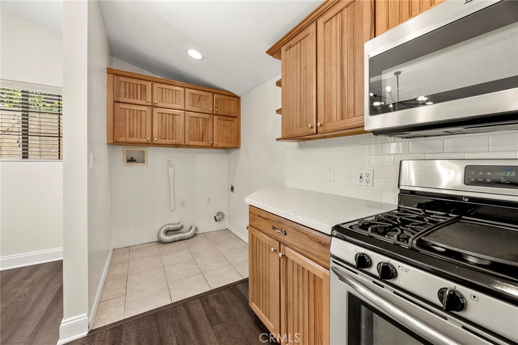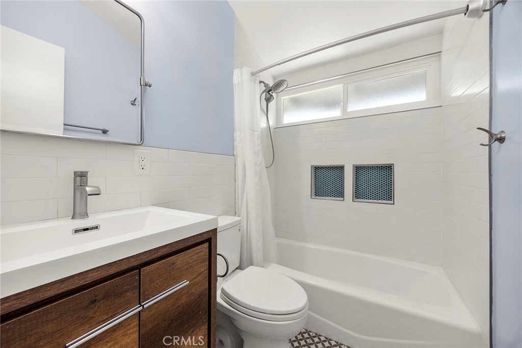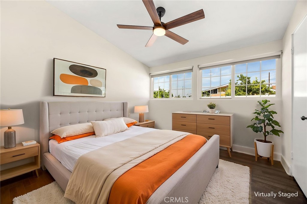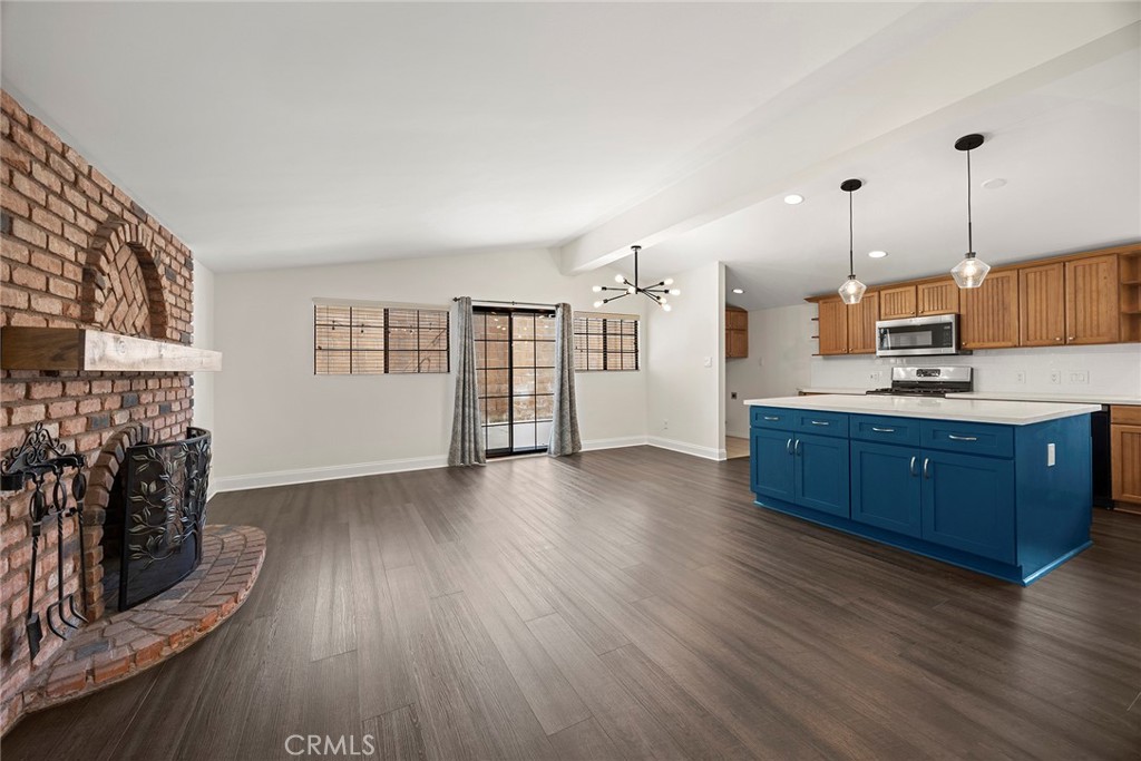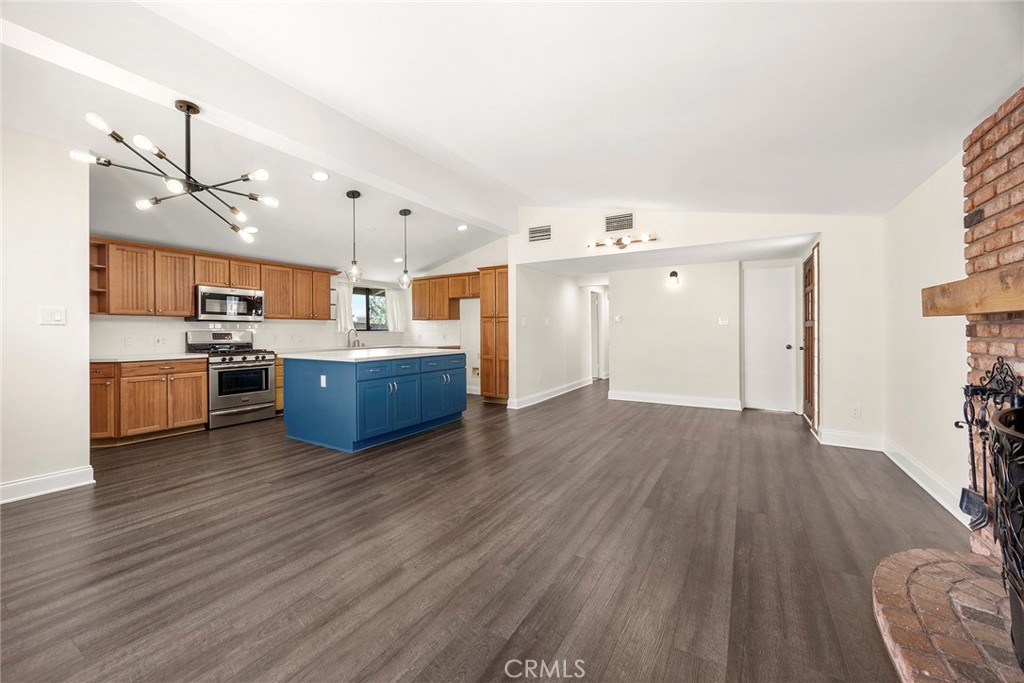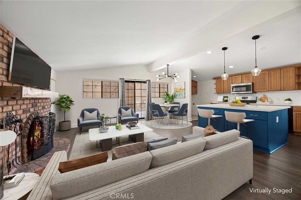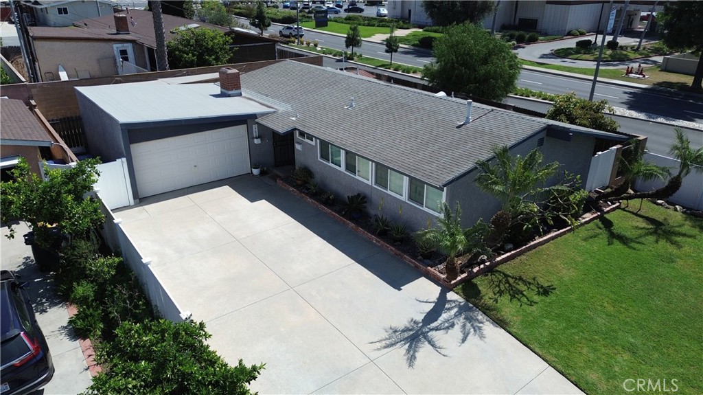 Beautiful 4 Bedroom 2 Bath Single Story Mid Century La Mirada Home in a Quiet Cul-De-Sac Neighborhood. This amazing home isn’t a flip, it was a family home that has been lovingly cared for by the people who actually lived there. We think the difference is striking. Upon entering, your friends will be jealous of the open concept great room, perfect for everything from simple family dinners to entertaining a house full of guests. The remodeled kitchen portion includes a huge custom island, quartz countertops, natural cabinets, white subway tile backsplash, stainless gas range, microwave, dishwasher, laminate flooring, dramatic pendant lights, and recessed lighting. The living area portion of the great room boasts vaulted exposed beam ceilings, laminate flooring (same as kitchen), inspired light fixtures, exposed brick fireplace, and a new wood mantle. There has been an intentional effort to keep the great room area warm and welcoming while still light, clean and contemporary. Moving down the hallway that leads to the bedrooms, you’ll first come across a very convenient 3/4 bath that doubles as guest restroom and on suite bathroom for Bedroom #2. Bedrooms #2 and #3 feature laminate flooring, closet storage, vaulted ceilings, and modern ceiling fans. Bedroom 4 is on the other side of the hallway and features carpet flooring, vaulted ceilings, and a newer ceiling fan. The primary bedroom is also on this side of the hallway, and in addition to vaulted ceiling, a spacious closet, custom accent wall, and newer ceiling fan, it also sits directly adjacent to the remodeled full bathroom. The remodeled full bathroom has new tile flooring, vanity, light fixtures, plumbing fixtures, and a brilliant shower/tub with with subway tile and custom recessed shower shelf. The entire home has new neutral paint plus central AC and heat. There is ample vehicle storage with a two car garage plus an oversized driveway. The home provides a Laundry room directly off the kitchen with washer hookups, electric and gas dryer hookups, as well as convenient cabinet storage. Around back, the yard area features a slightly elevated wooden deck with sunshade, perfect for outdoor dining on a warm Spring evening. Address feeds La Pluma Elementary, Benton Middle, and La Mirada High School. Close proximity to shopping, groceries, the La Mirada Theatre, La Mirada Regional and Splash Waterpark. This will be a very clean sale with no seller contingencies so hurry because it won’t last long.