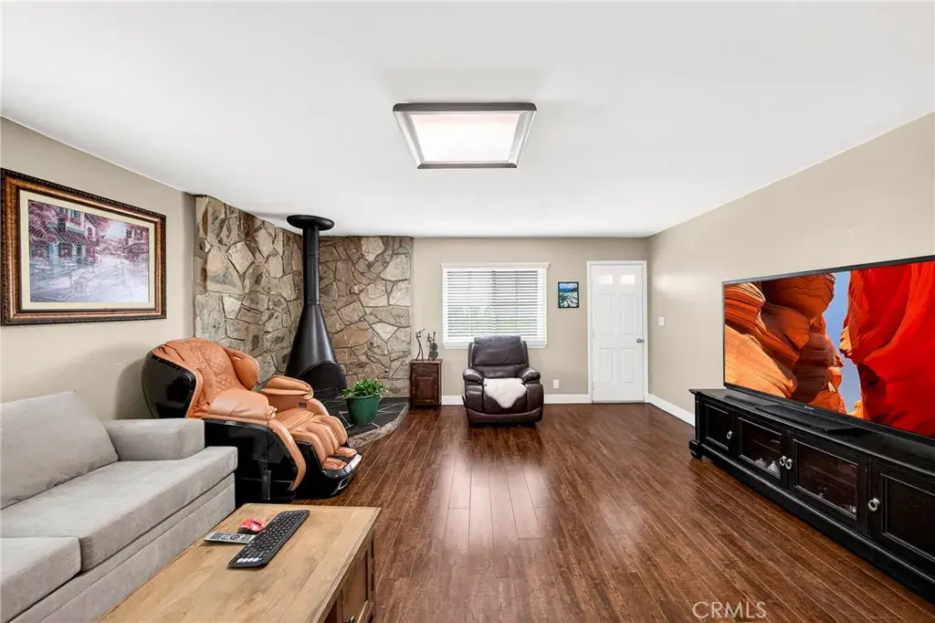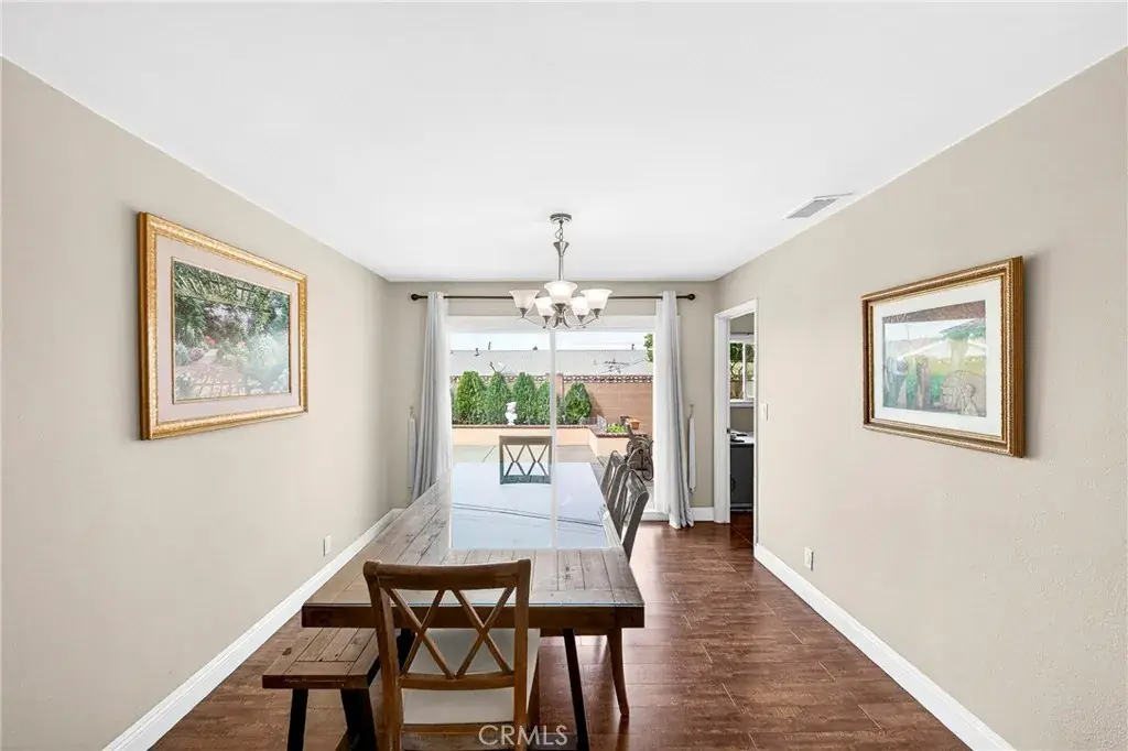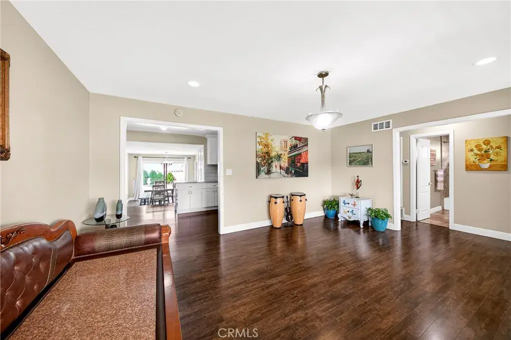 A separate family room with a cozy fireplace is perfect for entertaining guests and large get-togethers. Master bedroom features a spacious closet and shares the remodeled bathroom with dual sinks and exquisite floor-to-ceiling stone shower. The secondary bedrooms are a generous size and shares the full hallway bath. The backyard is an entertainer’s delight, offering ample space for hosting gatherings with friends and family or simply unwinding in your own private sanctuary. Additional upgrade includes newer waterheater, two sky light, gutter and gazebo at backyard. Close to shopping centers, restaurants, cafés, grocery stores, a theater, performing arts center, La Mirada High School, Splash Park, Biola University, La Mirada Regional Park, which has baseball fields, tennis courts, disc golf, a lake, playgrounds and easy access to freeway. Come see this beautiful home for yourself!
