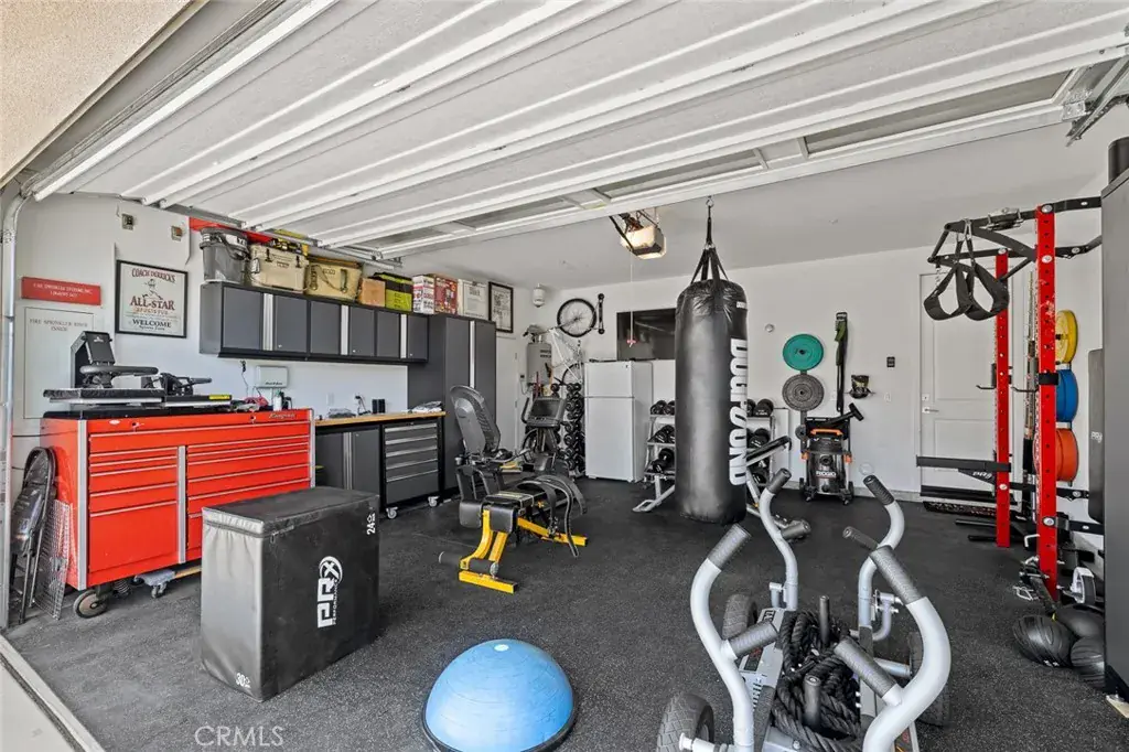 Additional highlights include a tankless water heater, dual-zone A/C, fire sprinklers throughout the home, Ring cameras, a full alarm system, in-ceiling speaker wiring, gutters connected to the underground sewer system, outdoor outlets for holiday lighting, and a 2-car garage converted into a personal gym.
