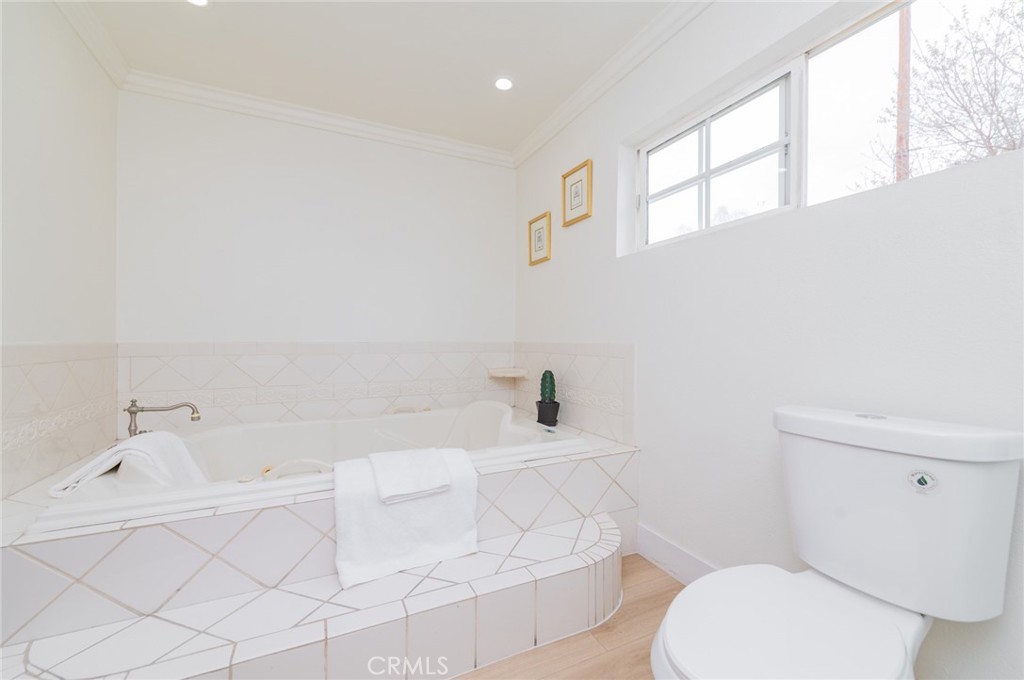 The main house features four bedrooms and three bathrooms, designed to easily accommodate a variety of living situations. The large primary suite includes a private sitting area and an en-suite bathroom with a jacuzzi tub. An additional junior suite offers its own dedicated space and privacy for extended family or overnight guests. Behind the main residence, the backyard includes a fully detached guest house (Without permit). Offering one bedroom, a bathroom, and a separate utility room, this versatile bonus structure provides highly practical options for multi-generational living, a private home office, or a quiet workspace.