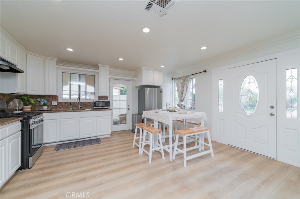 Welcome to this updated California Ranch-style home located in a quiet La Puente cul-de-sac. This single-story residence offers excellent curb appeal with a wide frontage and a fully block-fenced yard. Inside, an open floor plan allows natural light to fill the living spaces. The layout centers around a spacious, open-concept kitchen that connects directly to the living room, which features a comfortable fireplace. Modern updates are found throughout the interior, and the home is protected by a highly durable metal roof. Comfort is maintained year-round with a central air and heating system, supported by two separate water heaters.
