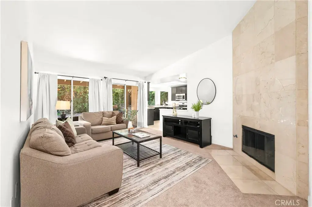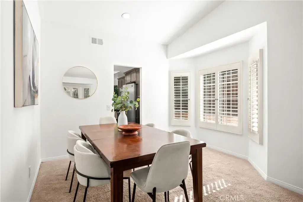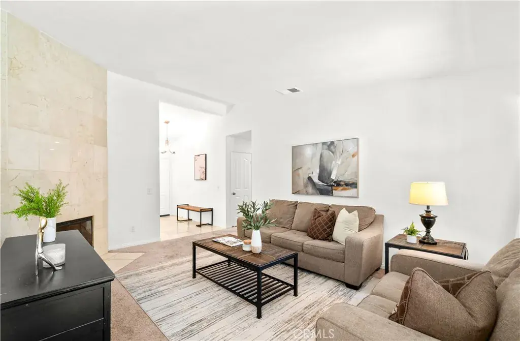 Vaulted ceilings and abundant natural light create a bright, welcoming atmosphere throughout the main living areas. Just off the entry, a formal living room and dining space provide an inviting setting for gatherings, while the cozy family room with fireplace opens directly to the backyard, creating an easy flow for everyday living and entertaining.