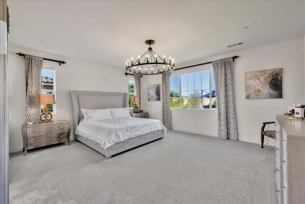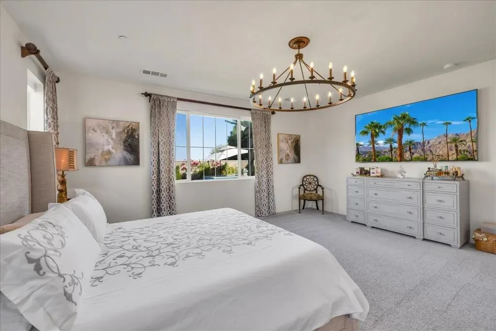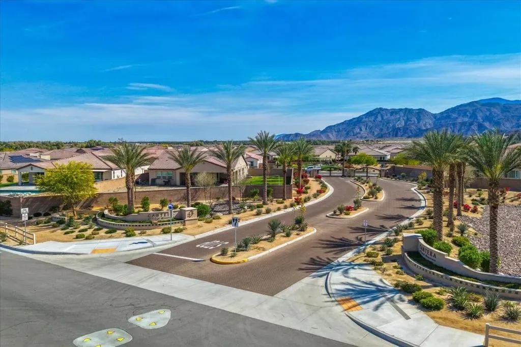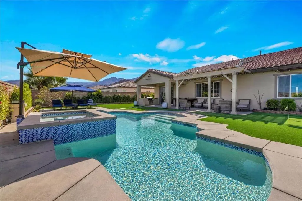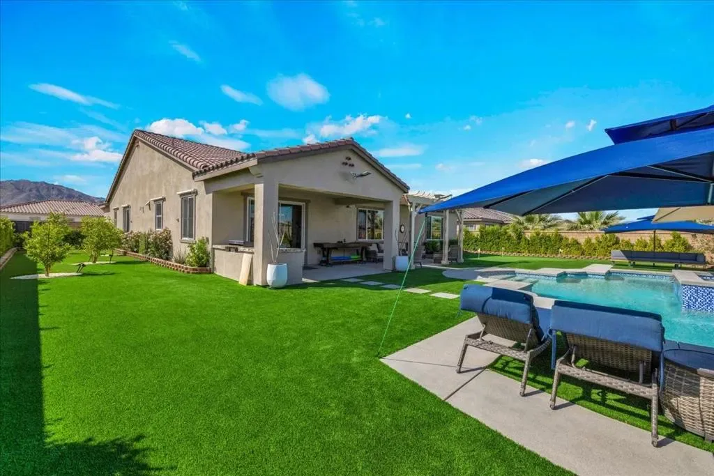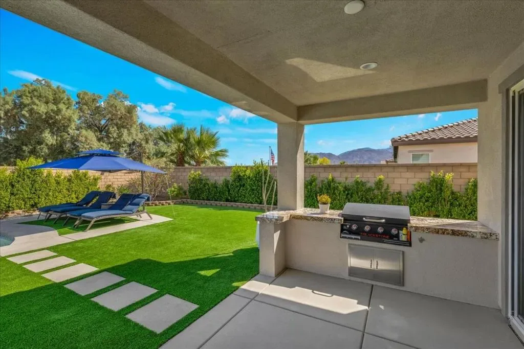 Location, location, location. Enjoy panoramic mountain views from the moment you drive up and throughout your time at this exceptional home in La Quinta. Perfectly oriented to capture natural light, the home stays bright all day, with winter sun gently warming the interior–creating a comfortable and inviting atmosphere year-round. The spacious floor plan is thoughtfully designed and enhanced by numerous upgrades, including owned 6.3 kW solar. Take in stunning mountain views from the front, back, and both sides, all while enjoying a rare level of privacy. With generous space between neighboring homes, NO city construction plans adjacent to this home, NO visible power lines, NO street noise, NO see-through builder grade fencing to ruin your events or a quiet day of tanning. This property offers a truly peaceful and secluded setting. The backyard features expansive sky views alongside breathtaking mountain scenery, with no overlooking neighbors. The outdoor space is a private resort. Lush, temperature-sensitive artificial turf stays cooler than traditional options, replacing the typical ”concrete desert” feel with a vibrant sea of green. A custom oversized pool and spa are paired with high-capacity, quietly operating equipment for efficiency and Pool equipment is highly upgraded. The yard blends colorful landscaping, sparkling blue water, and greenery so seamlessly that it feels worlds away from the desert. Inside, the home offers abundant built-in cabinetry throughout, combining style with functionality. The entire property has been designed for low maintenance and ease of living, including low utility costs through Imperial Irrigation District. Located just minutes from premier golf at PGA West, as well as dining, hiking, biking, the Empire Polo Club, and the Indian Wells Tennis Garden, this home places you at the center of the La Quinta lifestyle. From the moment you step inside, you’ll know this is a special home. Set against the dramatic backdrop of the Santa Rosa and Coral Mountains, this immaculate 3,006 SF residence sits on a premium lot and has been extensively upgraded throughout. Located near The Quarry at La Quinta, it offers a rare combination of luxury, privacy, and resort-style living. La Quinta at its finest–don’t miss this exceptional home in the highly desirable Cantera at Coral Mountain community.