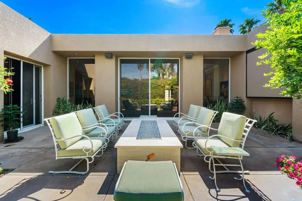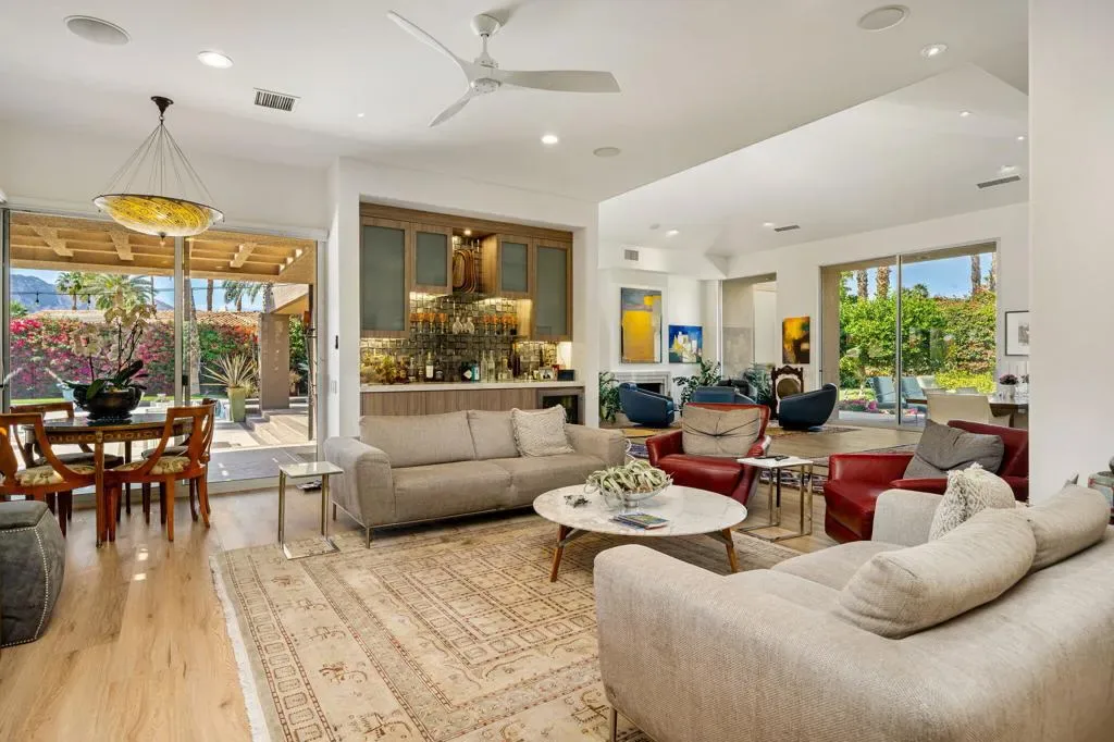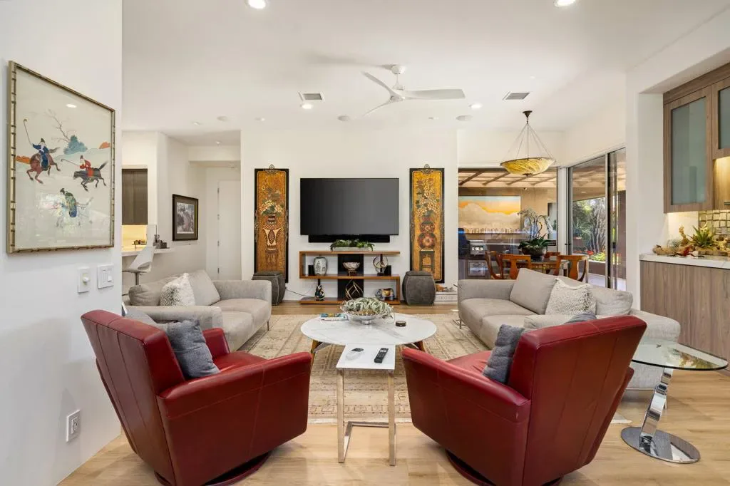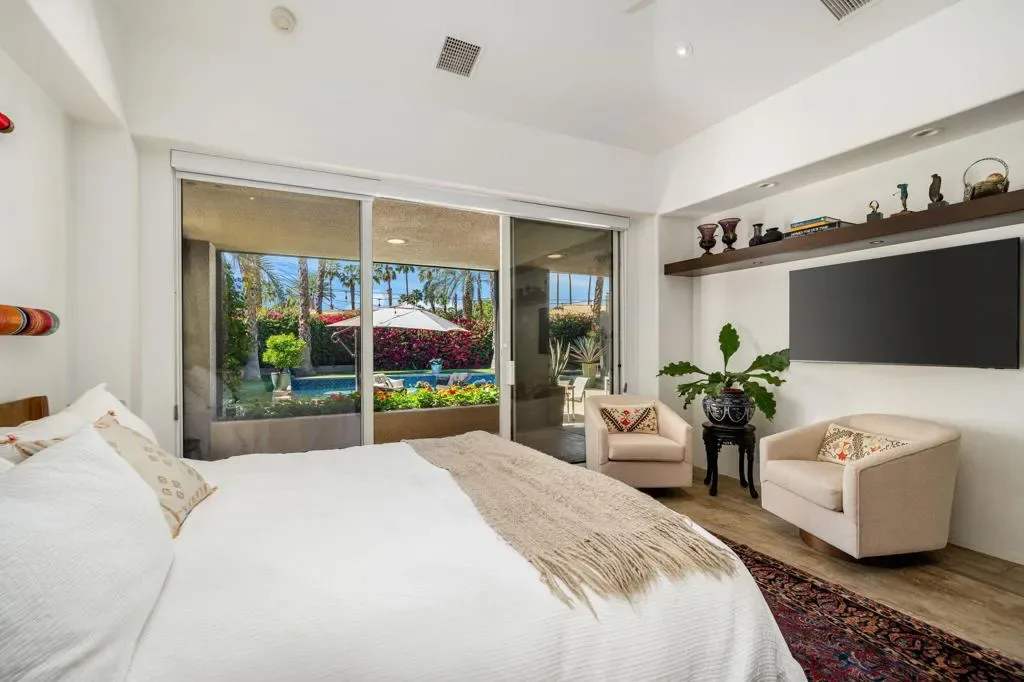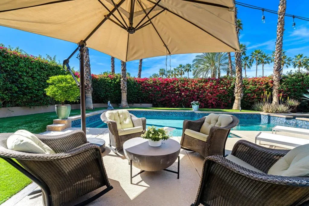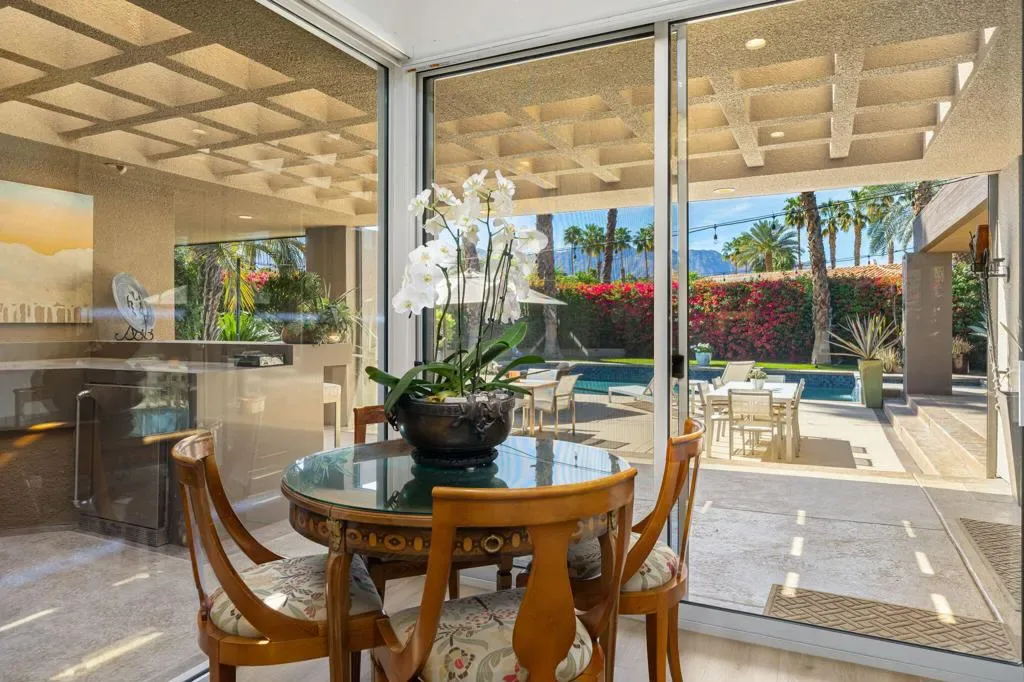 Available for May 2026-October 2026.Experience elevated desert living in this exquisite 4 bedroom contemporary estate, thoughtfully designed for refined relaxation and effortless entertaining. A dramatic 10 foot wall of glass doors and windows creates a seamless connection between indoor and outdoor living, filling the home with natural light while opening to spectacular resort style surroundings.Set on beautifully manicured, park like grounds, the property offers an exceptional private retreat. The expansive outdoor living space features a fully equipped outdoor kitchen perfect for preparing and enjoying al fresco dining while overlooking the lush landscape. A private detached casita enjoys views of the sparkling pool and vibrant gardens, offering guests a serene and luxurious escape.Inside, sophisticated finishes and elegant flooring flow throughout the residence. The gourmet chef’s kitchen is appointed with stunning quartzite countertops, an oversized center island, and an inviting breakfast nook ideal for both casual mornings and stylish entertaining. The primary suite serves as a luxurious sanctuary, showcasing breathtaking mountain views and a spa inspired bathroom designed for ultimate comfort and relaxation. Guest bedrooms are thoughtfully positioned on the opposite wing of the home, ensuring exceptional privacy for family and visitors alike.Ideally located in the heart of La Quinta, this remarkable residence places you just moments from world class golf courses, scenic hiking trails, fine dining, and upscale shopping while still offering a peaceful, private setting to fully embrace the desert lifestyle. Weekly housekeeping service is included, providing the ultimate in convenience for this exceptional luxury vacation rental.