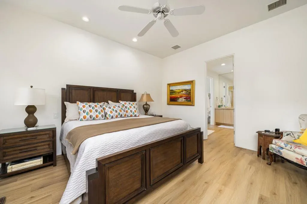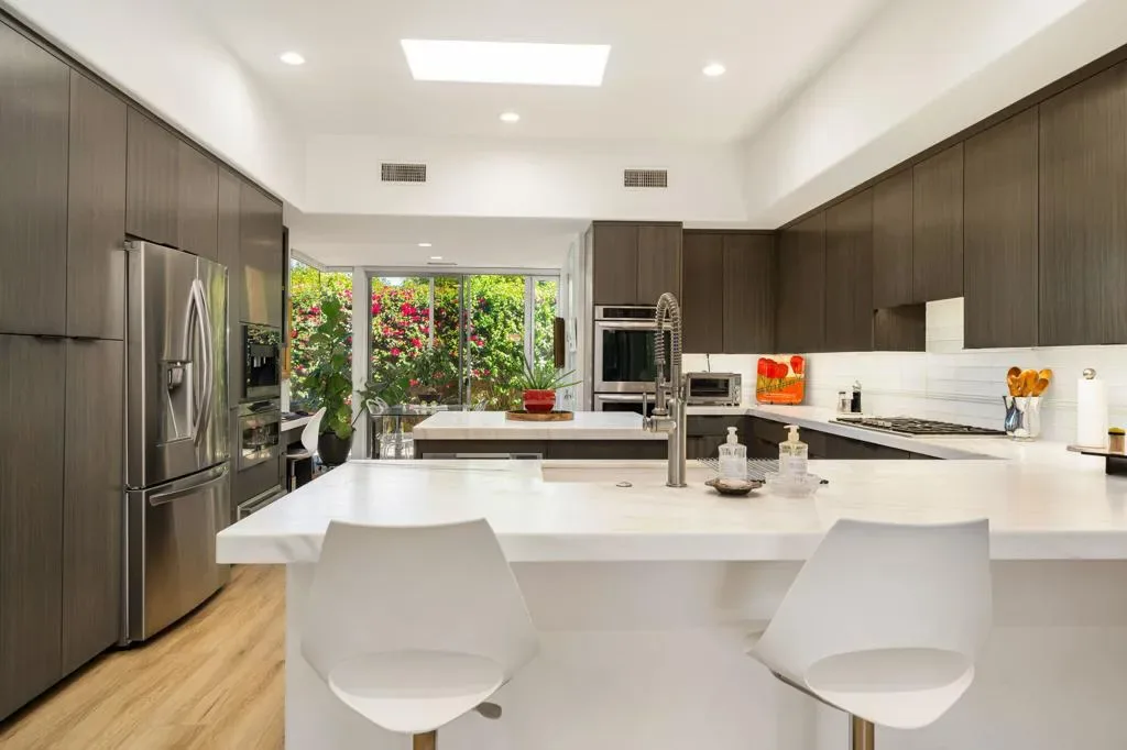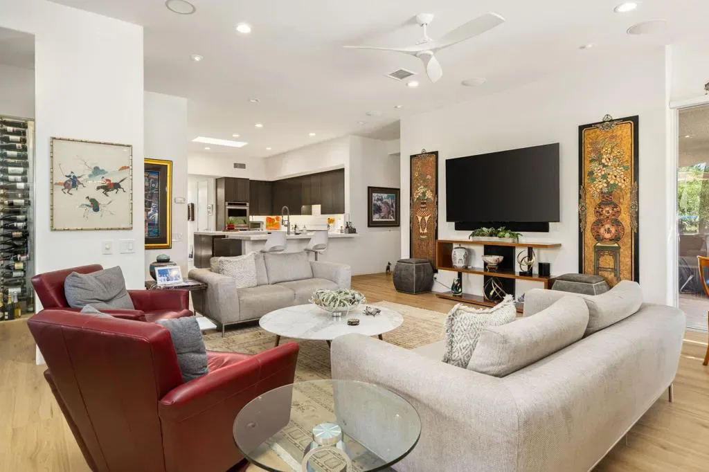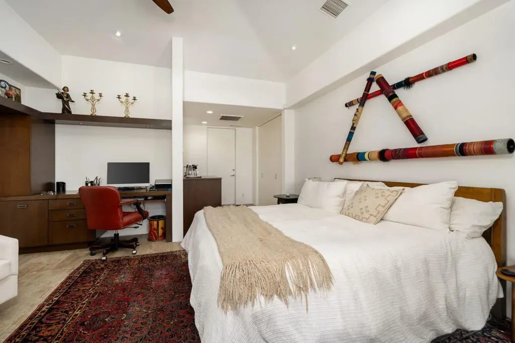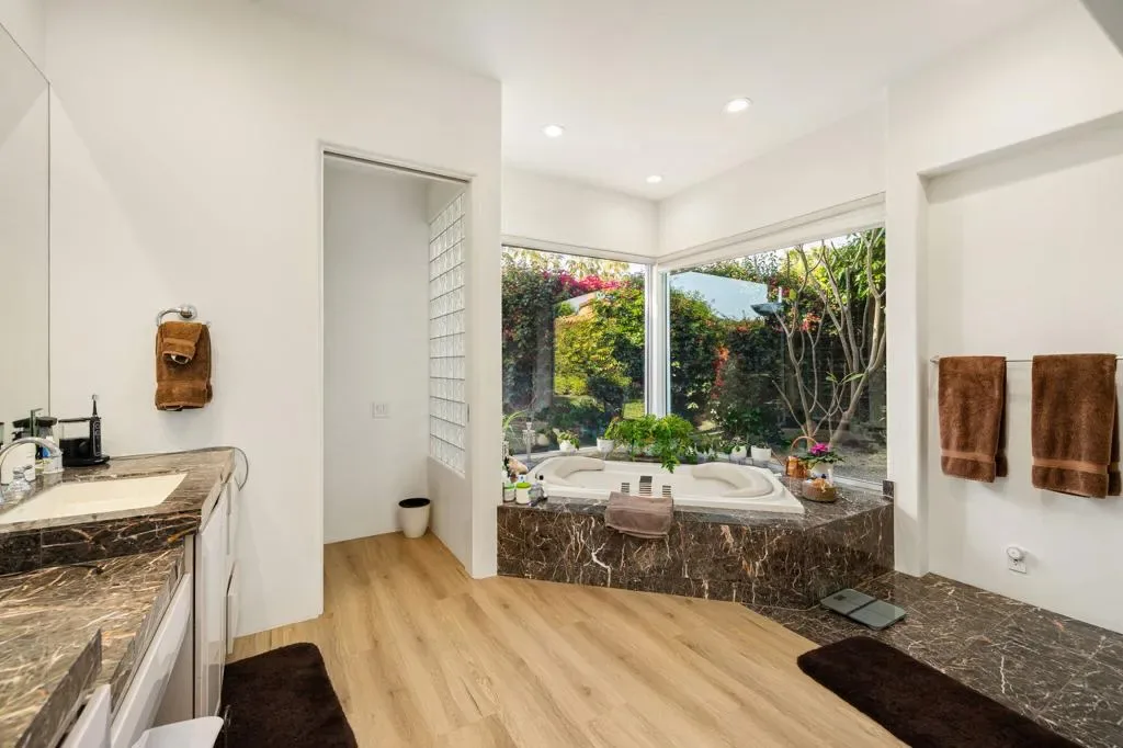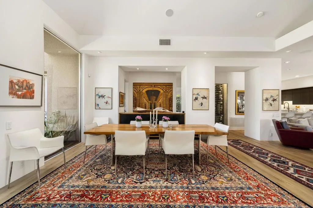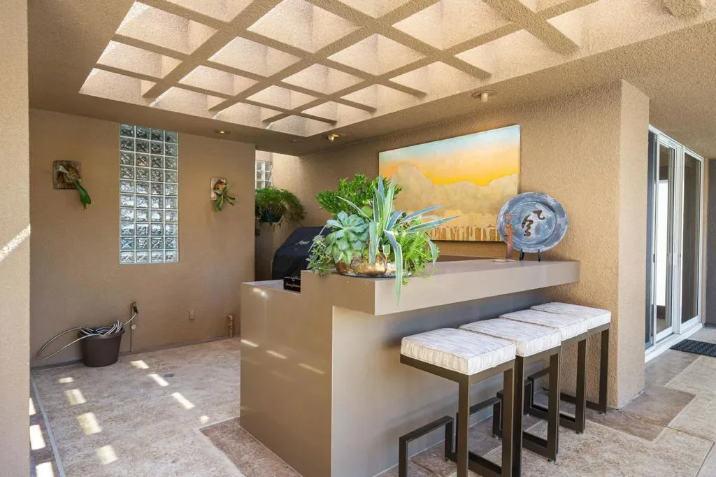 Available for May 2026-October 2026.Experience elevated desert living in this exquisite 4 bedroom contemporary estate, thoughtfully designed for refined relaxation and effortless entertaining. A dramatic 10 foot wall of glass doors and windows creates a seamless connection between indoor and outdoor living, filling the home with natural light while opening to spectacular resort style surroundings.Set on beautifully manicured, park like grounds, the property offers an exceptional private retreat. The expansive outdoor living space features a fully equipped outdoor kitchen perfect for preparing and enjoying al fresco dining while overlooking the lush landscape. A private detached casita enjoys views of the sparkling pool and vibrant gardens, offering guests a serene and luxurious escape.Inside, sophisticated finishes and elegant flooring flow throughout the residence. The gourmet chef’s kitchen is appointed with stunning quartzite countertops, an oversized center island, and an inviting breakfast nook ideal for both casual mornings and stylish entertaining. The primary suite serves as a luxurious sanctuary, showcasing breathtaking mountain views and a spa inspired bathroom designed for ultimate comfort and relaxation. Guest bedrooms are thoughtfully positioned on the opposite wing of the home, ensuring exceptional privacy for family and visitors alike.Ideally located in the heart of La Quinta, this remarkable residence places you just moments from world class golf courses, scenic hiking trails, fine dining, and upscale shopping while still offering a peaceful, private setting to fully embrace the desert lifestyle. Weekly housekeeping service is included, providing the ultimate in convenience for this exceptional luxury vacation rental.