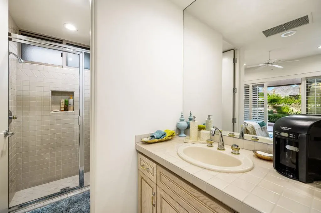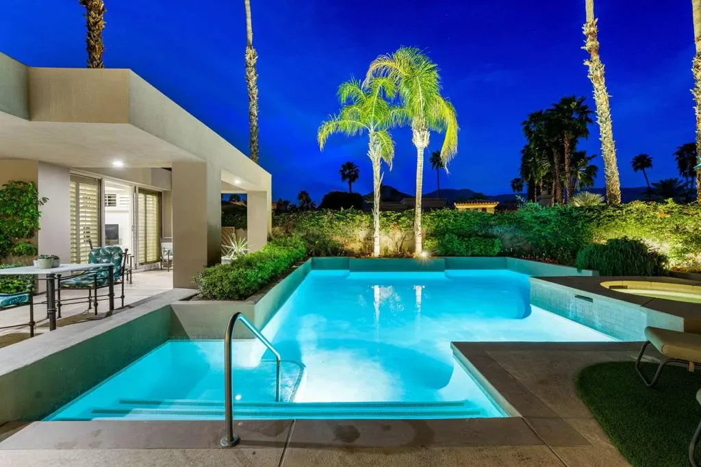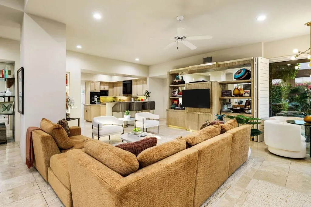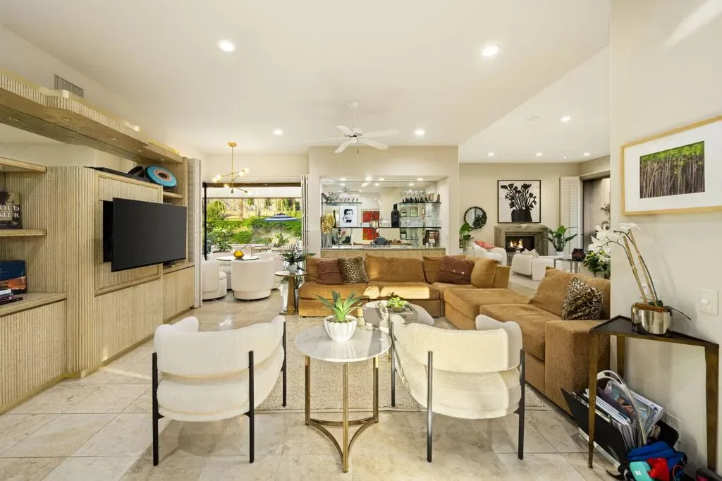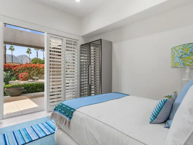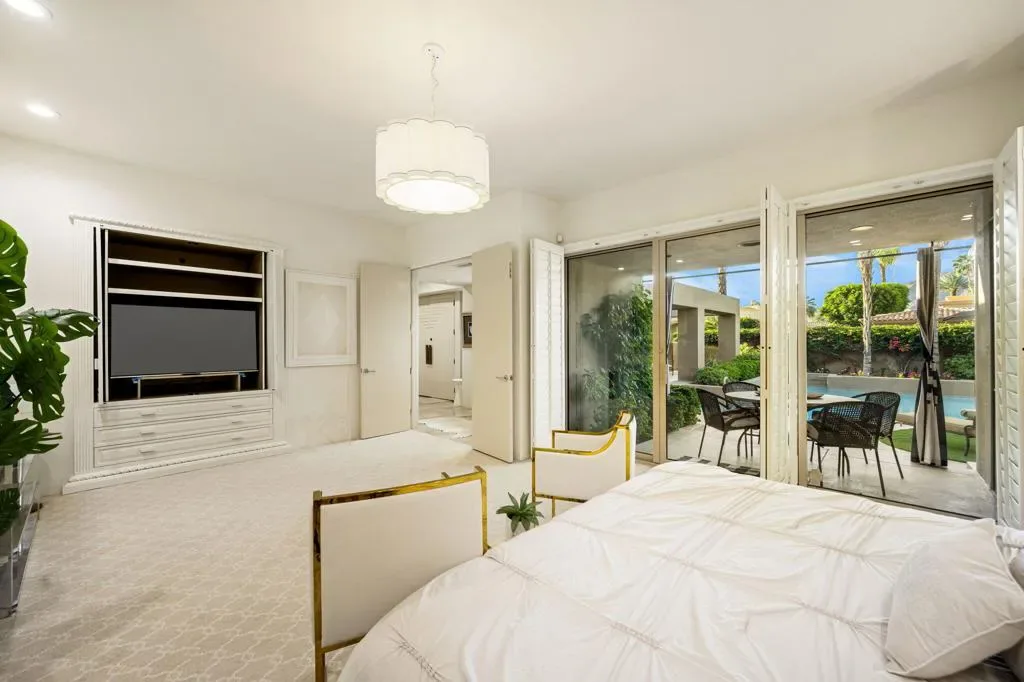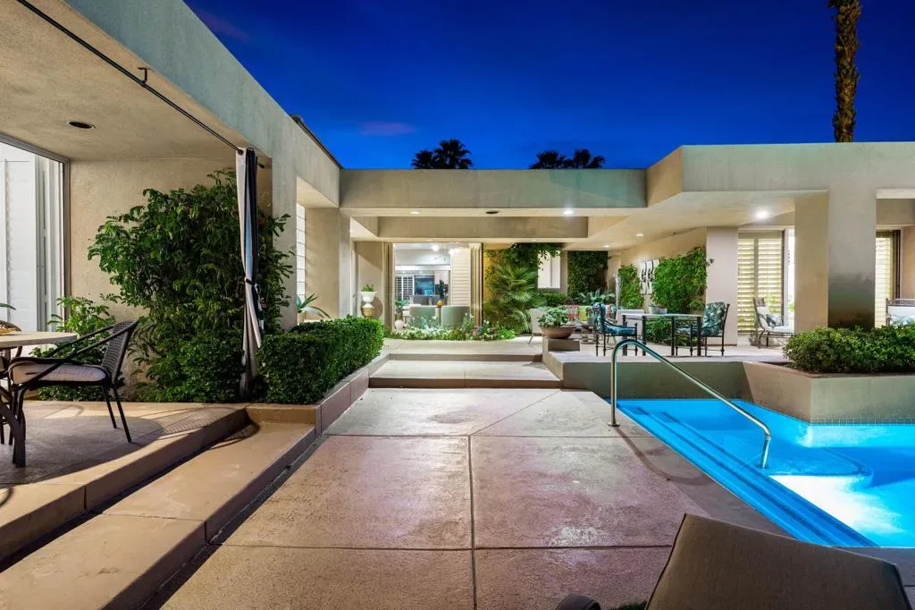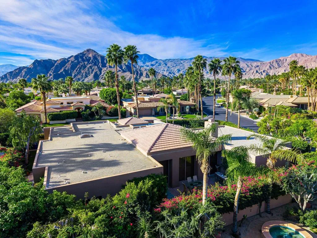 Spectacular South & South-West Mountain Views, rarely offered in the prestigious community of Painted Cove. Escape to desert luxury in this custom built Peter Ministrelli contemporary masterpiece, located in this unique and private gated community (with remarkably low HOA dues). This beautifully maintained 3,840 sqft single-story home dazzles with high ceilings and massive Fleetwood dual pane sliders that open up to breathtaking mountain views. The property features an open floor plan, large kitchen, wet bar, travertine floors, four spacious bedrooms, all with en-suite bathrooms. The exterior is comprised of a 15,000+ sqft corner lot, completely walled and gated (ideal for ultimate privacy or an entertainer’s dream), and surrounded with bougainvillea; the sparkling salt water pool/spa is framed by palms, citrus trees, and situated where the pool/spa get sun at all times of the day; The Main Bedroom suite has its own terrace with views, large walk-in closets, with an oversized bathroom. This gem is just moments from La Quinta’s charming Old Town shops, restaurants, top golf courses, and Indian Wells Tennis Garden–making it an irresistible year-round retreat or seasonal paradise. Property is being offered turnkey furnished per seller’s inventory, with some minor exclusions.