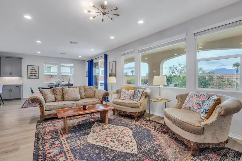Welcome to your dream home at 79699 Via San Mateo in the coveted Gated Floresta community of La Quinta! This stunning single-story residence offers a perfect blend of luxury, comfort, and convenience in a prime location. Situated at the corner of AVE 52 and Jefferson, this newer community is just across the street from the prestigious SilverRock Resort and a short bike ride away from the charming Old Town La Quinta, brimming with delightful shopping and dining options. Featuring breathtaking views of the SOUTH Mountain from its large floral basin and walking trail behind the property, this home offers the picturesque backdrop that everyone desires. Step inside to discover a light and bright kitchen adorned with quartz counters, stainless steel appliances, and ample cabinet space. The kitchen seamlessly opens to the spacious great room, complete with a dining table area, cozy fireplace, and sliding doors leading to the back patio, where you can relax by the large spool and enjoy the beautiful vista. The master bedroom is a serene retreat boasting an ensuite bath with dual vanities, a separate tub, shower, and a walk-in closet with organized storage, providing both luxury and functionality. Additional highlights of this immaculate property include a convenient powder room, a large laundry room with plenty of storage space, and a three-car garage, ensuring ample room for all your needs. The community features a large community swimming pool and spa, with entertaining area in club room.