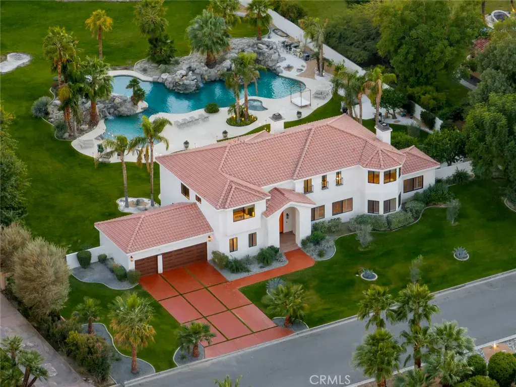 Located behind the gates of The Estates of La Quinta, 81935 Mountain View Lane presents a rare opportunity to own a true resort-caliber estate in one of the desert’s most private and sought-after enclaves. Perfectly positioned near the world-class Desert International Horse Park, the Jacqueline Cochran Regional Airport, PGA West, and the exclusive Madison Club, this property offers unmatched access to elite lifestyle amenities while maintaining exceptional privacy within La Quinta. The estate is set on an expansive 1.25 acres, providing exceptional space, privacy, and the scale necessary to support its resort-style amenities and grounds. Designed for both grand-scale entertaining and everyday luxury, the estate showcases one of the Coachella Valley’s largest resort-style pools, enhanced by dramatic cascading water features and expansive lounging areas. A private par-3 golf hole with crushed white Augusta-style sand bunkers creates a one-of-a-kind backyard experience rarely found in residential estates, delivering a true country club atmosphere at home.The residence has been thoughtfully remodeled with high-end finishes and architectural details throughout its six bedrooms and six-and-a-half bathrooms. Interiors feature 10-inch wide-plank European oak wood flooring, imported Spanish tile, and Carrera white marble throughout. Custom tile bathrooms, two indoor Jacuzzi tubs, and solid 8-foot alder doors elevate the sense of craftsmanship and quality at every turn. The gourmet kitchen and entertaining spaces are anchored by Wolf and Sub-Zero appliances, three wine refrigerators, a full wet bar, and a dramatic 17-foot Fleetwood-style bi-fold door that seamlessly connects indoor and outdoor living. A six-foot pass-through window further enhances the flow for hosting, while custom cast-iron A/C vents and a whole-house central vacuum system reflect the home’s attention to refined detail and modern convenience. 81935 Mountain View Lane is a rare offering that blends privacy, proximity, and resort-level amenities into a single exceptional estate–an ideal retreat for those seeking the highest level of luxury living in La Quinta.