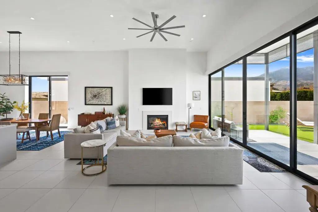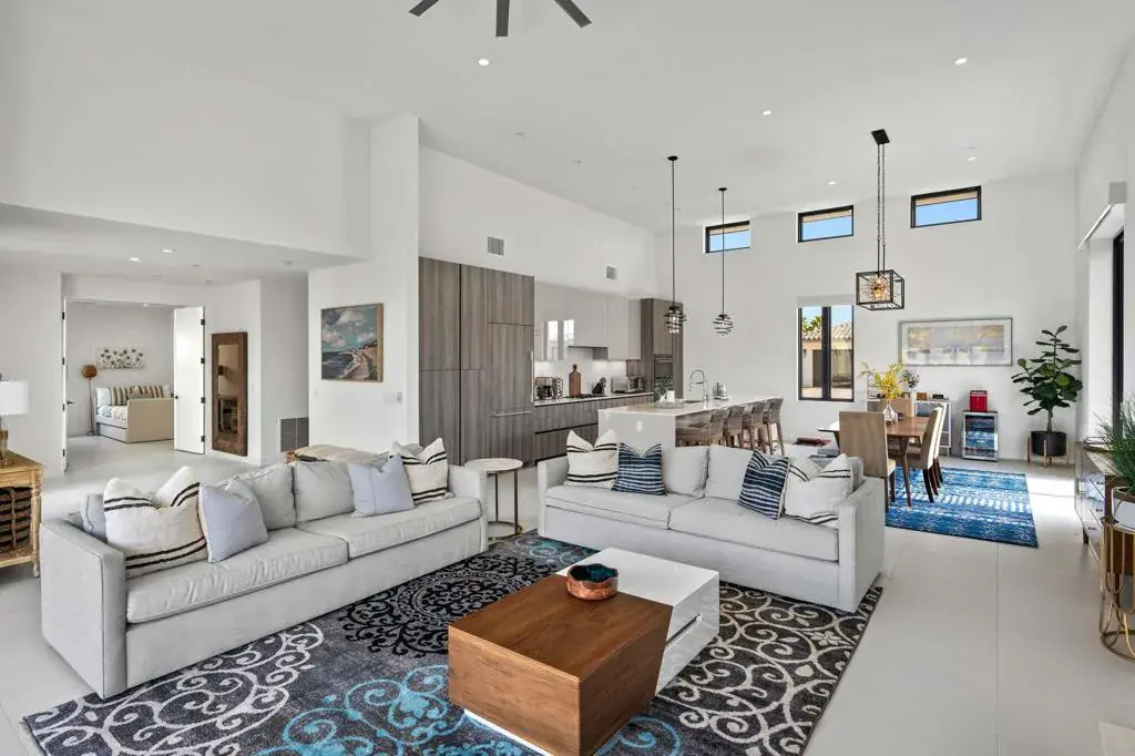 Award winning home builder combining Modernism and Balinese design. Experience an upscale lifestyle featuring the best of indoor / outdoor Desert Living, with open spaces and an abundance of natural light.Very spacious and elegant 4BD l 4BA with private pool / spa and fire pit. Open concept features dramatic 14+ ft ceilings.Primary bath includes a tranquil Japanese soaking tub.