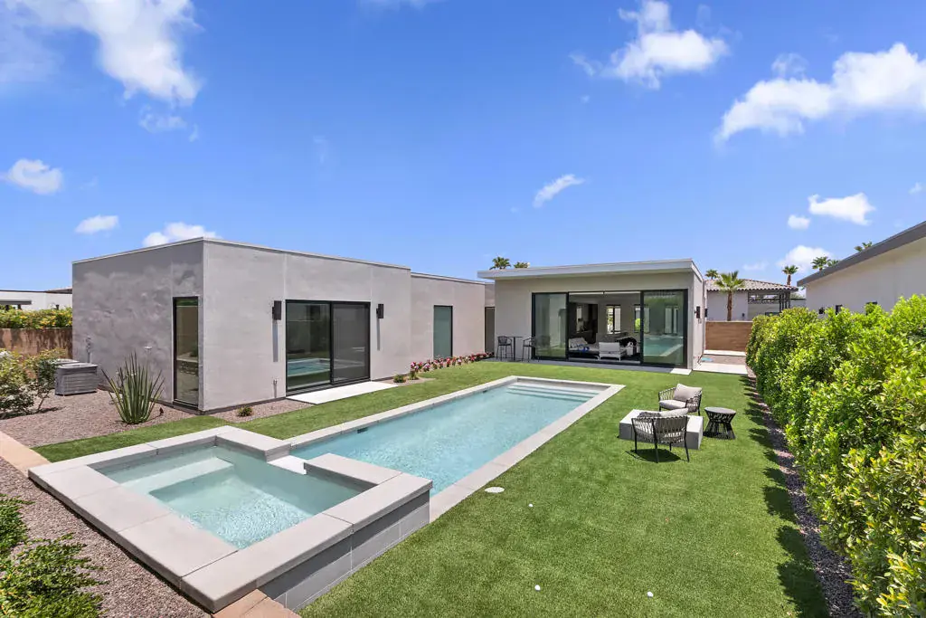 Discover contemporary desert living in this beauituflly furnished 3 bedroom, 3.5 bath home located in the exclusive gated community of Canterra at Coral Mountain. This modernism – inspired residence offers seamless indoor/outdoor living with abundant light and thoughtfully designed open spaces. Each bedroom comes with its own private ensuite bath creating comfort and privacy for residents and guests alike. The great room flows effortlessly into the chefs kitchen and out to the backyard oasis – perfect for entertaining or quiet relaxation. Enjoy breathtaking mountain views while lounging by your private pool and spa. Mulitple outdoor seating and dinning areas allow you to take full advantage of the desert lifestyle, wether its morning coffee with the sunrise or evening cocktails at sunset! Enjoy the proximety to the endless hiking trails that span the Quarry Golf Course! Now accepting appliations for the 2025/2026 season – available long term