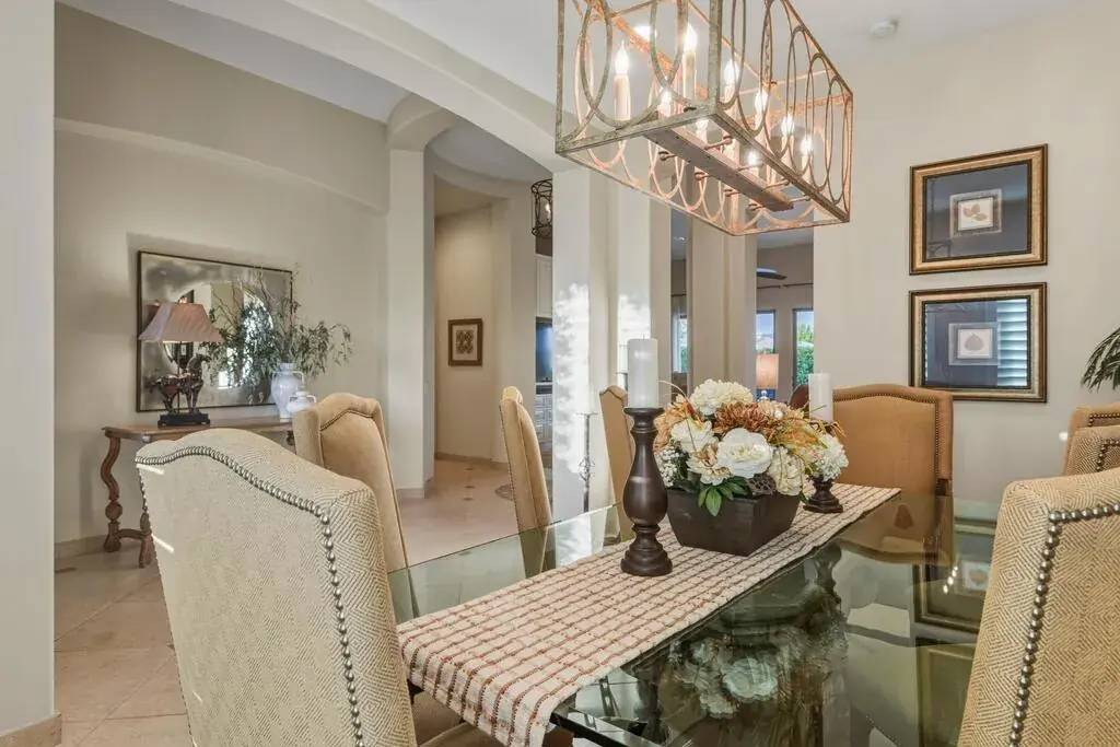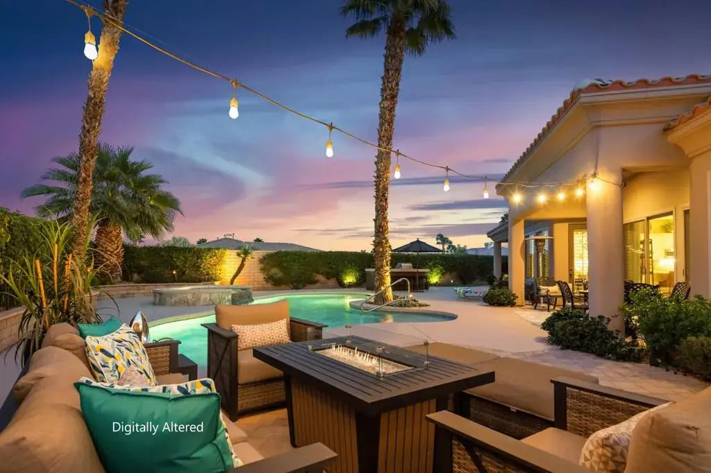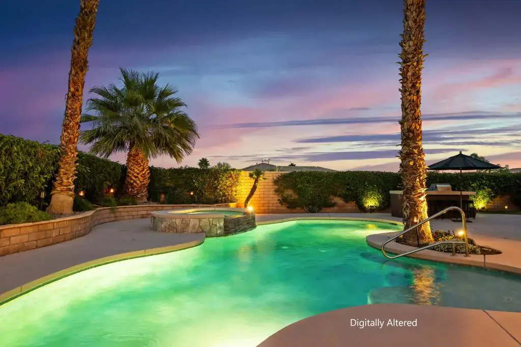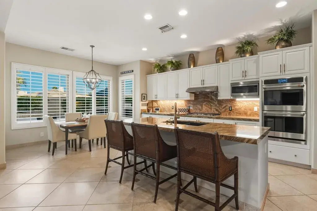 Truly stunning 3 bed, 3.5 bath home sitting at the end of a cul-de-sac street in the gated Althea community is ready for its new owner and offers beautiful curb appeal with artificial turf and the interior of the home is open and spacious with high ceilings, recessed lights, plantation shutters, tile flooring in the main living spaces and carpet in the bedrooms. The living room features an abundance of natural light with sliding glass doors – great for seamless indoor/outdoor hosting. The chef’s kitchen has GE Cafe appliances including the double ovens, cooktop, and refrigerator. The kitchen also offers gorgeous countertops with matching full wall backsplash, white cabinetry with lots of storage space, a huge center island with bar seating, and a pantry. The kitchen also overlooks the breakfast nook area as well as the living room. There is also a formal dining room. All 3 bedrooms are generously sized, have private bathrooms, and walk-in closets! The large primary suite also features crown molding, private backyard access as well as, 2 walk-in closets, and a spa-like ensuite with dual sinks, a soaking tub, and a separate shower. A laundry room with extra storage and there is a half bathroom for guests complete the interior. Enjoy the entertainer’s dream backyard with private in-ground pool and spa, there is also a covered patio, a built-in BBQ bar, a large private putting green and there is also an additional grass side yard! This home also has an attached 3-car garage, and is conveniently located near shopping, dining, golf courses and more! Ready for its next chapter, this home is the perfect place to create lasting memories!