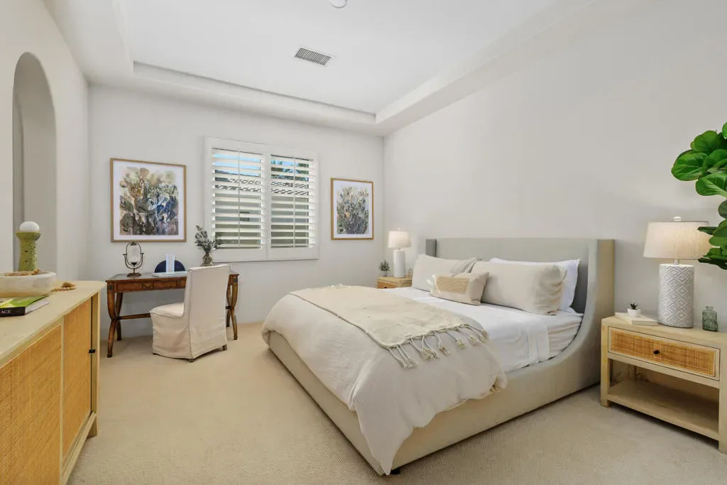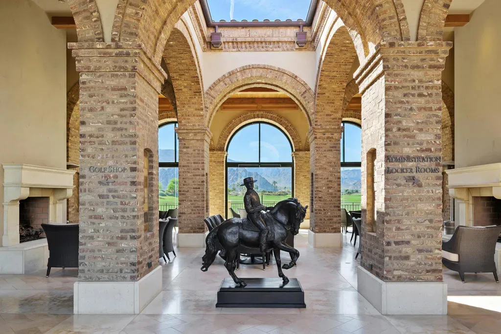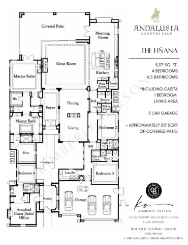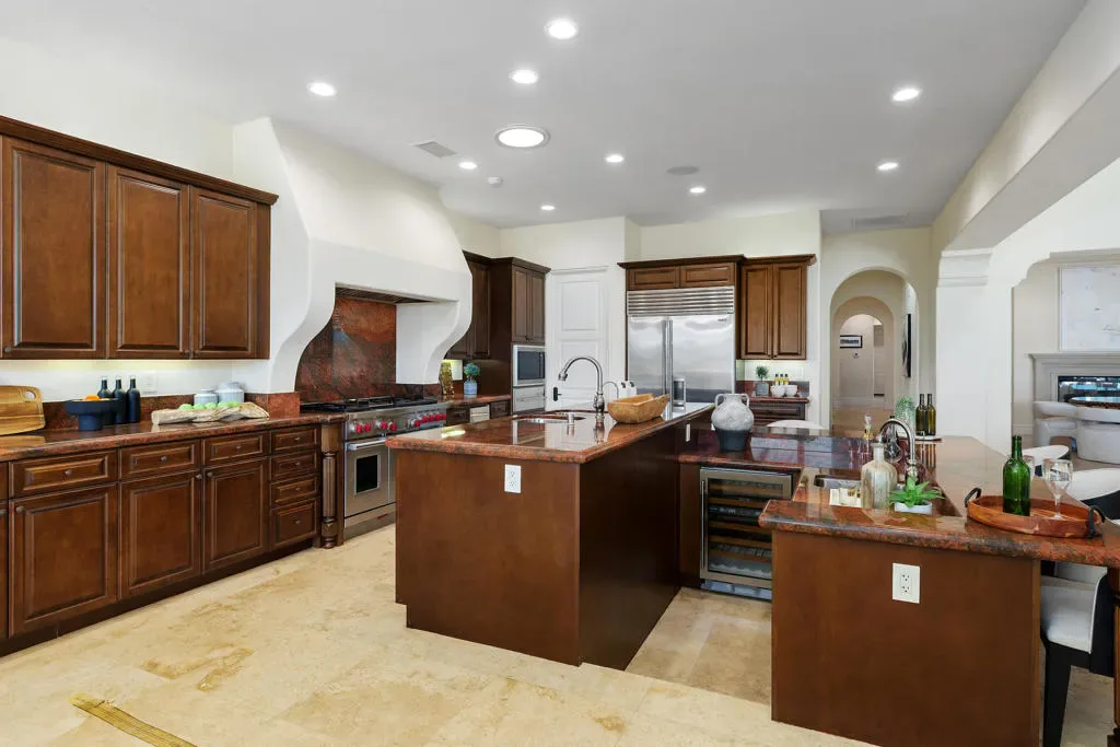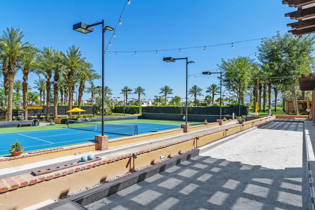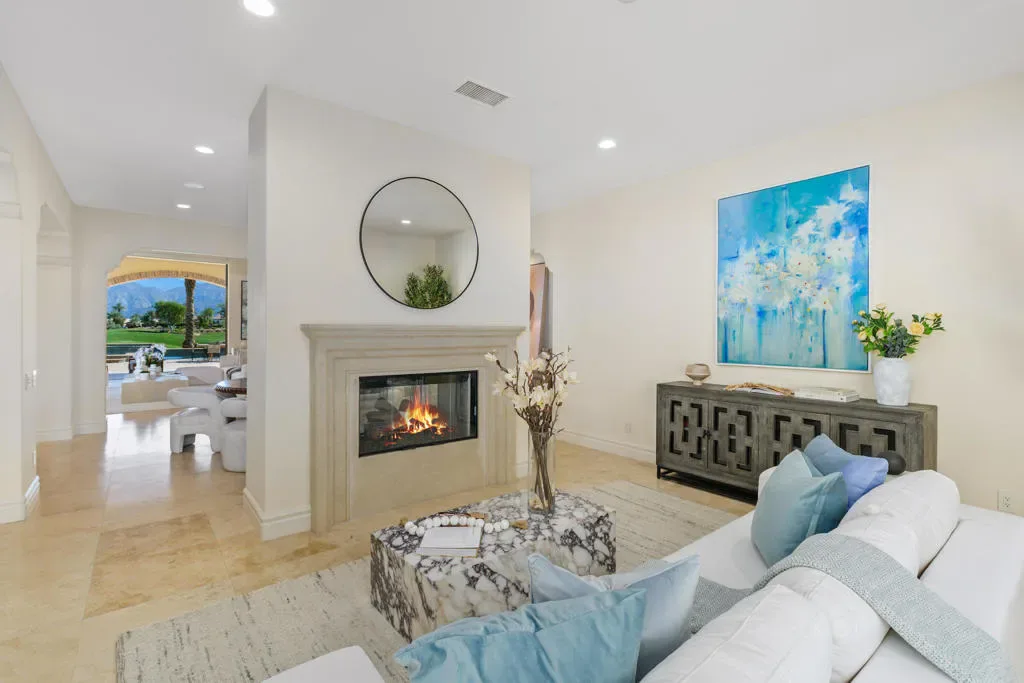 Imagine a life where every day unfolds against a backdrop of breathtaking beauty and unparalleled luxury. 58154 Aracena, an exceptional Finana Villa in Andalusia CC, is set on a premier half-acre lot with southern views stretching across two fairways to the Santa Rosa Mountains. Step through the wrought-iron gate into the protected courtyard, and the outside world slips away. The great room, crowned by a soaring 13-foot beamed ceiling, features Fleetwood glass walls that disappear for seamless indoor-outdoor living. Entertain in the formal dining room, warmed by a dual-sided fireplace that also serves an intimate family room. The chef’s kitchen is equipped with Wolf & Sub-Zero appliances, a sunlit breakfast area, a step-down wet bar, and a 147-bottle, temperature-controlled wine cellar. Retreat to the luxurious primary suite, a sanctuary of comfort featuring its own fireplace and a spa-inspired bath with a double-headed shower, jetted tub, and walk-in closets. Guests will delight in the privacy of the one-bedroom casita, complete with its own living room, fireplace, kitchenette, and full bath. The west wing includes two additional en-suite bedrooms, a full laundry room, and a 3-car garage. The backyard is a private resort with an oversized saltwater pool, waterfall and infinity-edge spa. Gather around the fire pit, dine al fresco from the barbecue island, or compete on the new bocce court. Andalusia CC offers a lifestyle beyond compare. HOA includes social/sports membership, pool & spa, tennis & pickleball courts, walking trails, dog parks, and Tapas Restaurant. The Rees Jones championship course is a masterpiece of challenging design and manicured beauty.This isn’t just a home; it’s a passport to one of the desert’s most sought-after luxury lifestyles, offering security, serenity, and endless opportunities for recreation and relaxation.