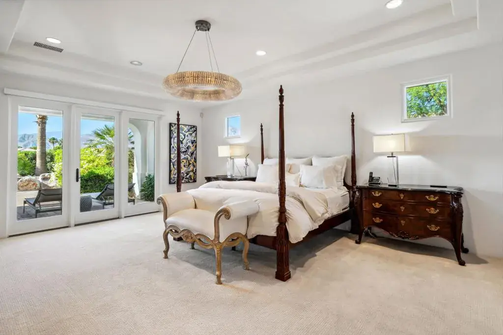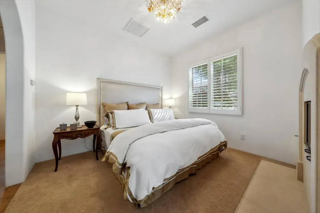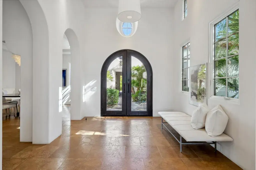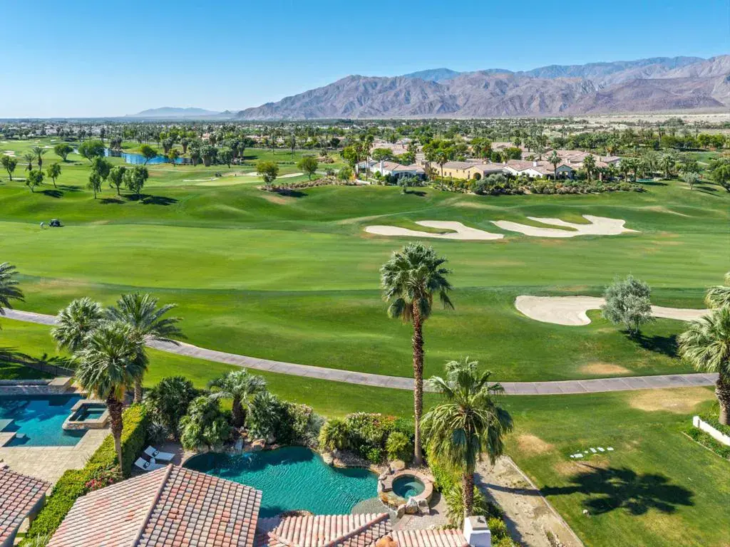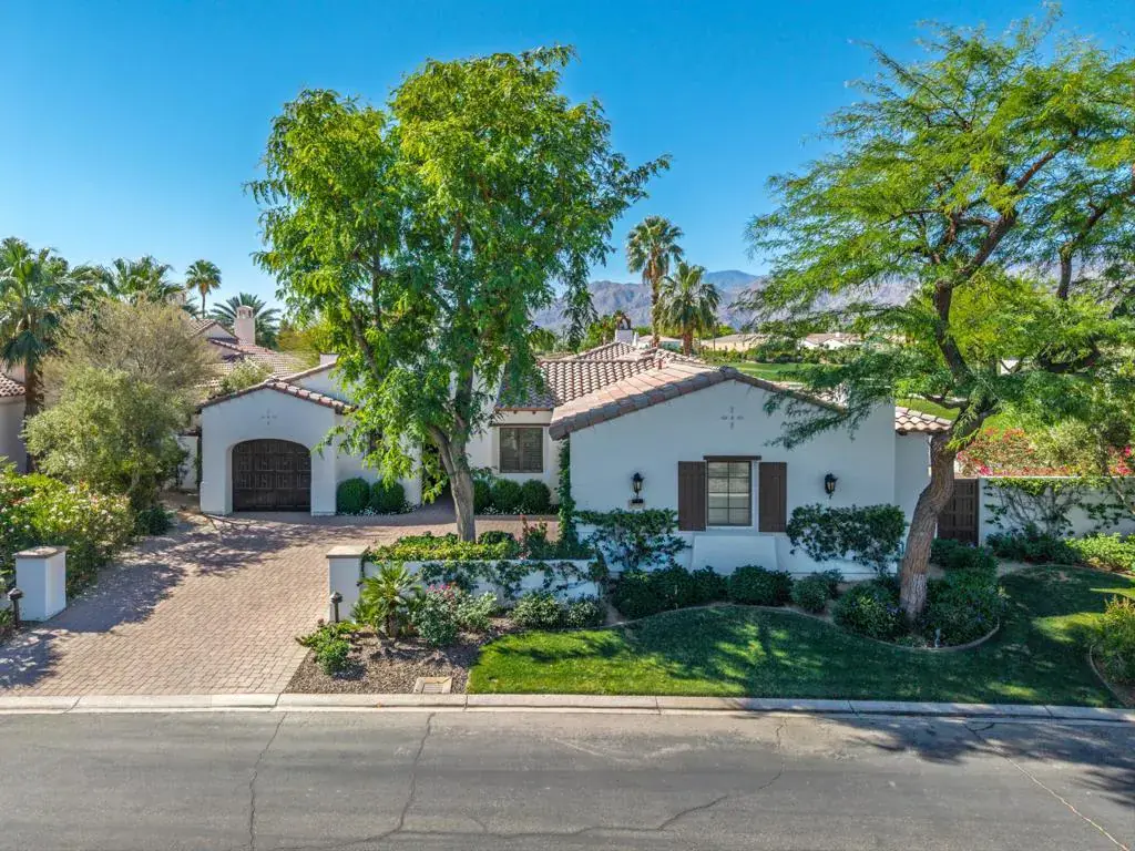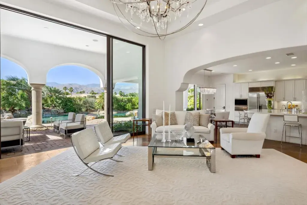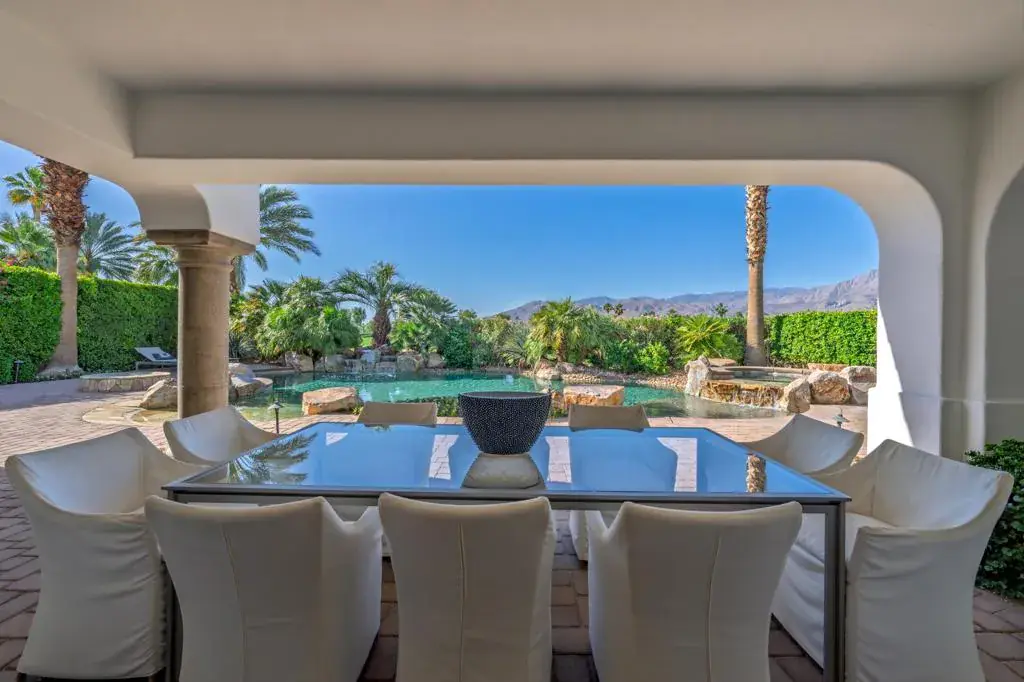Experience refined desert living in this exquisitely appointed South-facing home, ideally located in the prestigious Andalusia Country Club. Perfectly positioned to capture unobstructed views of the Santa Rosa and Coral Mountains and the lush fairways of the Rees Jones-designed golf course, this residence offers a perfect harmony of refined style, relaxed living, and scenic beauty. From the moment you step through the private entry, you’re welcomed into a thoughtfully designed interior, beautifully curated with designer furnishings and exquisite lighting that elevate every space. The open-concept layout flows effortlessly from the elegant great room to the chef’s kitchen, complete with premium appliances and an oversized island ideal for entertaining. Stone flooring enhances the home’s luxury, while walls of glass in the great room invite in abundant natural light and frame captivating views. The spacious primary suite is a private retreat, featuring a spa-like bathroom with dual vanities and generous walk-in closets. A detached two-room casita offers guests the ultimate comfort with its own fireplace, kitchenette, and private entrance. Step outside to discover a resort-style backyard designed for year-round enjoyment. A stunning saltwater pool with a spa takes center stage, surrounded by a covered loggia, built-in BBQ island, and inviting fire pit – perfect for sunset gatherings or stargazing under the desert skies. Come live the life you’ve always imagined!