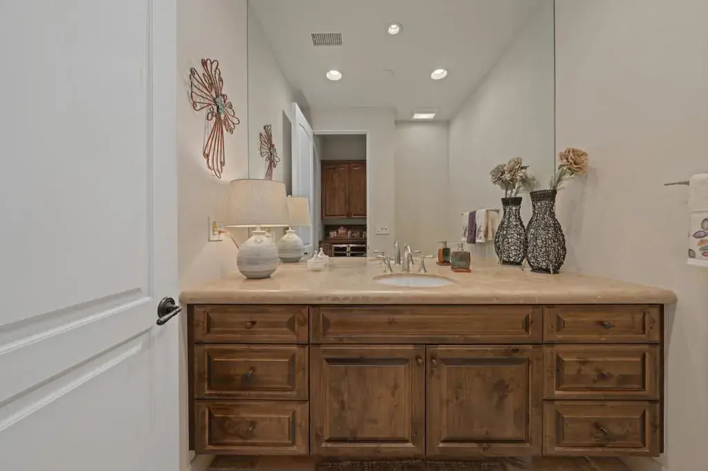 Located on a private end lot, this exquisite residence boasts sweeping views down the 3rd fairway of the renowned Rees Jones-designed golf course in the esteemed Andalusia Country Club. Offered fully furnished, this home is a showcase of elegance and comfort, perfectly blending luxurious details with modern functionality. Inside, stunning travertine flooring flows throughout the home, complementing the expansive great room that features a custom bar area. The open kitchen is a chef’s dream, complete with a large island and a butler’s pantry equipped with an additional dishwasher and sink. The adjoining formal dining room creates the perfect setting for hosting intimate gatherings. This thoughtfully designed floor plan includes two primary suites, each featuring spa-like baths for ultimate relaxation. The main primary suite is enhanced by a customized office, fireplace, and an expansive walk-in closet. An additional media room provides a dedicated space for movie nights. The detached casita offers versatility with a living room, fireplace, kitchenette, and a separate bedroom with bath. The layout allows the space to be used as two bedrooms with separate entrances, offering privacy and comfort. The backyard is an entertainer’s paradise, featuring a sparkling pool, tranquil water features, a relaxing spa, a built-in BBQ area,and cozy firepit–all surrounded by the serene beauty of the golf course. Come live the life you’ve always imagined!