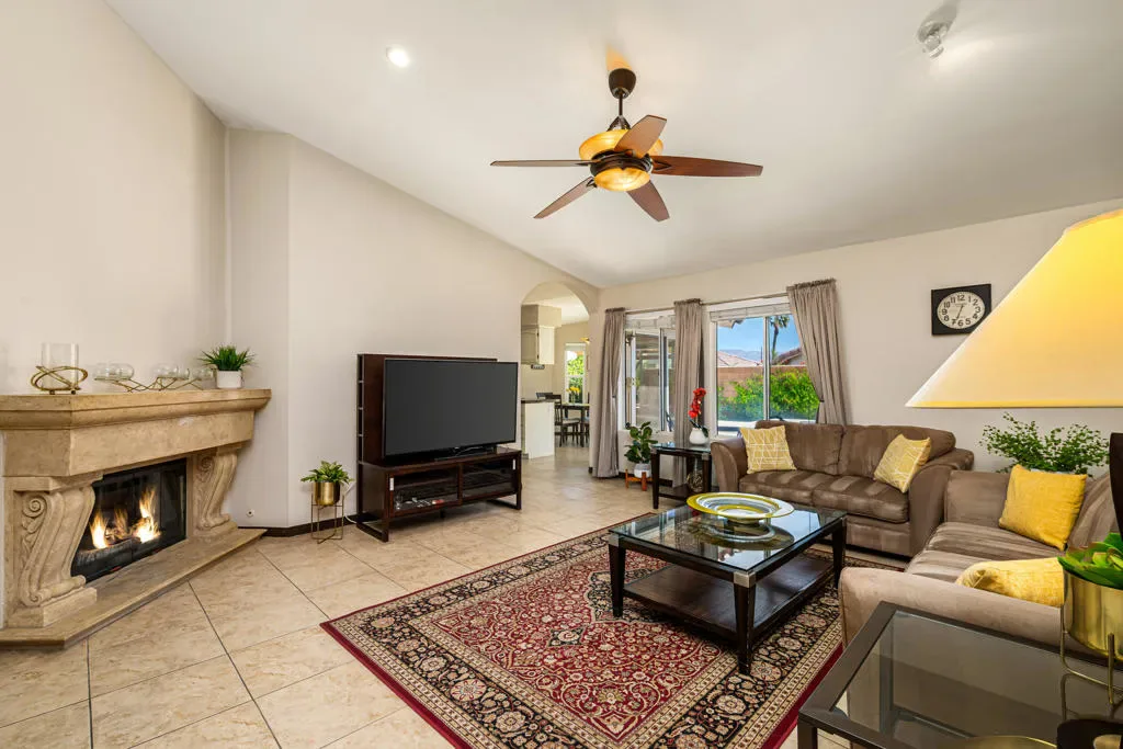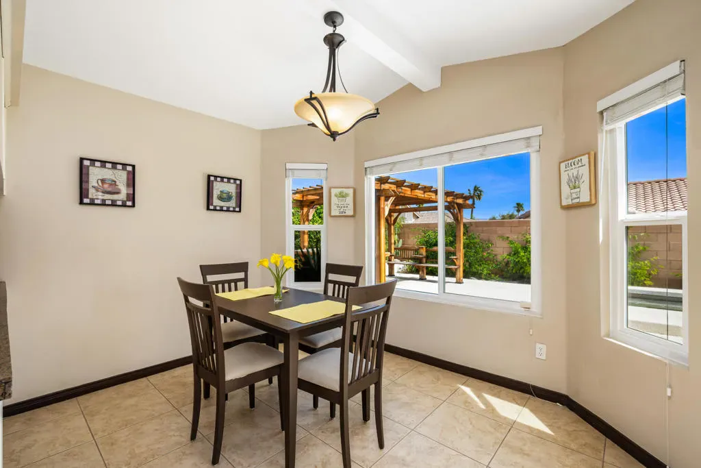 Beautifully Updated Home in Highly Desirable North La Quinta – No HOA!Welcome to this beautiful 4-bedroom, 3-bathroom home located in the sought-after Cactus Flower neighborhood, tucked away on a quiet cul-de-sac in North La Quinta. Situated within an award-winning school district, this residence offers the perfect blend of comfort, style, and convenience.Spanning approximately 2,378 sq. ft., the home features a thoughtfully designed open-concept floor plan with a spacious family room complete with a cozy gas fireplace, along with a separate living and dining area ideal for entertaining. The kitchen is well-appointed with granite countertops, stainless steel appliances, and a generous breakfast nook.Recent updates include a remodeled Pebble Tec pool, partial new windows, and an upgraded 1 of the dual air conditioning system. Laminate and tile flooring run throughout the home, and all three bathrooms feature granite countertops.Step outside to your private backyard oasis, featuring a refreshing lap pool and spa, block wall fencing, covered wood patio, additional side patio, and multiple seating areas–perfect for relaxing or entertaining. The property also offers a three-car garage, mature landscaping, charming curb appeal, and an inviting double-door entry.Enjoy the added benefit of no HOA fees and lower electric costs through Imperial Irrigation District (IID), plus proximity to top-rated schools, shopping, and dining.This North La Quinta gem offers so much-schedule your private showing today!