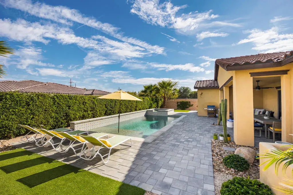Welcome to this stunning 2,911 SQ FT home in the highly sought-after gated community of Carmela. This extensively upgraded 4BD, 3.5BA beauty features owned solar and smart home technology for modern convenience. The open-concept floor plan seamlessly blends living spaces, including a formal dining room and a versatile office/media room. The custom backyard is an entertainer’s dream with a paver patio, California room, saltwater pool, spa, tanning ledge and meticulously maintained landscape complete with landscape lighting. Inside, the kitchen boasts elegant waterfall countertops, a butler’s pantry, and top-of-the-line stainless steel appliances, including a Sub-Zero refrigerator. Throughout the home, you’ll find custom built-ins throughout and tasteful upgraded light fixtures and ceiling fans. The spacious primary suite offers a luxurious bathroom featuring both a spa like rain showerhead and handheld wand. A separate soaking tub adds to the relaxation. Located in a quiet, secure neighborhood, this home is the perfect blend of luxury and comfort. This home is a must-see!
