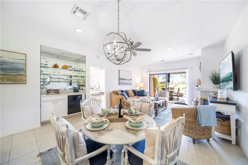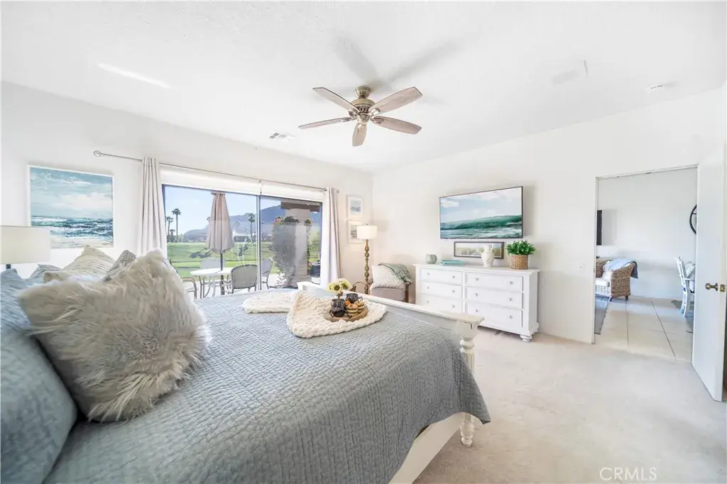 Fully Furnished – Long Term Lease Available, starting April 2026! Homes in Duna La Quinta rarely come available, making this fully furnished luxury retreat an exceptional opportunity to experience refined desert living. Perfectly positioned on the 3rd hole of the PGA West Resort Dunes Course, Calle Norte offers unobstructed fairway views, breathtaking mountain and sunset vistas, and a front-row setting overlooking the iconic La Quinta Resort. Enter on the first level, with the living spaces and bedrooms on the elevated second level, capturing panoramic golf course and mountain vistas and creating an open, airy flow throughout the home. The property also includes an attached two-car garage with direct access, adding convenience and privacy. Light and bright with coastal modern décor, the interiors feel refreshing and serene, perfectly complementing the desert surroundings. The open living space features a cozy fireplace and built-in wet bar, ideal for relaxed entertaining or quiet evenings at home. The well-appointed kitchen showcases crisp white cabinetry, quality appliances, and seamless flow into the living and dining areas. Both bedrooms are thoughtfully situated on opposite sides of the home, providing a private and flexible layout for guests or extended stays. Sliding glass doors from the living room and primary suite open to a covered patio with a gas firepit and alfresco dining, creating the perfect setting to unwind while taking in expansive golf course views and dramatic sunsets over the Santa Rosa Mountains. Residents enjoy access to three community pool and spa areas and the convenience of being within walking distance to one of the valley’s most celebrated clubhouses, known for its panoramic views. With owner approval, optional use of a golf cart enhances the resort experience, offering effortless access throughout the community. Just minutes from world-class dining and entertainment, La Quinta Resort, Old Town La Quinta, Indian Wells Tennis Garden, El Paseo, and endless outdoor recreation, this home delivers a rare opportunity to lease in one of La Quinta’s most coveted golf communities. Fully furnished and move-in ready, Calle Norte invites you to simply arrive and enjoy the desert at its finest.
