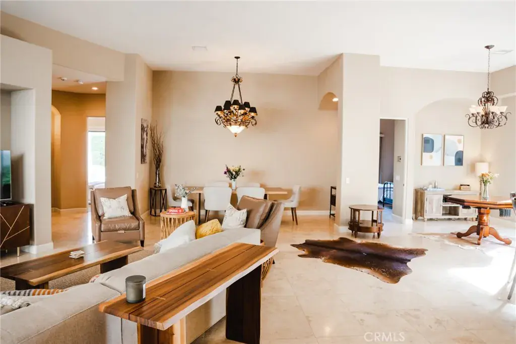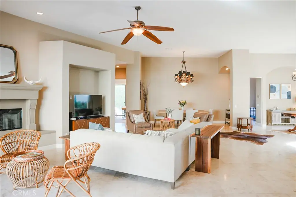Seller financing may be available—terms, conditions and availability, subject to qualification and seller approval. Experience the epitome of luxury living with unparalleled views and a prime location in the esteemed Point Happy Estates of La Quinta. This FULLY FURNISHED TURN KEY retreat is nestled against the majestic mountains in a tranquil neighborhood, this rare opportunity offers a secluded retreat within walking distance to exquisite dining, shopping, and coffee shops. Perfectly positioned for outdoor enthusiasts, it’s just minutes away from exceptional hiking trails. Step inside to discover a home adorned with exquisite upgrades, including a Thermidor gas range, built-in stainless steel refrigerator, and luxurious travertine tile floors complemented by lofty 12′ ceilings. Recent upgrades include a new 2-zone A/C system, garage A/C, patio misters, and a retractable awning, ensuring comfort and convenience year-round. Wake up to breathtaking mountain vistas from your primary suite, complete with a cozy fireplace for added ambiance. Indulge in the spa-like primary bathroom featuring a walk-in shower and spacious dual sinks. Two additional generously sized guest bedrooms offer private en-suite bathrooms, providing the perfect accommodations for visitors. Entertain in style in the open-concept living room, seamlessly flowing onto the poolside patio, where the awe-inspiring mountain views serve as a stunning backdrop. Enjoy the serenity of your own private oasis amidst meticulously manicured grounds on an oversized lot. Discover the ultimate blend of luxury, comfort, and natural beauty in this extraordinary La Quinta retreat.