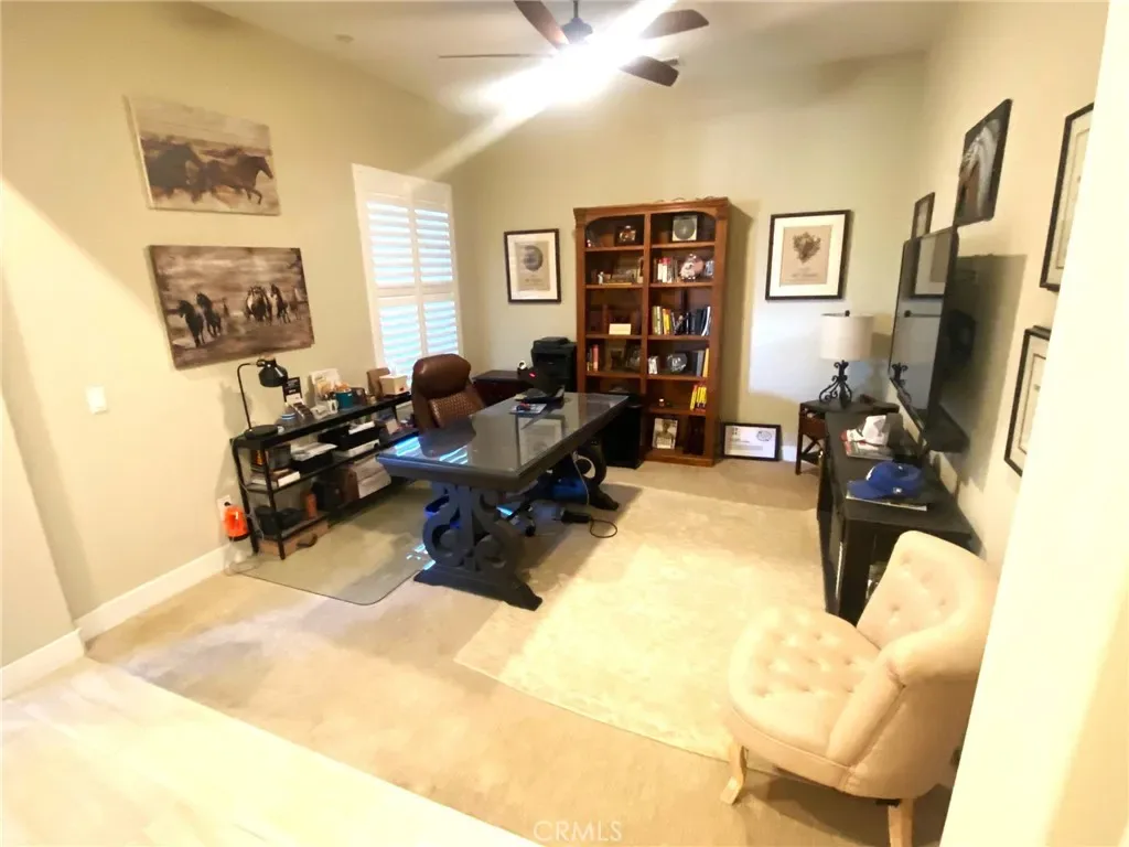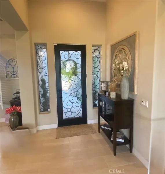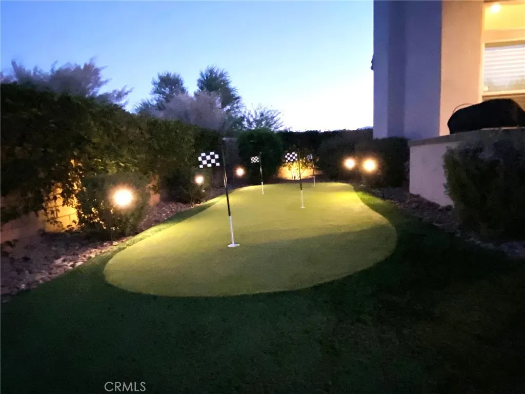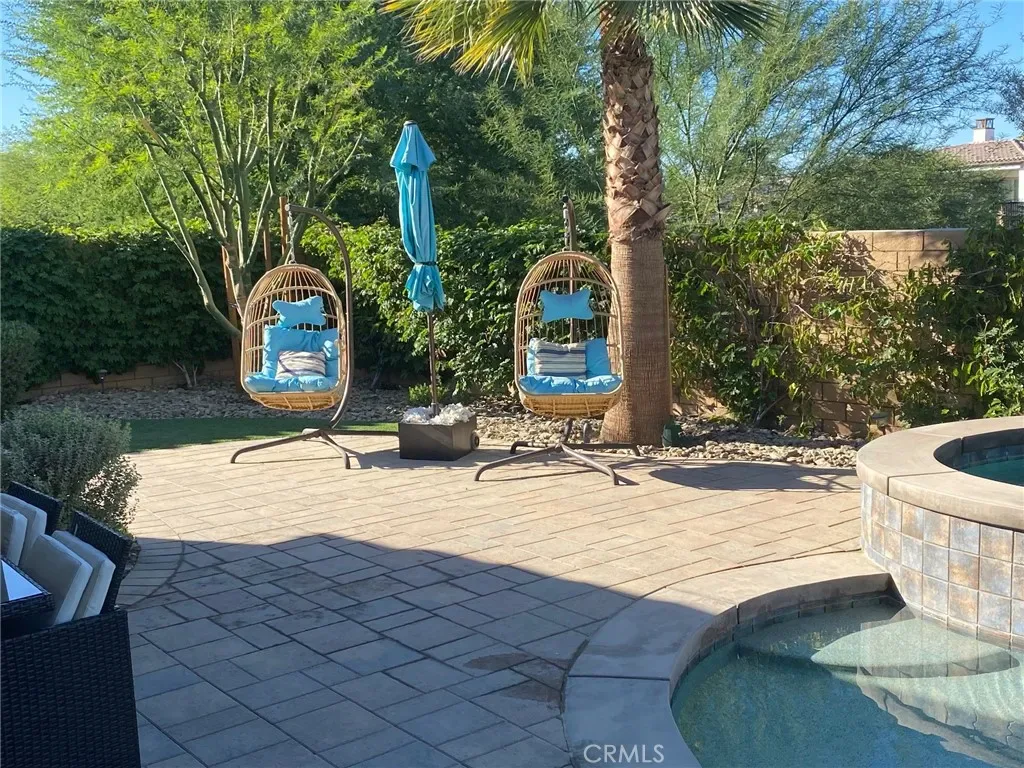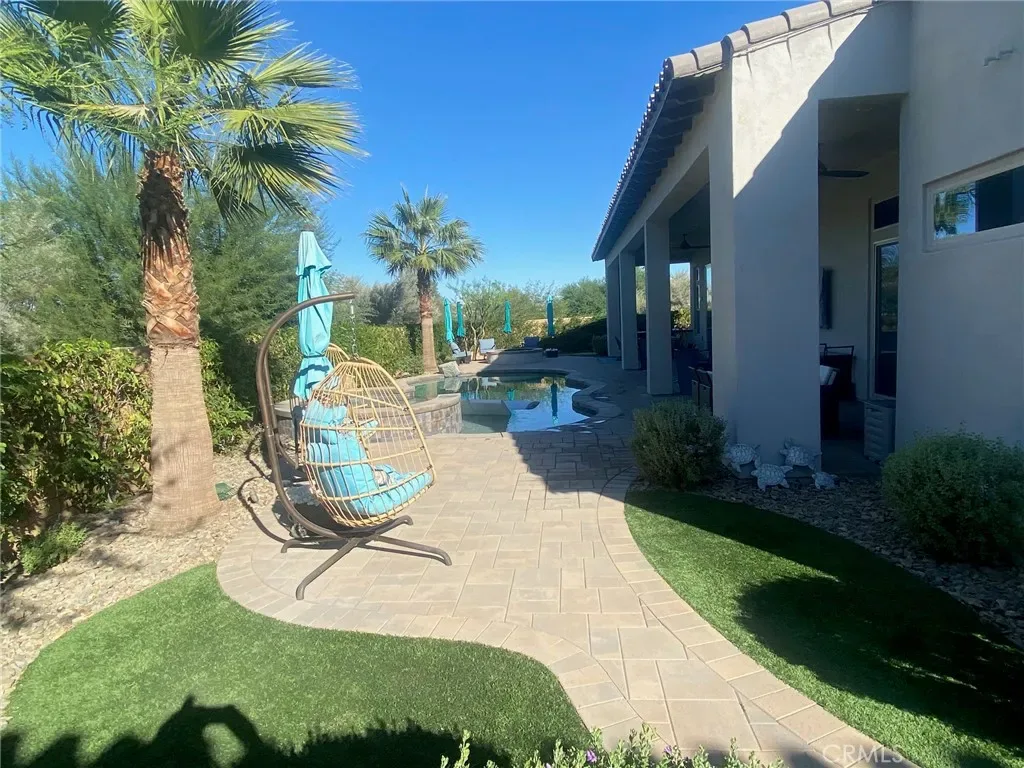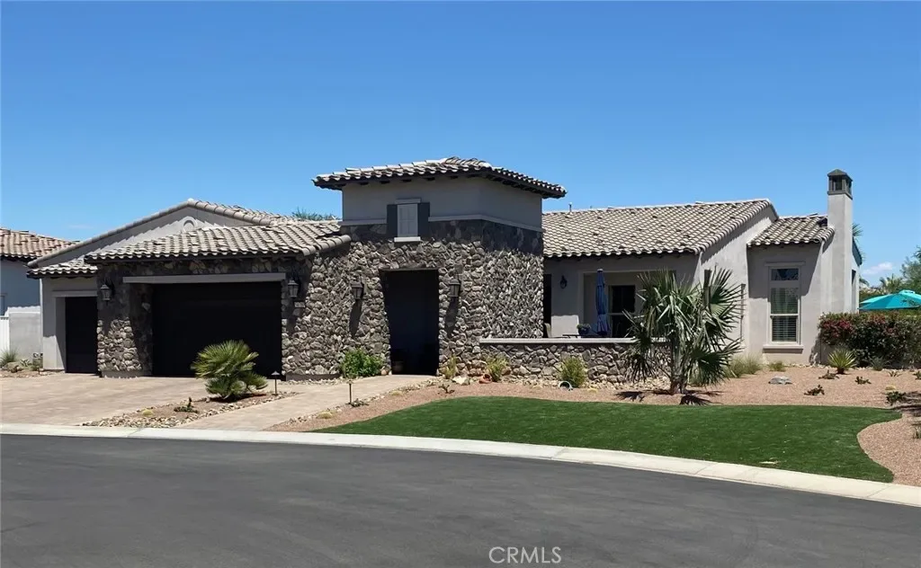 PRICE REDUCTION!! Introducing, this gorgeous, Estate Style, Turn Key Home in prestigious Griffin Ranch gated community. The south facing home sits on a large corner lot with a beautiful huge, park like area on two sides and a very private back yard. There is only one contiguous neighbor to the west. The Sellers purchased the home, preconstruction, in 2019, with many Builder upgrades and amenities added during construction, such as, a saltwater swimming pool and spa with tanning shelf, ambient lighting and tranquil waterfalls, a large covered patio in the pool area, ceiling fans, a built in barbeque with misters, gas firepit, and a putting green. The Sellers just installed all new upgraded Landscaping, A brand new Whole Home water filtration system, a $7,500 Valve, and all new carpeting and padding, an $8,000 Value. There’s a two car garage + a golf cart garage (Sellers Golf Cart/charger and some furniture items are negotiable for sale out side of escrow.) Custom Epoxy floors in all garage spaces with built in custom storage cabinets. The unique open floor plan with the Living Room/Great Room having high ceilings, a Grand Fireplace and 10 foot sliding glass doors that open into the pool area, Also, a Formal Dining Room, a spacious separate Office that can be used as a 4th Bed Room and Laundry Room with sink, upper and lower cabinets and clothes folding area. The Master Bedroom has a modern en suite Bathroom with Soaking tub and large Walk in closet. The other bedrooms each have their own private Bath and the home has a 4th guest Bathroom. The Gourmet kitchen includes a large prep Island with Granite Counter Tops and Backsplash, an Eating area, a 6 burner Stovetop with dual Ovens and state of the art Stainless Steel Thermador Appliances and a large walk in Pantry. Included is an additional Refrigerator in the garage and rear patio, along with the Three + Big Screen TV’s that are included in the sale. A Custom sound speaker system in the Living Room/Great room, Master Bedroom, Office, and Back and Front Patios that can be controlled individually. There is a existing ADT Security System on the premise. The new Owners can contact ADT if they wish to reactivate the system. H.O.A amenities include: State of the Art Clubhouse w/Pool, Spa and Fitness Center, Pilates & Yoga Studio, Ping pong & billiards room, Tennis, Bocce and Pickle ball courts, Putting Green, Dog Park, etc. Property is close to PGA West & PGA Greg Norman Communities.