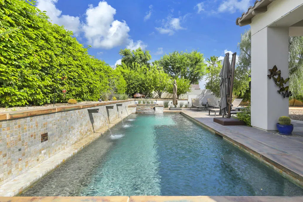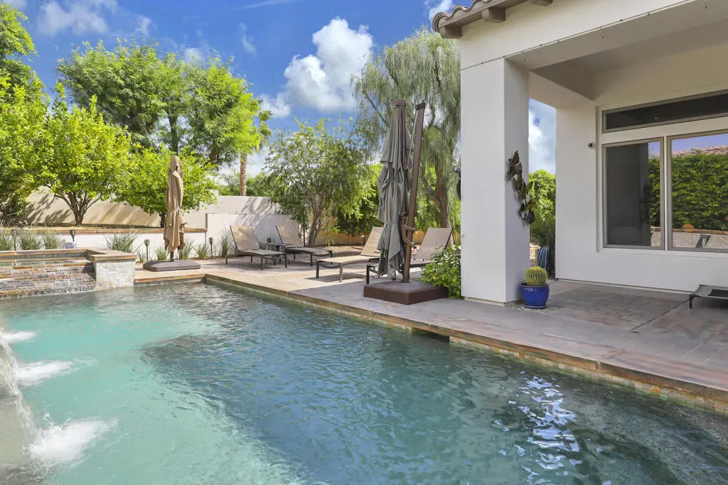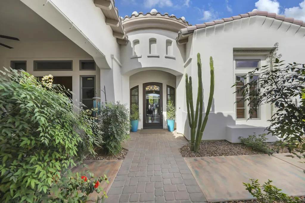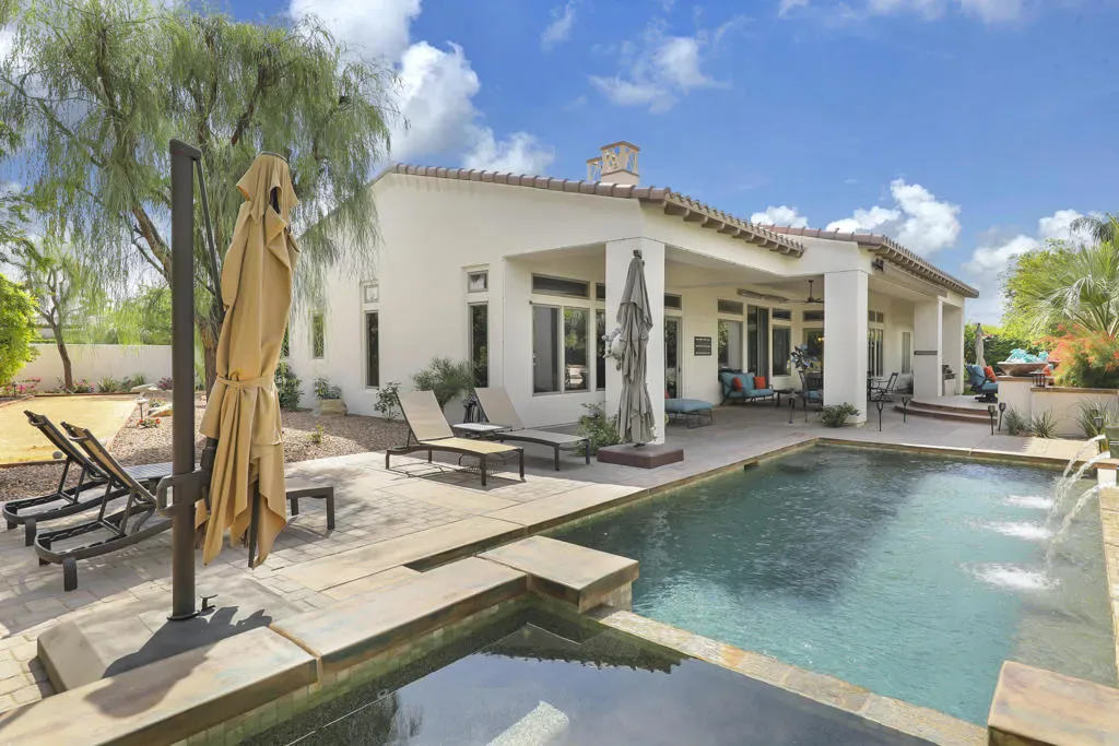 A rare opportunity to own a terrific refreshed former Model Home. This luxury 4 bedroom including Casita home, at Griffin Ranch, with a completely remodeled kitchen, with new quartz counters, backsplash, waterfall Kitchen Island and refreshed cabinets is one of the most popular floor plans. The upgrades start at the very private gated entrance and covered front courtyard with all new misting system & fireplace. This outdoor space sets the tone for how all the living spaces have been redesigned. Twin office /den spaces allow couples each private space for work, or play. Once inside you’ll be impressed with how current this former model lives with the open great room, large cooks’ kitchen & comfortable Morning room. If you are looking for privacy, this is it! The mature landscaping provides you with an amazing backyard, pool, spa, bocce ball court, room for your family & friends or head over to clubhouse and enjoy all the amenities that Griffin Ranch has to offer, including Pickleball, Tennis, Jr Olympic pool & spa. The parties at the clubhouse are second to none, the pickleball group has grown to well over 100 players, this is simply a fun place to live & play.