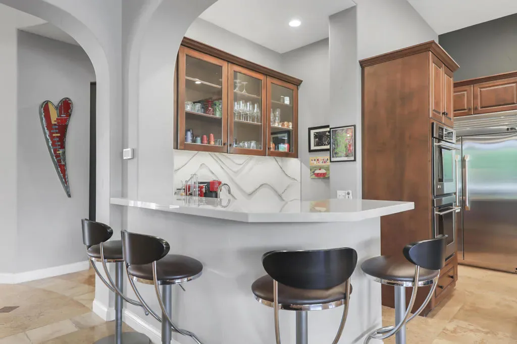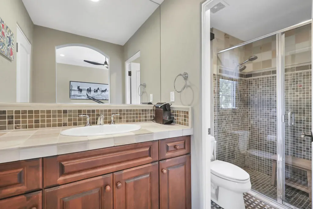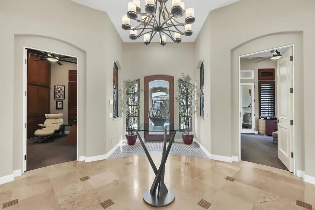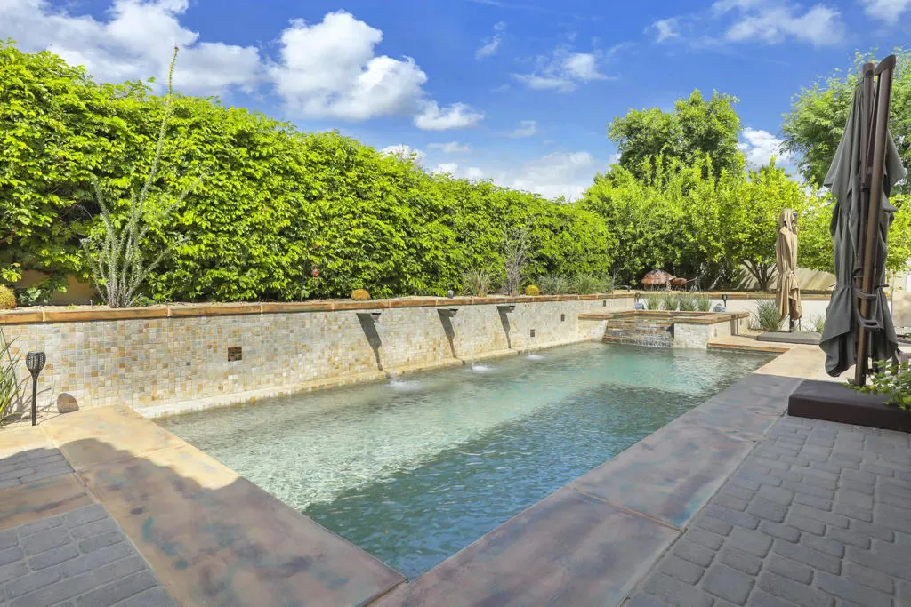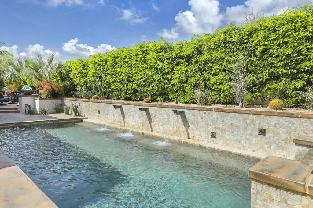 A rare opportunity to own a terrific refreshed former Model Home. This luxury 4 bedroom including Casita home, at Griffin Ranch, with a completely remodeled kitchen, with new quartz counters, backsplash, waterfall Kitchen Island and refreshed cabinets is one of the most popular floor plans. The upgrades start at the very private gated entrance and covered front courtyard with all new misting system & fireplace. This outdoor space sets the tone for how all the living spaces have been redesigned. Twin office /den spaces allow couples each private space for work, or play. Once inside you’ll be impressed with how current this former model lives with the open great room, large cooks’ kitchen & comfortable Morning room. If you are looking for privacy, this is it! The mature landscaping provides you with an amazing backyard, pool, spa, bocce ball court, room for your family & friends or head over to clubhouse and enjoy all the amenities that Griffin Ranch has to offer, including Pickleball, Tennis, Jr Olympic pool & spa. The parties at the clubhouse are second to none, the pickleball group has grown to well over 100 players, this is simply a fun place to live & play.