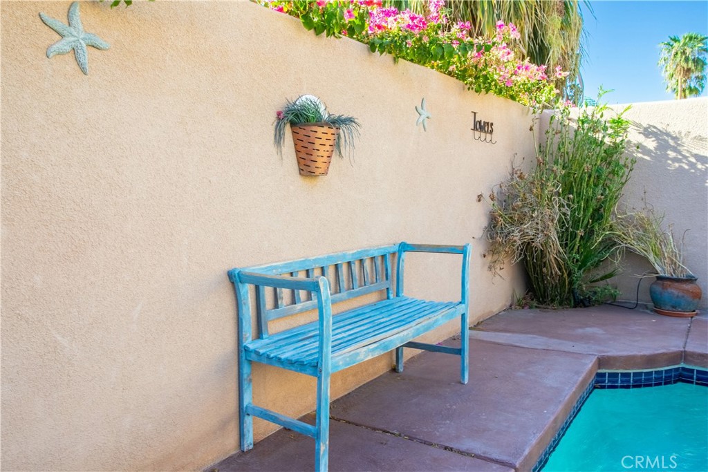 Beautifully furnished Santa Fe-style home in La Quinta Cove, priced to sell. Featuring 3 bedrooms and 2 baths, it’s perfect for either full-time living or as a desert retreat included with home amenities. The private courtyard, complete with a pool and spa, is the ideal spot to take in those stunning west-facing mountain views. Plus, the French doors connecting the pool area to the kitchen make entertaining or relaxing by the pool so much easier. The kitchen itself is a chef’s dream with its large side-by-side fridge, breakfast bar, pantry, and everything you need for a seamless cooking experience. The great room’s 12-foot ceilings and gas fireplace create a cozy, welcoming atmosphere. The spacious primary bedroom is another highlight, featuring French doors that open onto a back patio, perfect for morning coffee or unwinding in the evening. The primary bathroom offers a separate soaking tub, walk-in shower, and two large walk-in closets—plenty of space for both comfort and luxury. Other practical features like tile flooring, ceiling fans, laundry room, all appliances included, and a 2-car garage make this home incredibly convenient and truly move-in ready.