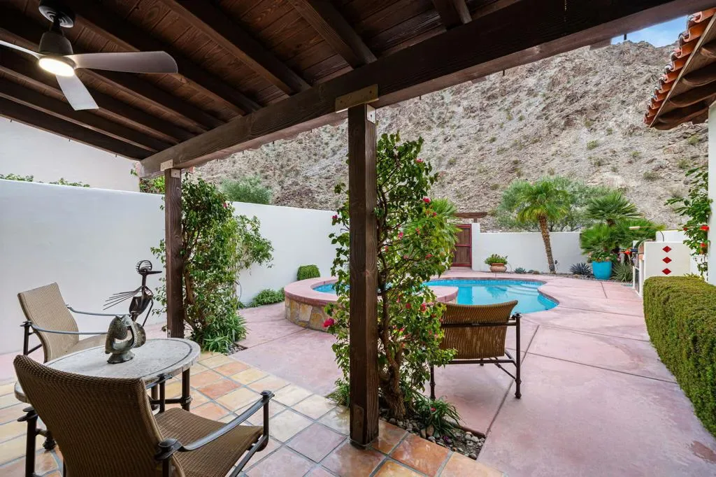 Welcome to 52320 Avenida Montezuma! The street to be in coveted and historical La Quinta Cove. A classic Mission-style Hacienda offering unobstructed mountain views and seamless indoor-outdoor living. Situated on an oversized, fully-walled and driveway-gated perimeter lot, this custom 3-bed/3-bath privacy retreat spans 2200 SqFt and features an open-concept floorplan accented with classic charm and refined finishes throughout. A spacious, chef-inspired kitchen boasts stainless steel appliances and gorgeous, one-of-kind rock countertops. An inviting great room includes all the touches you enjoy. A roomy primary bedroom offers a walk-in closet and en-suite bathroom. Bedroom two is a true bonus primary, also with en-suite bathroom. And bedroom three easily doubles as an ideal remote-working space. The welcoming and relaxing front-loaded courtyard includes a covered patio, mist system, freeform pool & spa, a built-in BBQ station and–with no telephone poles to be seen–stunning mountainside scenes. And a backyard complete with verdant fruit trees and lush landscaping frames a lovely privacy patio with an additional mist system. Located along the footpath to world-class hiking, biking, and Old Town La Quinta’s shops and restaurants, this fully furnished home is move-in ready. Don’t miss the opportunity to own this one-of-a-kind La Quinta gem–where classic feel meets modern luxury!