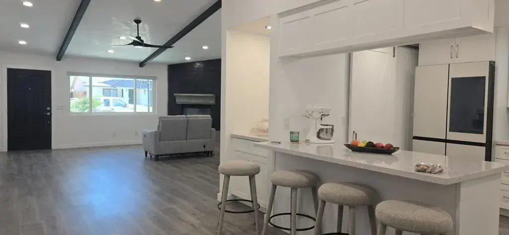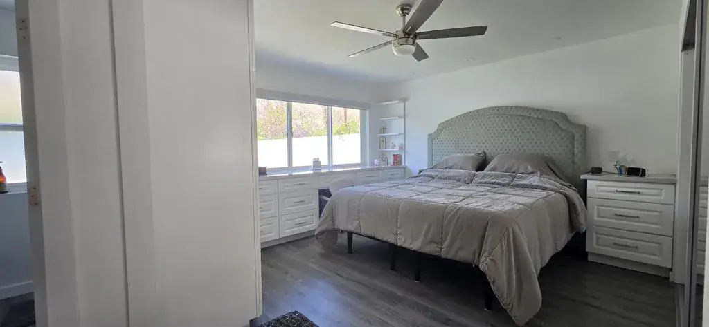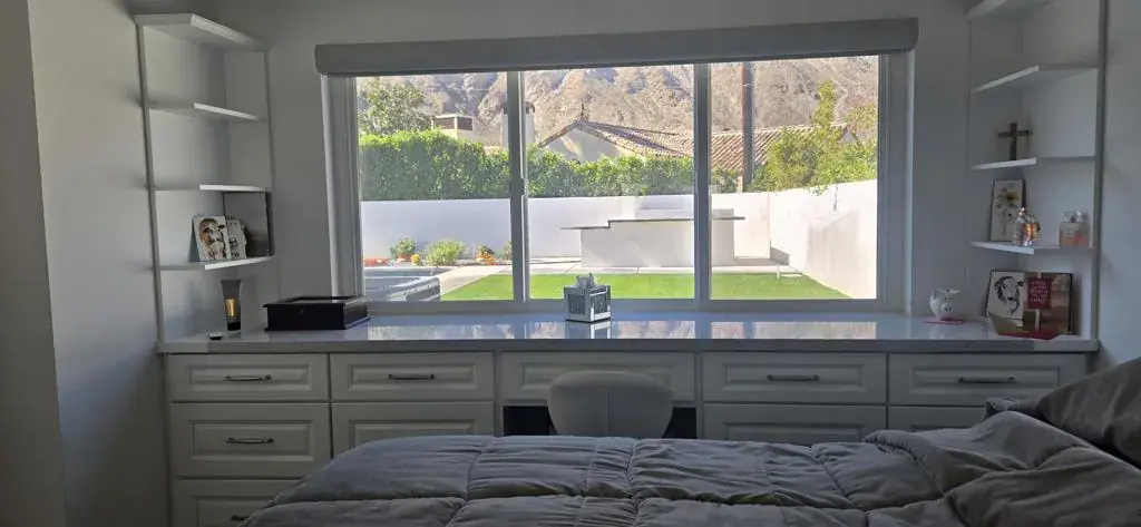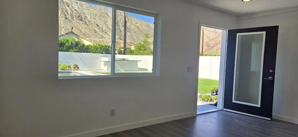 What a Beauty in La Quinta Cove, one of the most sought-after communities in the Coachella Valley. This home is appearing on the market for the very first time, by the original owner, with a gorgeous remodel and added bonus room off the kitchen that opens up to the rear yard, and sits on an oversized lot. The list of amenities is huge and includes new electric fabric shades in all rooms which block out heat and light, new quartz counter tops in the kitchen and bathrooms, custom made cabinetry, self-closing kitchen drawers and new appliances, and custom closets in the bedrooms. The All New cement tile roof sports solar panels for a system, already purchased, that reduces the power bill to approximately $144/month. The living room has a custom Italian-finished ceiling and a new electric fireplace with an updated heater. Beautiful recessed lighting indoor provides many tasteful options to illuminate the rooms, with dusk-to-dawn sensors on new outdoor lighting. A low maintenance desert landscape welcomes you onto this property and provides even more savings on utility bills. The garage has been resurfaced with new concrete. A new water feature graces the front yard and new pool equipment and barbeque complete the back yard. The contemporary aesthetic of this house shows pride of ownership in every room inside, and in every detail attended to outside. You will welcome the open floor plan living room area with views to the east. Coffee on the front patio catches the sunrise, while views in the rear see the sun set. It’s a One-of-a-Kind home, situated near the top of the Cove providing its spectacular views. It is a MUST SEE property and is completely move-in ready this moment.
