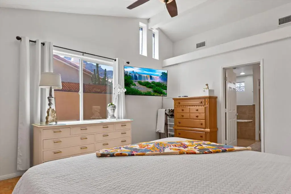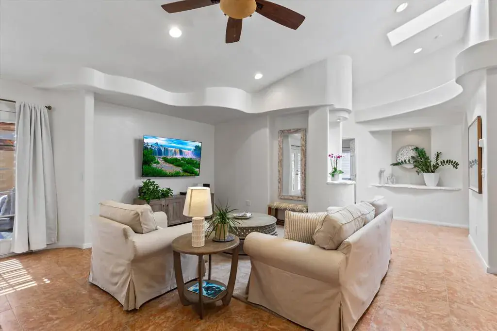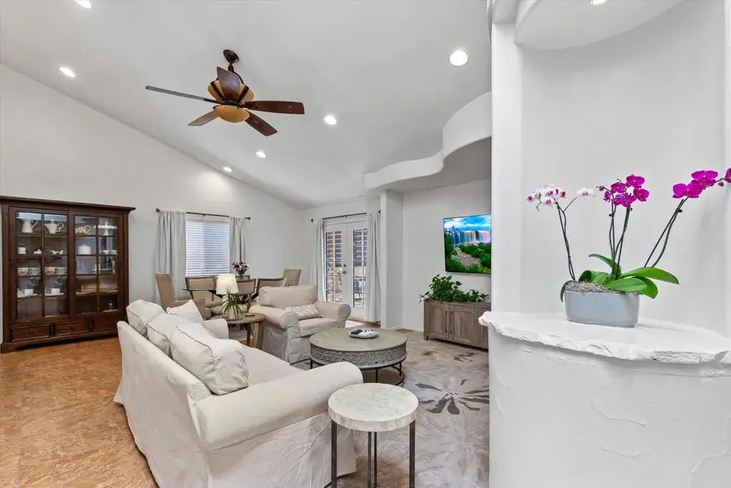 Perched in the highly sought-after upper La Quinta Cove, this impeccably kept 3 bedroom, 2.5 bath home delivers everything you came to the desert for and then some.Step inside to soaring vaulted ceilings and sunlight streaming through a skylight, creating an open, airy sanctuary that feels both spacious and inviting. French doors connect the primary bedroom and living area directly to your private pool and covered back patio, where a ceiling fan and misting system make even summer afternoons effortless. It’s indoor / outdoor living at its finest.But here’s what sets this home apart: a rare dual patio design that gives you options. Host poolside gatherings under the shade of your back patio, or slip away to the tranquil enclosed front courtyard for your morning coffee spot, complete with a bubbling fountain and front row seats to sunrise painting the Santa Rosa Mountains in gold. Hummingbirds included.The kitchen is ready for your rhythm, with granite countertops and plenty of storage. A versatile bonus room opens to the front patio through dual French doors which is perfect as a home office, art studio, or sun-drenched breakfast nook. Recent upgrades mean peace of mind: fresh interior paint, a new HVAC system, and updated appliances including the dishwasher, range, refrigerator, and disposal.Outside, low maintenance desert landscaping with river rock and mature palms was designed for exactly this climate: beautiful, sustainable, and worry-free.And your location? Unbeatable. Hiking trails are steps from your door. Old Town La Quinta’s acclaimed restaurants and weekly Farmers Market are minutes away. Add world class golf, the Indian Wells Tennis Garden, and Acrisure Arena to your backyard, with Palm Springs and Indio’s legendary music festivals just 30 minutes out.This isn’t just a home. It’s your front row seat to the La Quinta Cove lifestyle.Schedule your private showing today.