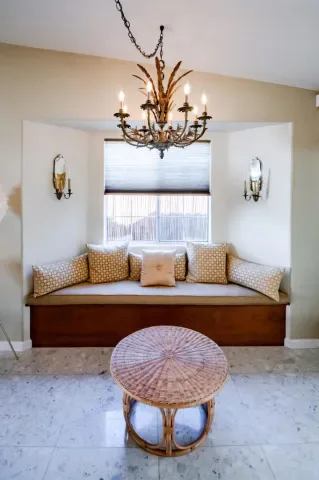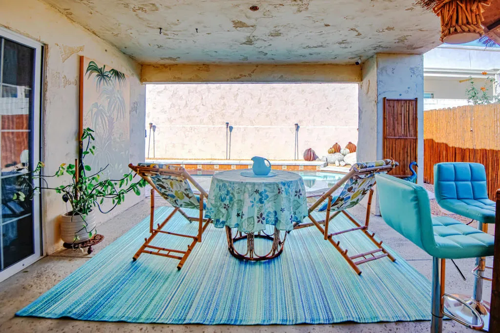 Welcome to Casa Vallejo! An opportunity to own your own private Shangri-la near the top of the Historic La Quinta Cove. Meticulously maintained 3 bedrooms +2.5 bath home offers a spacious layout of 1647 sq ft . Enjoy a refreshing dip in your private pool while you sip a libation from your tiki bar. Low maintenance backyard. Interior floors have all been redone with elegant Italian Terrazzo tile throughout. Beautiful stonework on wood burning fireplace for those cozy nights. Large walk-in closet in master bedroom & gorgeous remodeled bathroom with large shower. 2 spacious secondary bedrooms access a lovely bathroom which includes a tub/shower .Included is also a separate powder room for guests.Separate Laundry room with it’s own utility sink. Kitchen adorns quartz countertops & tumbled travertine backsplash with stainless steel appliances & lovely mountain views. New recessed lighting with low voltage dimmers & surround sound speakers in living room ceiling. Two car attached garage with direct entry to house .Newer AC unit less than 1year old & solar for efficiency & economy. Conveniently located close to the Old Town Village Restaurants and Shops. Owner has spared no expense to make this home special. Make it yours today!