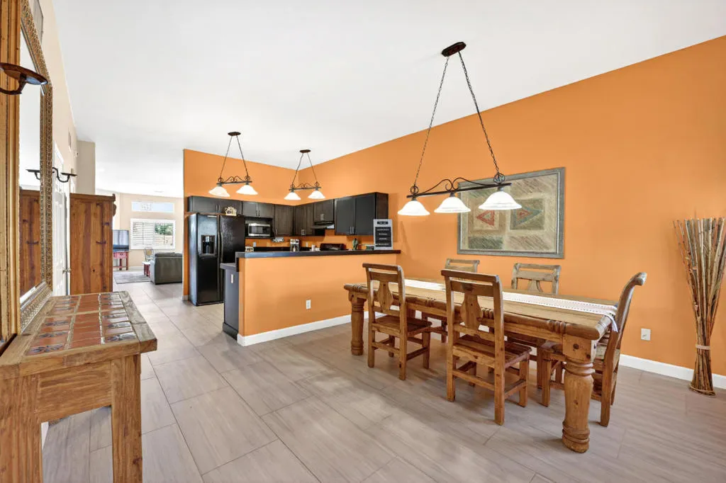 Welcome to this private desert retreat near the top of La Quinta Cove, where breathtaking mountain views, elevated privacy, and a gated entrance create a truly special setting. Situated on a spacious 7,405 sq. ft. lot, this 3-bedroom, 2-bath home offers 1,821 square feet of thoughtfully designed living space and is offered turnkey furnished–ready for immediate enjoyment. From the moment you arrive, the private gated entry enhances both privacy and convenience, leading into a charming courtyard that sets the tone for a serene desert escape. Inside, the open-concept layout is enhanced by 18” x 36” tile flooring throughout, creating a clean, modern feel with effortless flow between living spaces. The expansive great room features soaring ceilings, abundant natural light, and a cozy fireplace, making it the perfect space to relax or entertain. The kitchen is both functional and stylish, offering ample cabinetry, generous counter space, and seamless connection to the dining area–ideal for hosting family and friends. The spacious primary suite provides a peaceful retreat with direct access to the backyard, while two additional bedrooms offer comfort and flexibility for guests or a home office. Step outside to your own private oasis, where a sparkling pool, lush lawn, and tranquil fountain create the perfect setting to enjoy the desert lifestyle. Multiple seating areas and a covered patio make this backyard ideal for entertaining or simply taking in the stunning mountain backdrop. Located just minutes from Old Town La Quinta, hiking trails, dining, and shopping, this home offers the perfect blend of privacy, convenience, and resort-style living–all from one of the most desirable locations in the Cove.