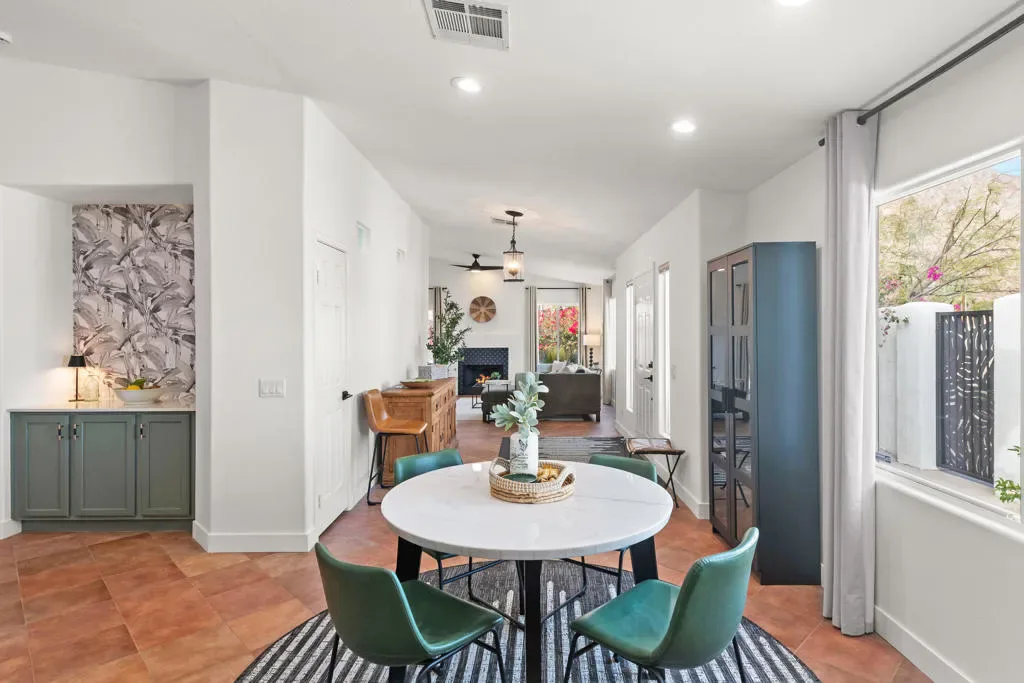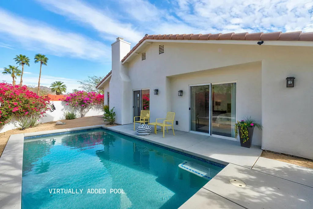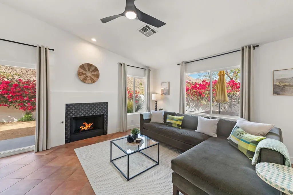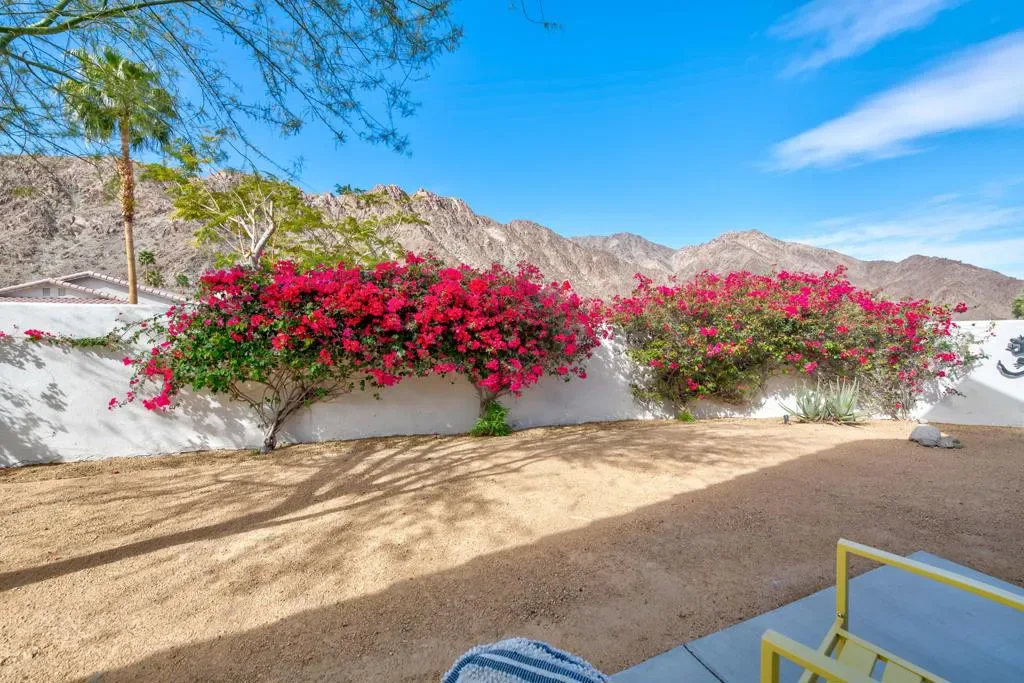 Located on a quiet corner lot in the scenic La Quinta Cove with DRAMATIC MOUNTAIN VIEWS, this exceptional, NEWLY UPDATED AND FURNISHED HOME delivers the perfect balance of all the modern comfort and unparalleled desert charm. NO HOA, and no land lease. Whether you’re looking for a full-time residence, vacation getaway, or investment property with steady revenue, this low-maintenance home checks every box. Built in 2002 and updated in 2025 inside and out with designer finishes.Stepping in from the charming gated courtyard you will enjoy an OPEN CONCEPT LAYOUT featuring vaulted ceilings with abundant natural light. The kitchen is a modern workspace with wood construction cabinetry, BRAND NEW ENERGY EFFICIENT STAINLESS STEEL APPLIANCES AND QUARTZ COUNTERTOP. It also features a wood paneled range hood and a long peninsula to provide greatest function and pleasing aesthetics at the same time. The floor plan offers easy flow through the dining and living areas which is great for entertaining. The bright living room is anchored by a cozy fireplace. From there, step outside through the sliding door to the west facing peaceful OUTDOOR SPACE that is sure to impress with breathtaking views framed by happy bougainvillea . There is ROOM FOR A POOL, or other personalized landscaping. The PRIMARY SUITE – also with direct access to the outdoors – is a nice retreat, complete with a stunning en-suite bathroom with OVERSIZED TILED WALK-IN SHOWER, all new fixtures and designer wallpaper along with a WALK-IN CLOSET. The TWO ADDITIONAL BEDROOMS offer flexibility for family life, guests or a home office with a shared full bath. Additional conveniences include an interior laundry room and an attached 2 car garage with storage space and extra outdoor space at the back of the garage. Electricity is provided by IID, known for lower utility rates. This highly sought-after La Quinta neighborhood offers quick access to excellent dining and entertainment opportunities in Old Town La Quinta. Enjoy the weekly farmers market, the thriving arts scene and the scenic HIKING TRAILS JUST 2 BLOCKS AWAY. Golfers will find themselves surrounded by world-class courses, and it’s an easy drive to downtown Palm Springs, the high end shopping of Palm Desert’s El Paseo or Indio’s world famous music festivals! Adjacent empty lot is also for sale if you wanted to extend the property.