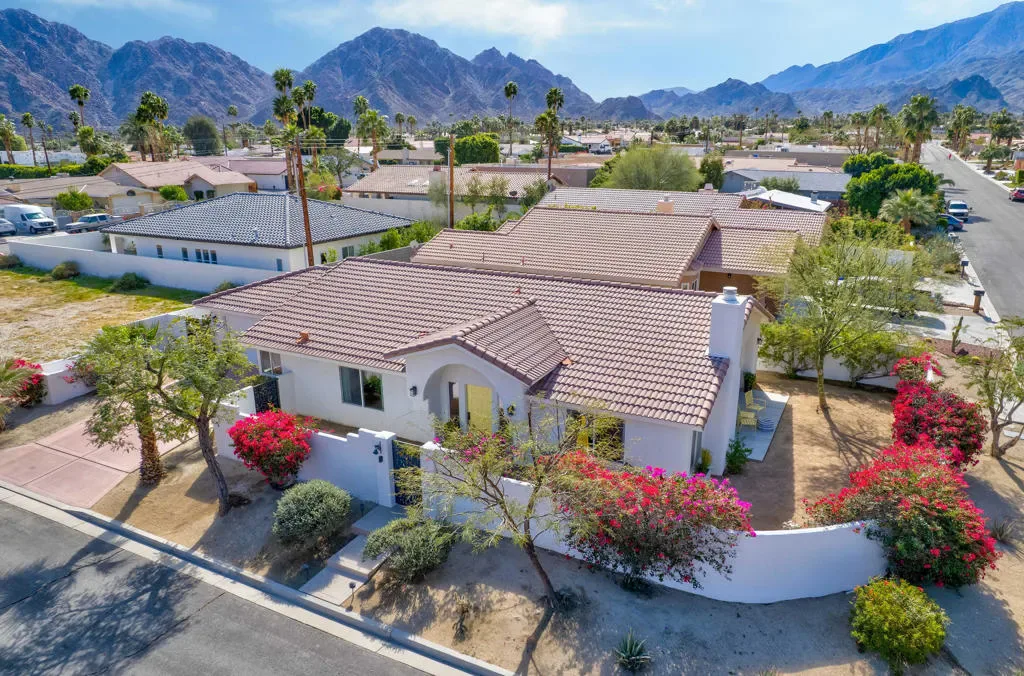 Located on a quiet corner lot in the scenic La Quinta Cove with DRAMATIC MOUNTAIN VIEWS, this exceptional, NEWLY UPDATED AND Partially FURNISHED HOME delivers the perfect balance of all the modern comfort and unparalleled desert charm. NO HOA, and no land lease. Whether you’re looking for a full-time residence, vacation getaway, or investment property with steady revenue, this low-maintenance home checks every box. Built in 2002 and updated in 2025 inside and out with designer finishes.Stepping in from the charming gated courtyard you will enjoy an OPEN CONCEPT LAYOUT featuring vaulted ceilings with abundant natural light. The kitchen is a modern workspace with wood construction cabinetry, BRAND NEW ENERGY EFFICIENT STAINLESS STEEL APPLIANCES AND QUARTZ COUNTERTOP. It also features a wood paneled range hood and a long peninsula to provide greatest function and pleasing aesthetics at the same time. The floor plan offers easy flow through the dining and living areas which is great for entertaining. The bright living room is anchored by a cozy fireplace. From there, step outside through the sliding door to the west facing peaceful OUTDOOR SPACE that is sure to impress with breathtaking views framed by happy bougainvillea . There is ROOM FOR A POOL, or other personalized landscaping. The PRIMARY SUITE – also with direct access to the outdoors – is a nice retreat, complete with a stunning en-suite bathroom with OVERSIZED TILED WALK-IN SHOWER, all new fixtures and designer wallpaper along with a WALK-IN CLOSET. The TWO ADDITIONAL BEDROOMS offer flexibility for family life, guests or a home office with a shared full bath. Additional conveniences include an interior laundry room and an attached 2 car garage with storage space and extra outdoor space at the back of the garage. Electricity is provided by IID, known for lower utility rates. This highly sought-after La Quinta neighborhood offers quick access to excellent dining and entertainment opportunities in Old Town La Quinta. Enjoy the weekly farmers market, the thriving arts scene and the scenic HIKING TRAILS JUST 2 BLOCKS AWAY. Golfers will find themselves surrounded by world-class courses, and it’s an easy drive to downtown Palm Springs, the high end shopping of Palm Desert’s El Paseo or Indio’s world famous music festivals! Adjacent empty lot is also for sale if you wanted to extend the property.