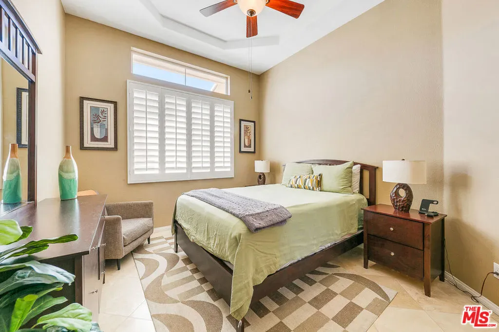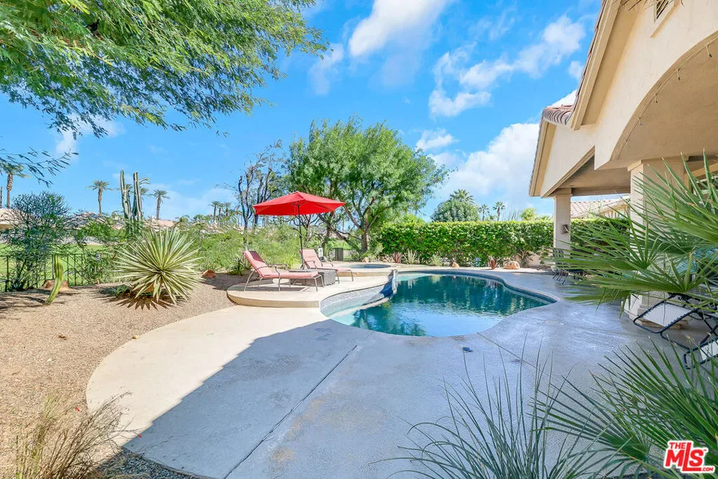 Major Price Reduction! Don’t miss this incredible opportunity – now priced to sell and ready for its next owner. Live behind the gates of the prestigious La Quinta Fairways. This beautifully upgraded 3-bedroom, 2.5-bath home offers approximately 2,424 sq. ft. of refined desert living overlooking the 6th fairway of the Dunes Course. Enjoy sweeping golf course views framed by mature landscaping and trees that provide the perfect blend of beauty and privacy. Step inside to an elegant, open floor plan featuring high ceilings, Travertine flooring, plantation shutters, and a dual-sided fireplace connecting the living and family rooms creating a warm and inviting atmosphere. The chef’s kitchen is highlighted by Corian countertops and opens to a spacious dining area with sliding glass doors leading to the backyard retreat. The primary suite showcases a double-door entry, large wardrobe closet, and a spa-like en-suite bath with dual sinks. A rare and desirable feature, the office currently used as a fourth bedroom offers ideal guest accommodations or a flexible space for work or relaxation. The low-maintenance backyard is a true desert oasis, featuring a sparkling Pebble Tec pool and spa, new pool heater, covered patio, misting system, and cool deck perfect for entertaining or unwinding on warm desert evenings. Additional highlights include dual A/C units with Nest thermostats, ceiling fans throughout, a laundry room with sink, and a two-car garage with built-in cabinetry and space for a golf cart or workshop. La Quinta Fairways is a small, guard-gated community offering low HOA dues that include cable, internet, front yard landscaping, and 24-hour security.