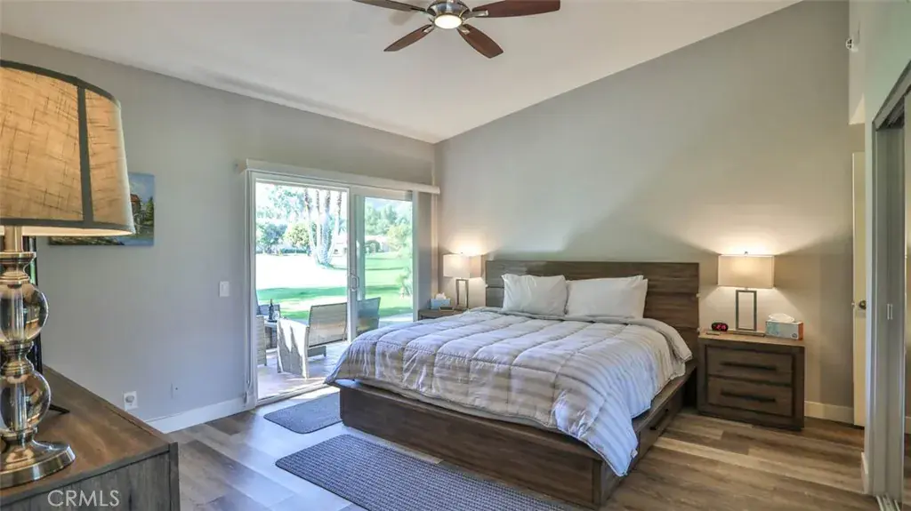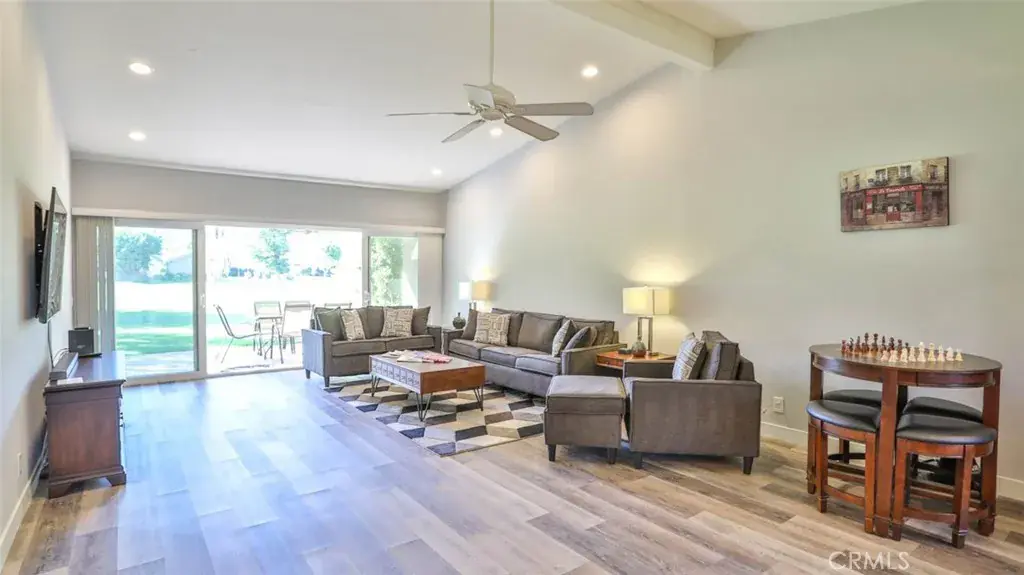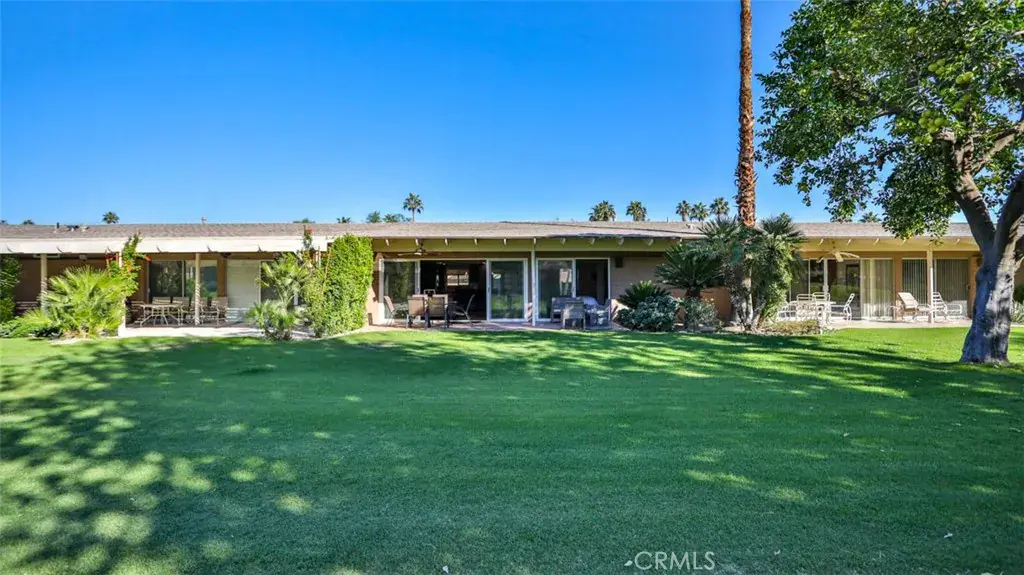 Turnkey furnished home with plenty of space for all, this charming 3-bedroom home offers a host of features! You’ll enjoy watching the American Express PGA tour in January from the patio as it faces the 5th tee. Inside, prepare meals in the well-equipped, full kitchen with stainless steel appliances and an island with counter seating and don’t miss the built-in wine cooler. Dine together (or play a few board games) at the table. And then wrap up your evenings with a movie or your favorite TV show on the flat-screen TV located in the spacious living room. Each of the 3 spacious bedrooms feature a glass slider that opens to an outdoor area. Outside, relax on your furnished, west-facing patio, or take advantage of the on-site amenities in this gated community including a shared pool located just down the street.