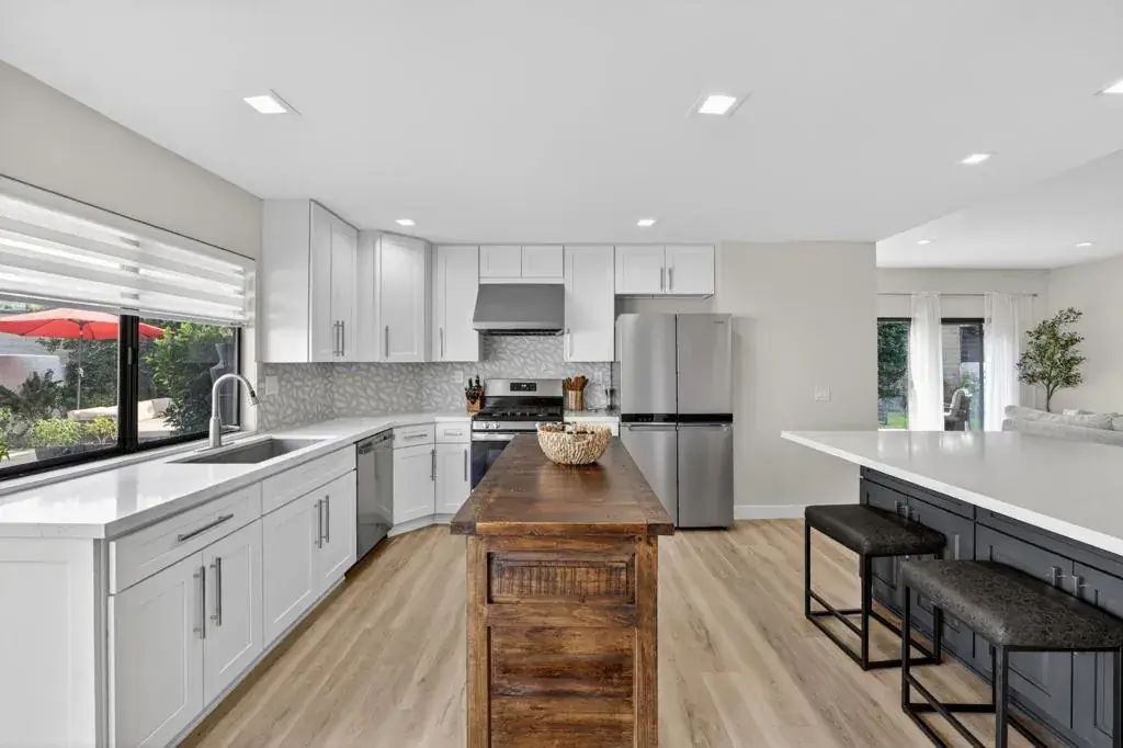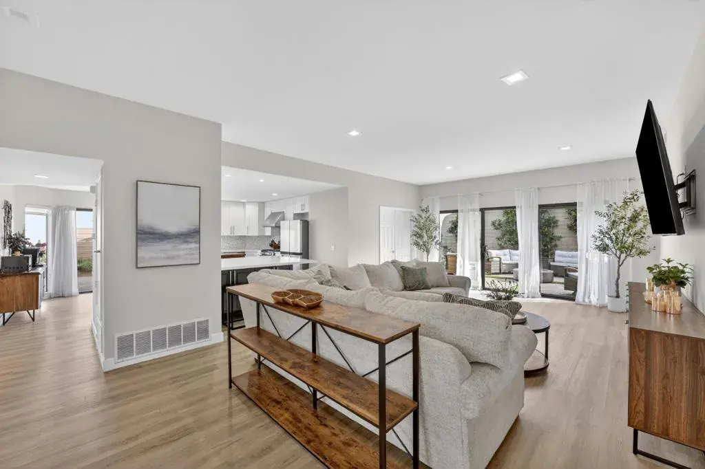 Welcome to this beautifully updated residence in the prestigious, gated community of Laguna De La Paz, where luxury, comfort, and convenience come together seamlessly. This light-filled home offers an open, inviting floor plan with thoughtfully curated finishes, neutral tones, and wide plank flooring that create a warm, modern aesthetic throughout. The updated kitchen serves as the heart of the home, featuring crisp white cabinetry, quartz countertops, stainless steel appliances, a newly installed kitchen hood, and an oversized island–perfect for casual dining or entertaining. The adjacent living spaces flow effortlessly, enhanced by recessed lighting and large windows that bring the outdoors in. Recent upgrades also include a new 50-gallon water heater installed in December 2025, adding peace of mind and everyday efficiency. The primary suite is a private retreat, offering generous space, a tranquil ambiance, and direct access to the backyard. Additional bedrooms provide flexibility for guests, a home office, or creative space. Step outside to the newly landscaped backyard, designed for both relaxation and entertaining. Recent improvements include a fully professionally landscaped backyard with custom pavers, lush new plantings, a stylish fire pit, and a soothing water fountain–creating a serene desert oasis ideal for evening gatherings or quiet mornings under the sun. Laguna De La Paz offers a resort-style lifestyle with exceptional HOA benefits, including roof maintenance, exterior painting, landscaping, and 24/7 guarded security, providing true peace of mind. Residents enjoy access to a 5-acre scenic lake with walking paths, paddle boating, catch and release fishing, a clubhouse, fitness center, tennis and pickleball courts, 15 pools, 16 spas, and a vibrant calendar of social activities. Come experience the effortless lifestyle and community charm that await you at Laguna De La Paz.