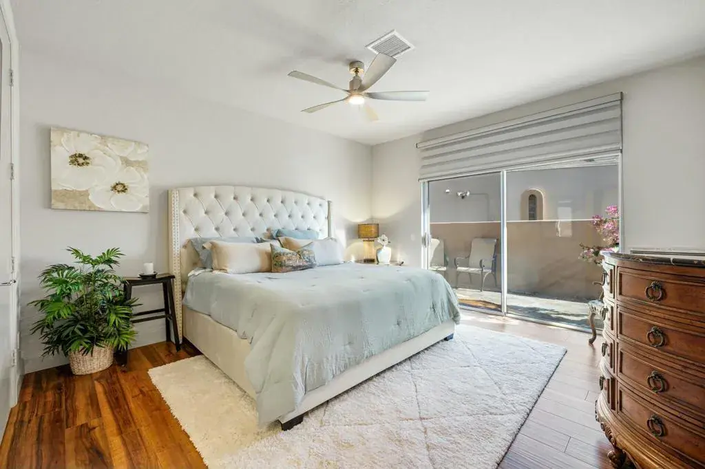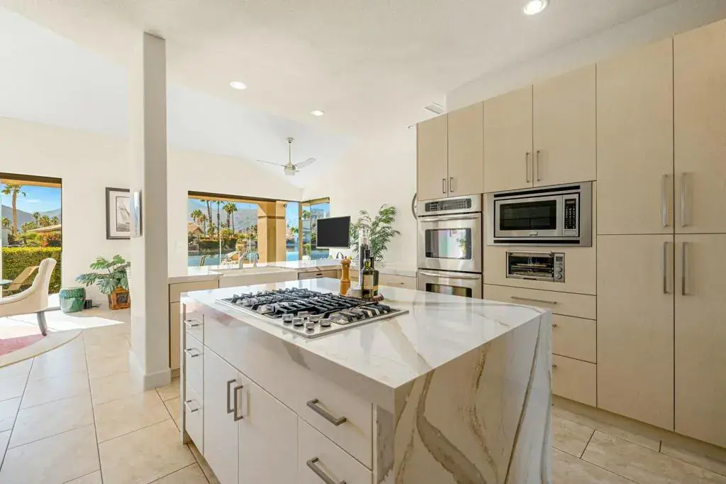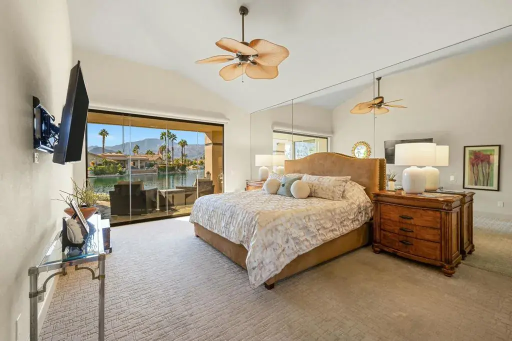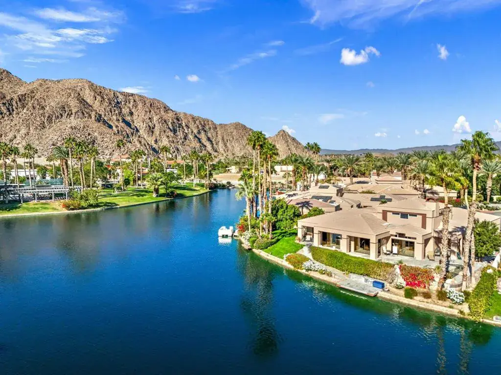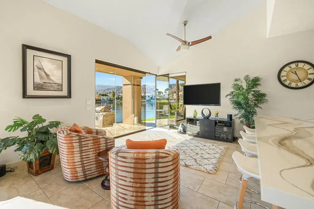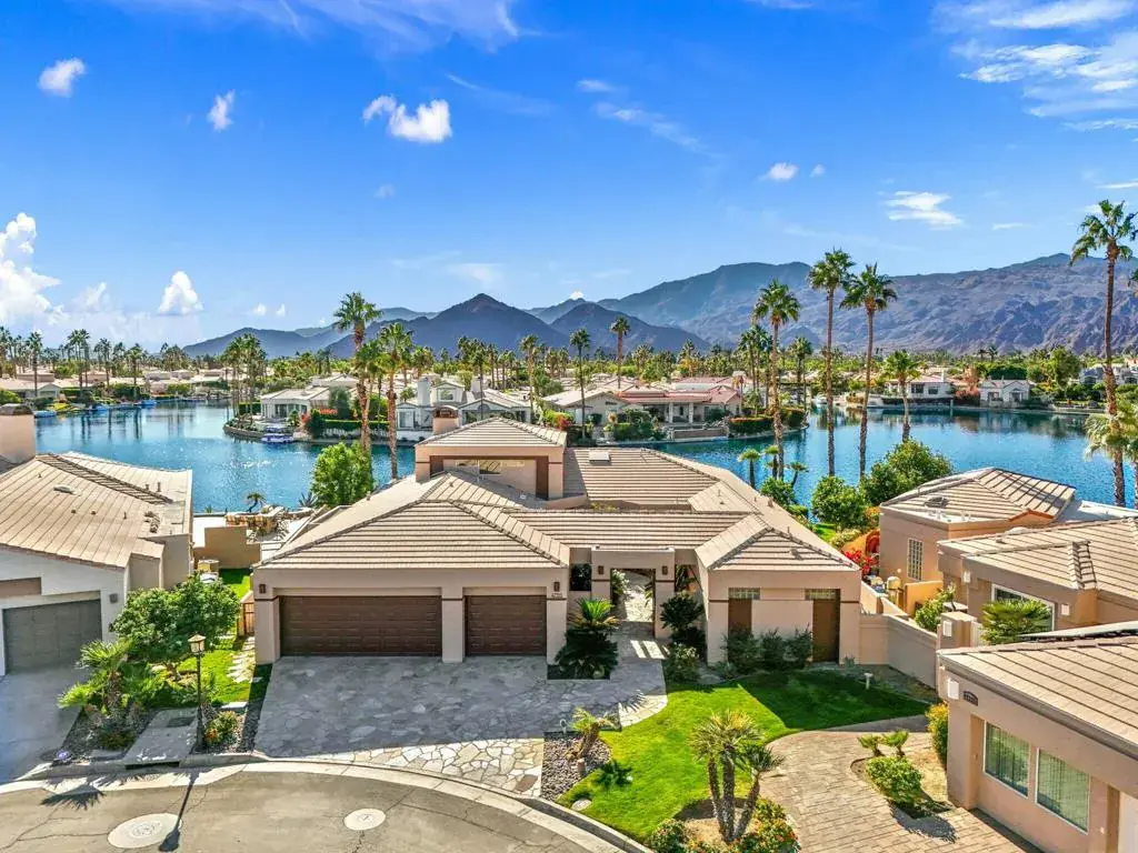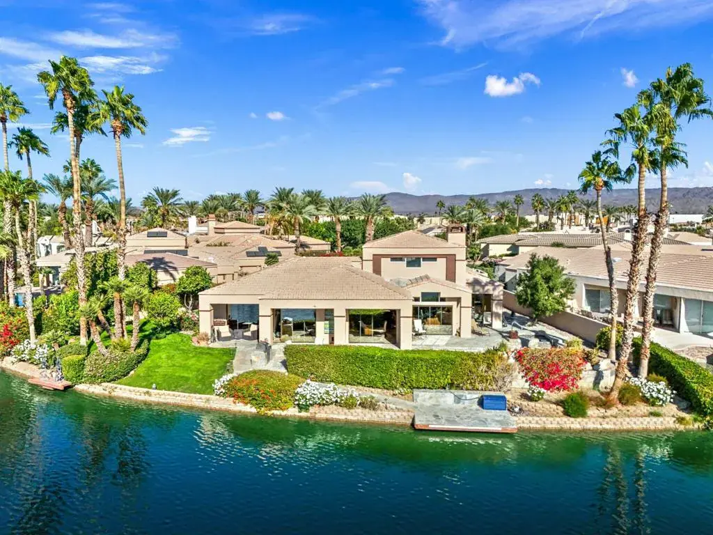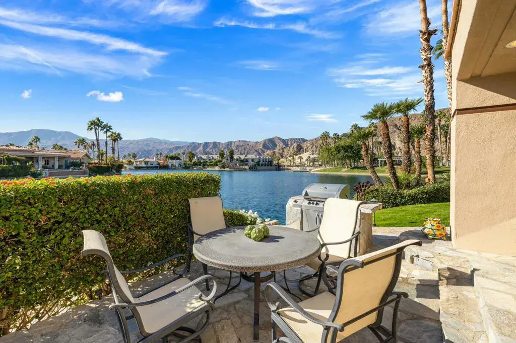 Enjoy lake life in the desert in coveted Lake La Quinta! This stunning lakefront desert retreat offers a tranquil sanctuary that will transport you to pure bliss! Turnkey furnished & surrounded by unobstructed dramatic South & West mountain & lake views this 4B & 4BA, including detached casita & approx. 3100 SF home exudes the desert lifestyle. Open & bright w/ walls of windows showcasing stunning views this home offers the perfect flow for entertaining or your private desert escape w/ spacious great room & adjacent dining room. Entertainers kitchen w/ gorgeous Cambria quartz counters, center island & breakfast bar seating. It opens to the family room w/ more amazing views & wet bar for added allure. Retreat to the spacious primary suite, where you’ll wake up to stunning, picture-perfect views. The light filled primary bathroom w/ dual vanities, soothing tub, shower & walk-in closets. Guestroom w/ en-suite bathroom & guestroom/office & bathroom. Private guest retreat detached casita off of front courtyard w/ kitchenette & bathroom. The backyard is a true desert oasis offering the perfect setting to relax & unwind. Spend sun-soaked days by the sparkling pebble pool & spa or relish in the beauty of the desert sunsets over the shimmering lake w/ unparalleled mountain views. Live the desert lifestyle close to dining, shopping, world class golf & festivals! Lake La Quinta offers 24-hour guard gated security, tennis/pickleball courts, & bocce ball. Rates vary by month. Currently Available Nov 2025-Feb 2026 & April 2026