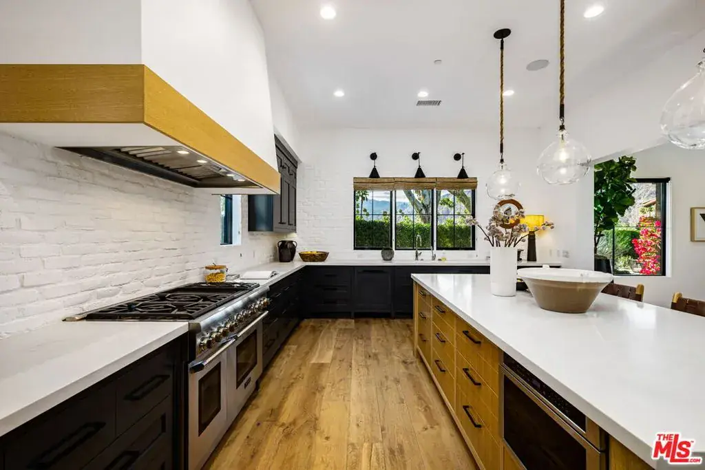 Designed for those who value privacy, quality, and exceptional design, this five-bedroom estate including a spacious detached casita offers refined desert living with panoramic mountain views. The great room features soaring wood-beamed ceilings, European oak hardwood floors, and a designer tile fireplace. The kitchen is appointed with handblown glass lighting, a Thermador custom tower refrigerator, walk-in pantry, custom quartz island, and bespoke cabinetry. Expansive windows and glass doors flood the interiors with natural light while seamlessly connecting to the outdoors. Subtle architectural details, including white brick accent walls and premium finishes throughout, underscore the home’s exceptional quality. All five bedrooms are ensuite, including a primary suite with fireplace and a spa-inspired bath. The residence is centered around a private courtyard with pool and spa, framed by sweeping mountain vistas. Situated on the 11th fairway of La Quinta Country Club, a PGA host venue for The American Express tournament, across the street from La Quinta Resort for immediate access to some of the finest restaurants in the desert, 10 minutes to Coachella and Indian Wells Tennis Garden, this property offers a rare combination of privacy, architectural integrity, and premier location, location, location!