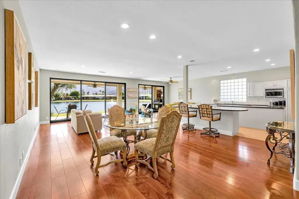 Elegant Lakefront Living in Prestigious Lago La QuintaLocated within the world-famous La Quinta Country Club, this exceptional lakefront residence showcases a completely redesigned floor plan with the addition of over 500 square feet of interior living space, creating a truly one-of-a-kind home in Lago La Quinta.From the moment you open the front door, sweeping lake and Santa Rosa Mountain views immediately captivate–an unforgettable first impression that defines this property. Expansive new sliding glass doors throughout the home flood every living space with natural light and seamless indoor-outdoor flow.This thoughtfully reimagined home offers 3 bedrooms, 3 bathrooms, plus a private theater room that can easily be converted into an additional bedroom with closet. Every room enjoys tranquil lake or mountain views, with the exception of the theater, providing a rare sense of connection to the outdoors throughout the home.The expanded owner’s suite is a true retreat, featuring a private spa-style bathroom, generous space, and exclusive separation from the rest of the home. The open-concept living, dining, and kitchen areas flow effortlessly, making the home ideal for both entertaining and everyday comfort.Significant energy-efficient upgrades have been completed, including:All new sliding glass doorsTwo 5-ton HVAC units, fully zoned with digital controls separating common areas and bedrooms12 additional inches of attic insulation and all-new ducting to dramatically reduce heating and cooling costsNew water heaterOutdoors, enjoy a peaceful lakefront setting with three fountains, excellent fishing, and breathtaking sunsets. Lago La Quinta uniquely features two private lakes with fountains, enhancing the serene, resort-style atmosphere.Just a 5-minute walk to the La Quinta Country Club clubhouse, this gated enclave of only 72 homes offers three community pools, a sport court with tennis, pickleball, and basketball, and beautifully maintained grounds–all minutes from Old Town La Quinta, world-class golf, dining, and shopping.This rare lakefront opportunity combines architectural uniqueness, modern efficiency, and unmatched views, making it ideal as a full-time residence, seasonal retreat, or investment property.