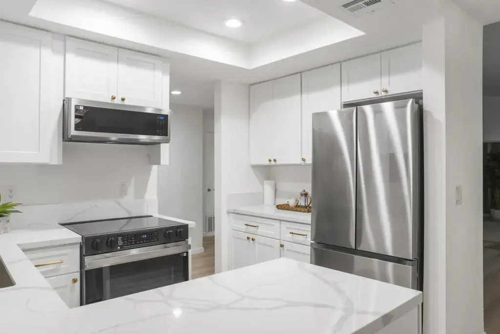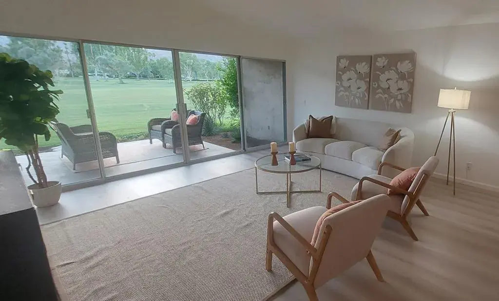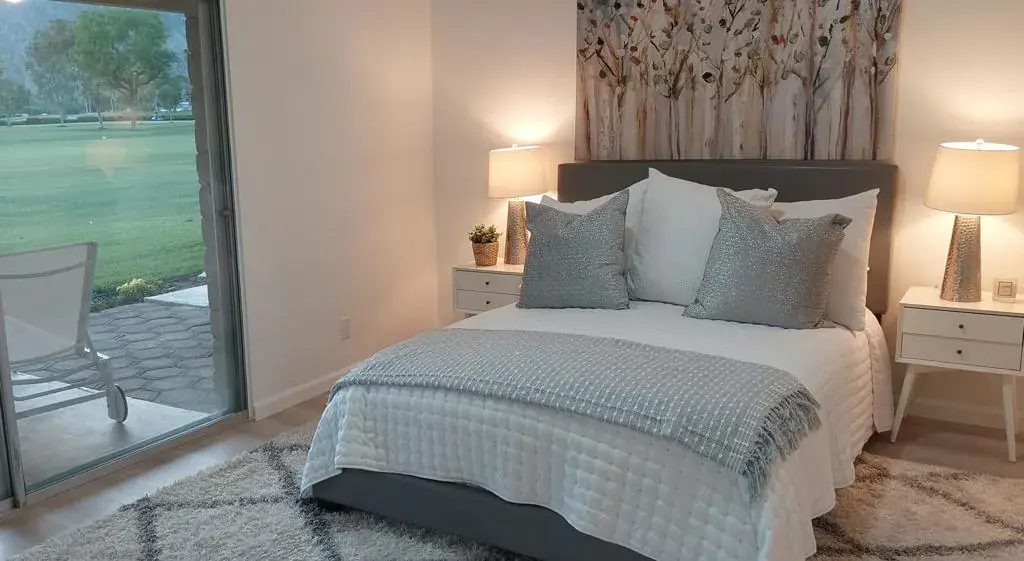 LOCATION, LOCATION, LOCATION – Villas of La Quinta…a hidden gem! Private, gated & nestled on the prestigious La Quinta Country Club (LQCC) golf course. This beautiful, fully remodeled two-bedroom, two-bath condo offers stunning mountain & golf course views. Step through your private gated courtyard with drought tolerant landscaping and bright finishes.Inside, you’ll find new wood-grained flooring throughout, cool neutral tones, & vaulted ceilings that enhance the open feeling. The new kitchen sports white cabinets and quartz counters, all new appliances, a large single basin sink with new plumbing plus all new LED lighting. The kitchen flows seamlessly into the spacious dining & great room. Expansive sliding glass doors invite abundant natural light, framing the breathtaking golf & mountain views. The master bedroom is separated from the guest bedroom. It has been freshly painted and offers new mirrored closets and a stylish upgraded ensuite bath. Direct patio access is a huge plus. The primary bathroom boasts new cabinets, counter, sink & toilet plus a walk-in shower with all new fixtures. The guest bedroom windows face the front courtyard & features mirrored closet doors & updated hallway bath just steps away. Situated on the 5th fairway of the world-renowned La Quinta Country Club … one of the host courses for the PGA American Express Golf Tournament every January–this outdoor space is perfect for enjoying the desert lifestyle. Location is the best for golfers as there is a golf cart pathway across the course to all the amenities of La Quinta Country Club if you choose to become a member. Additional highlights include all new electrical outlets, switches & fans, all new front & rear patio lighting plus all new hardware for doors & cabinets throughout the condo and garage door. The spacious two-car garage has abundant storage and a nearly new water heater. What a great opportunity to own a newly upgraded Condo on the prestigious La Quinta Country Club with a paved golf cart path just outside your condo. This Condo offers Spectacular Mountain Views and Hiking trails a few blocks away. La Quinta (incorporated in 1982) is a young and dynamic city.