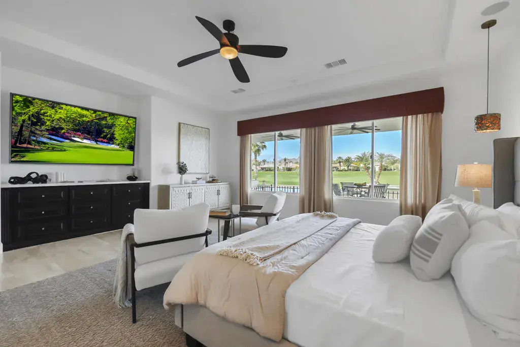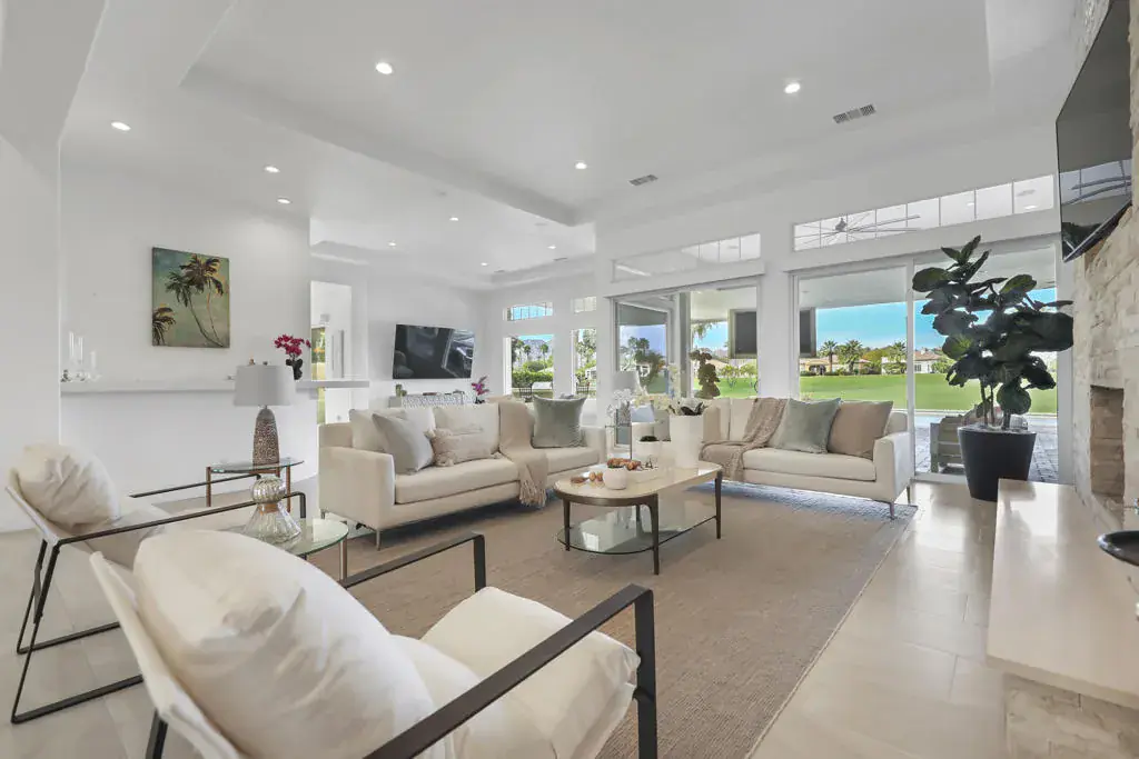 🌴 Luxury Living on one of Arnold Palmer’s Favorite Fairways!Welcome to this beautifully redesigned residence in the heart of Mountain View Country Club, perfectly positioned on a private, quiet cul-de-sac in one of the community’s most sought-after locations.This exceptional home offers 3 spacious bedrooms, 4 baths, plus a dedicated office, thoughtfully designed for comfort, entertaining, and everyday elegance. The open-concept living and family rooms flow seamlessly into a stunning custom bar–ideal for hosting friends and enjoying relaxed desert evenings.Situated on an extra-wide premium lot, this property boasts some of the best views in the entire club, overlooking Hole #10, famously one of Arnold Palmer’s favorite holes of his legendary career. The setting delivers breathtaking mountain, fairways, and sunset vistas.Step outside to your private oasis featuring a saltwater pool and spa, perfect for year-round enjoyment. An entertainers delight with a built in large bar/kitchen area, outdoor covered living and dining rooms, multiple seating areas, fruit trees an extra wide lot and of course stunning MOUNTAIN VIEWS! Mountain View Country Club is renowned for its vibrant lifestyle and welcoming community, featuring:An Arnold Palmer Signature Golf CoursePickleball & Tennis CourtsState-of-the-Art Fitness CenterBocce Ball & Social ClubsAn active, friendly, and engaging social sceneThis is more than a home–it’s a lifestyle defined by beauty, connection, and resort-style living in an A+ location.✨ A rare opportunity to own a premier fairway property in one of La Quinta’s most desirable private communities.