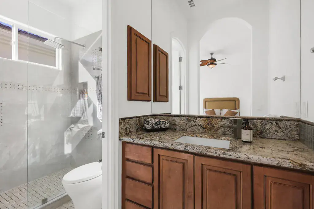 Enjoy resort-style living in this beautifully remodeled home overlooking the green at Mountain View Golf Course, with sweeping mountain views as your daily backdrop.This spacious 4-bedroom retreat includes a private-entry casita, ideal for guests or extended stays. Recent upgrades feature new flooring, countertops, and more throughout the home.An oversized great room, dedicated media room, and separate pool room offer plenty of space to relax and entertain — the ultimate setup for your Palm Springs/Coachella Valley getaway.