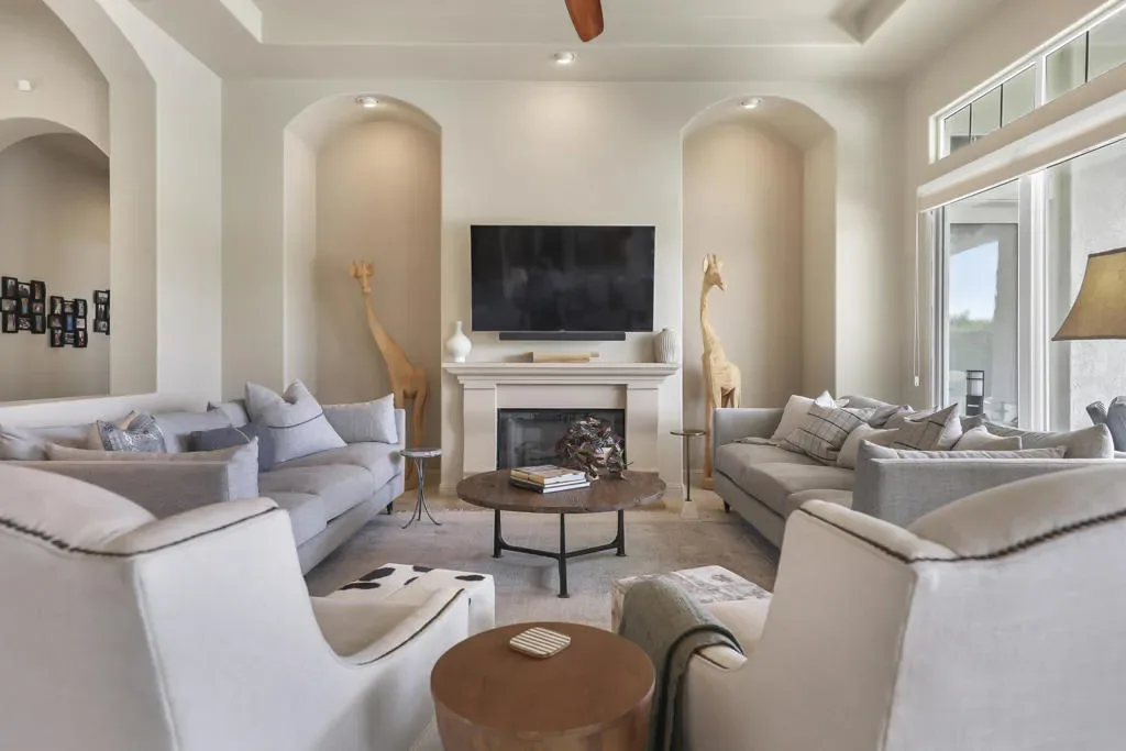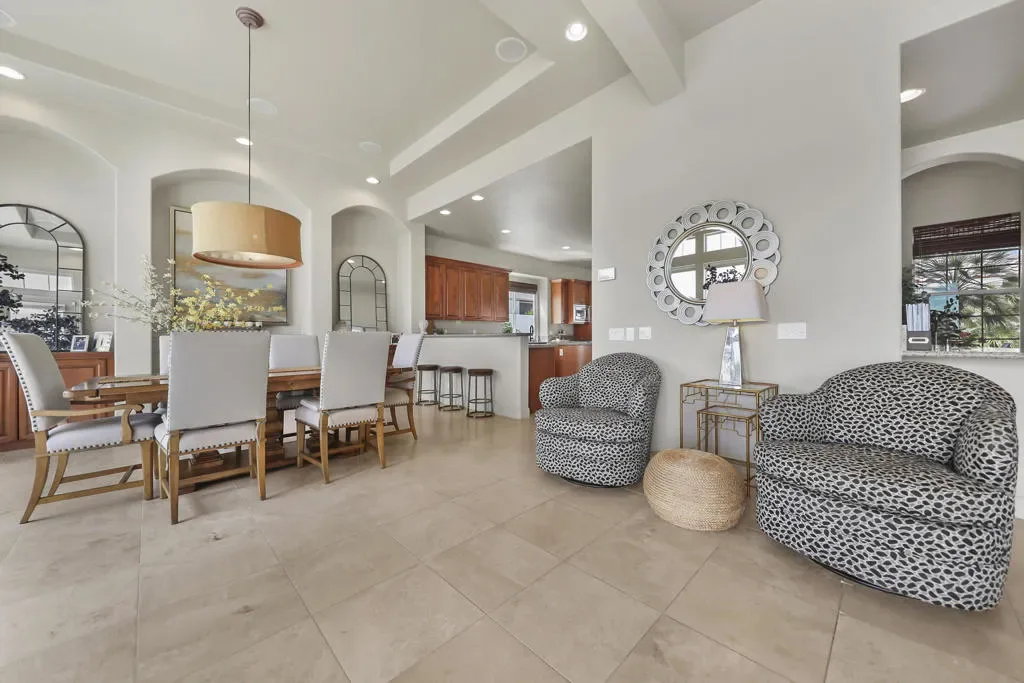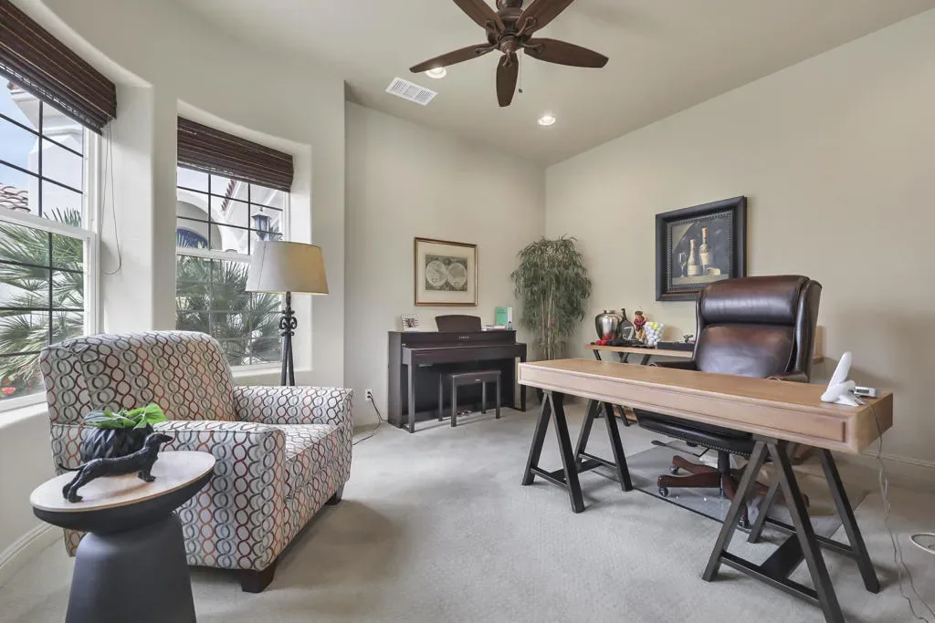 Luxury Golf Course Living, Immediate Golf membership available with this property, No Wait list! The lay out of the Santa Rosa floor plan is designed for both grand entertaining and comfortable daily living. Located on a quiet double cul-de-sac in prestigious Mountain View Country Club, on an elevated lot that provides both privacy from the golf cart path and breathtaking views of the double fairways of the 13th. & 14th. holes and a serene lake & mountain view as a back drop. Optimal exposure to capture the early morning sunrise and plenty of afternoon sun. Each bedroom features a private ensuite bath. A versatile bonus room adjoins the spacious guest suites perfect for family & friends. French doors lead out into the courtyard which allows this guest wing it’s own access to the courtyard. The gourmet kitchen features a large center island, stainless appliances, loads of cupboard and counter space and an informal eating area . The flexible living areas include / great room, formal dining room, and an office / den. The entertainment hub of the living areas integrate a wet bar with ample counter space, perfect for hosting guests. The luxury primary suite with cozy fireplace is the perfect relaxing retreat. The oversized bath has dual vanities, dressing area and spacious closet. The expansive out door living space accommodates multiple seating areas, dining and lounging overlooking the welcoming pool and spa. Kick back relax and enjoy this sophisticated blend of privacy and fabulous views! The nebulous of the community is the 18-hole Arnold Palmer Signature Golf Course, which was established in 2004, Practice Area include driving range, as well as chipping & putting green. Membership cap is to ensure tee time availability and a private experience. Wellness and Fitness Center features cardio and strength with personal trainers available.and a myriad of group classes. Court sports include lighted tennis courts and pickleball courts, & bocce ball. Community pool & spa area for lounging. Full Spa services available by appt. The clubhouse serves as the social hub for the community offering fine dining, & casual fare. Cafe Tesoro offers onsite Starbucks to greet the morning in the fresh air with shade tree seating. Social membership required, paid by buyer $10,000.