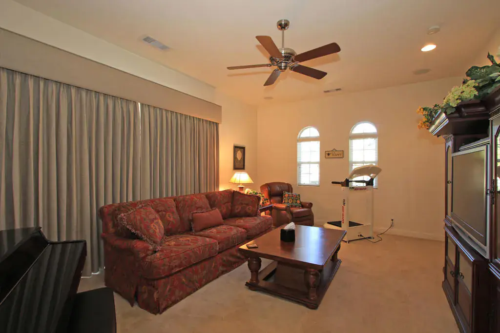 Best priced Santa Rosa Priced to sell on the 8th fairway of this Fabulous Arnold Palmer Course ,,3 bedroom 3and a half bath ,Great room ,dining room ,media or family room ,officed or den total over 3800 sq ft..3 car garage ,12 foot soffeted ceilings,European style maple cabinets,slab granite counters 8 ft patio doors,Jacuzzi whirlpool tub ,seperate shower in master bath ,gourmet kitchen ,security system , being sold partialy furnished . buyer responsible for required social membership $10,000