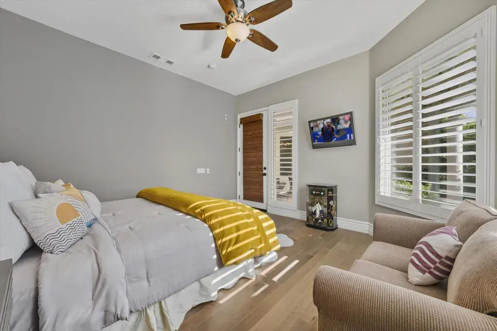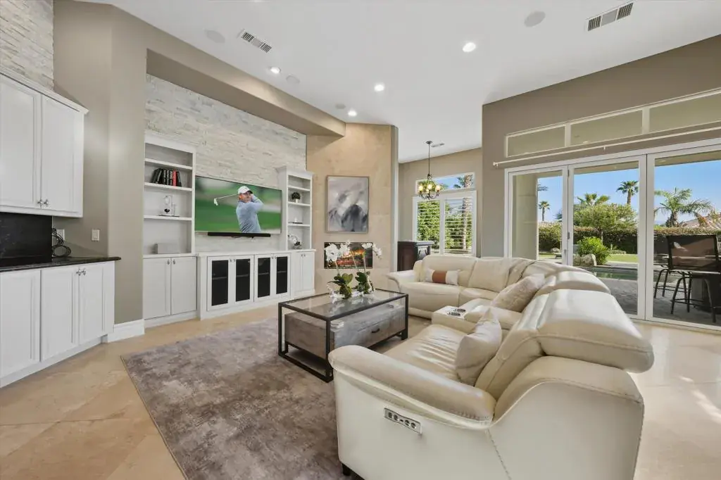 Discover the perfect Mountain View CC rental, blending vibrant social amenities with premier golf access! For a one-time $750 social membership transfer fee, tenants enjoy exclusive clubhouse dining, pickleball, tennis, bocce, a state-of-the-art fitness center, engaging fitness classes, a sparkling community pool, and a lively calendar of social events. Golf transfer rates vary by lease term–contact us for details. Entertain in style in the expansive, beautifully landscaped backyard, featuring a private pool, raised spa, covered paver patio, built-in BBQ, and a fire dining table. The charming front paver courtyard, shaded by a covered pergola, offers additional seating for relaxation. Inside, the gourmet granite kitchen boasts an island breakfast bar, stainless steel appliances, a gas cooktop, a pantry, and a cozy dining table for four. The inviting great room, complete with a fireplace, smart TV, and adjacent bar, seamlessly opens to the backyard pool area. Host elegant dinners in the formal dining room, perfect for six. Retreat to the luxurious primary suite with a king bed, smart TV, and French doors leading to the backyard oasis. Its ensuite bath features dual vanities, a dressing table, a separate tub and shower, and a spacious walk-in closet with ample storage. The generously sized second bedroom suite offers a queen bed, smart TV, desk, large closet, and a bath with dual vanities and a shower-over-tub. The private casita, accessible from the courtyard, includes a king bed and a bath with dual vanities and a walk-in shower. A convenient laundry room with an extra refrigerator, a powder room, and a two-car attached garage with golf cart space complete this exceptional home. Owner pays HOA, pool/gardener service, water, cable, internet and gas/electric with $400 month cap for combined gas/electric.