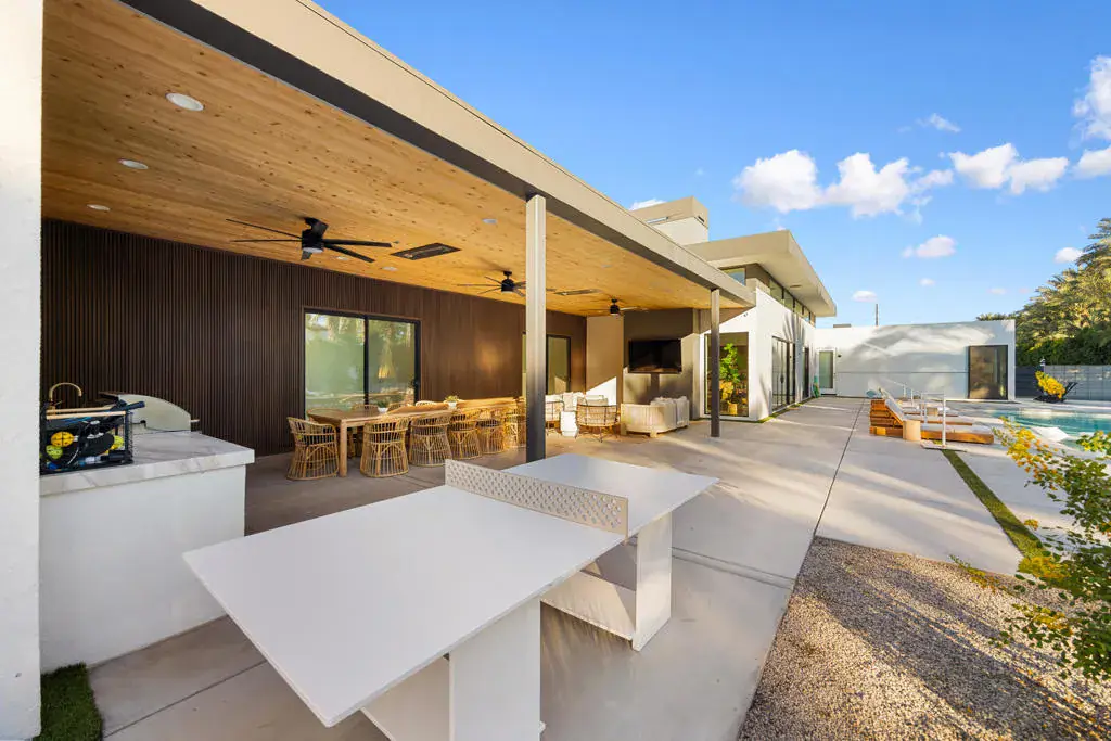 Located in the prestigious, gated Polo Villas community of La Quinta, just minutes from the world-famous Empire Polo Grounds home to the Coachella and Stagecoach music festivals this exceptional 4,188-square-foot estate represents the ultimate blend of luxury living and prime location. Whether for personal enjoyment or high-performing rental potential, proximity to these iconic events makes this property especially desirable. The residence offers 6 bedrooms, 6.5 bathrooms, and a dedicated media room, thoughtfully designed to capture modern sophistication. Soaring ceilings, an open-concept layout, and clerestory windows fill the great room with natural light, creating an inviting and expansive living environment ideal for entertaining large groups. Outdoor living is a true highlight, featuring a private, resort-style backyard complete with a sparkling pool and spa, full outdoor kitchen, pickleball court, and fire pit. Designed for year-round enjoyment, the covered patio includes ceiling fans, heaters, TV, and integrated Sonos speakers perfect for relaxing after a day at the festivals or hosting guests in style. Inside, the gourmet kitchen, luxurious media room, and generously sized bedroom suites with large-format tile ensuite bathrooms provide comfort and functionality for both owners and guests. Additional features include a solar energy system, EV charger, smart home technology, and dual washer and dryer sets enhancing convenience and efficiency. Approved for short-term vacation rentals in La Quinta, this home offers a rare opportunity to own a high-end desert retreat with exceptional income potential, particularly during peak festival season. Combining privacy, elegance, and unmatched proximity to Coachella’s event grounds, this property stands as a premier desert investment and lifestyle destination.