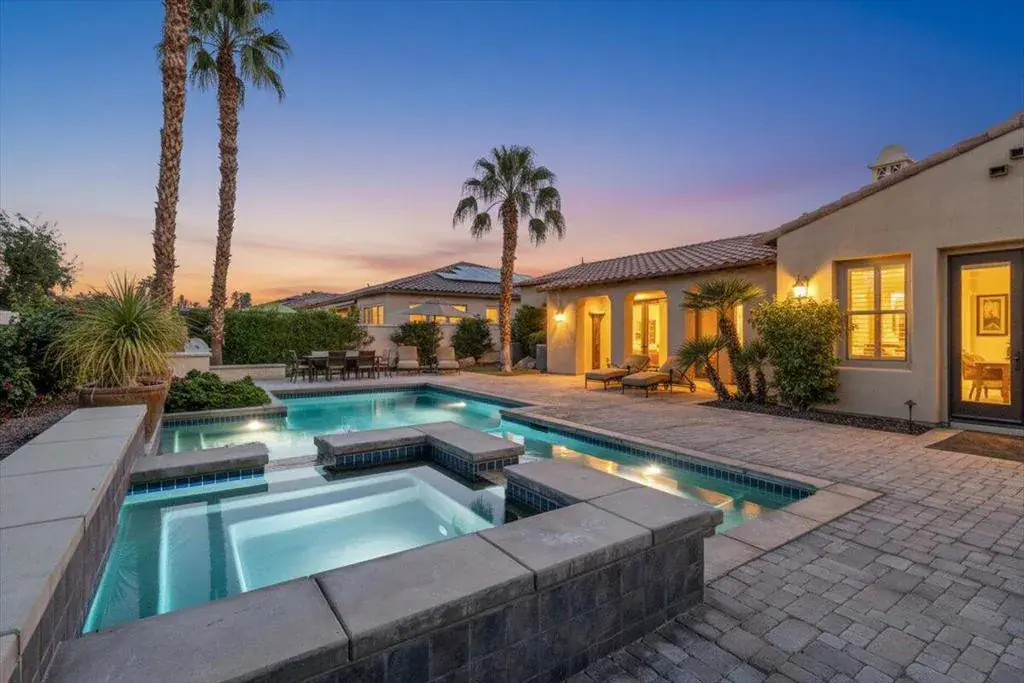 Privacy, quality finishes and workmanship throughout the home, mountain views, close to golf, tennis, hiking, biking, restaurants and shopping in La Quinta await you at this model home in Palo Verde development. Open and bright floor plan, en-suite bedrooms, inside-outside entertainment area flows to large patio and pool offer a resort-like feeling. Mist systems, 3 wine coolers and fridge, newer KitchenAid appliances, dual oven, 2 dishwashers, reverse osmosis water filter, large island. 3rd bedroom easy office/bedroom conversion. Low HOA dues, gated community, short golf cart ride to PGA West golf courses. Close to Old Town and LQ shopping and restaurants. Fully furnished inside and outside.